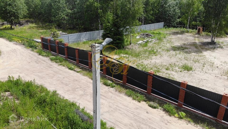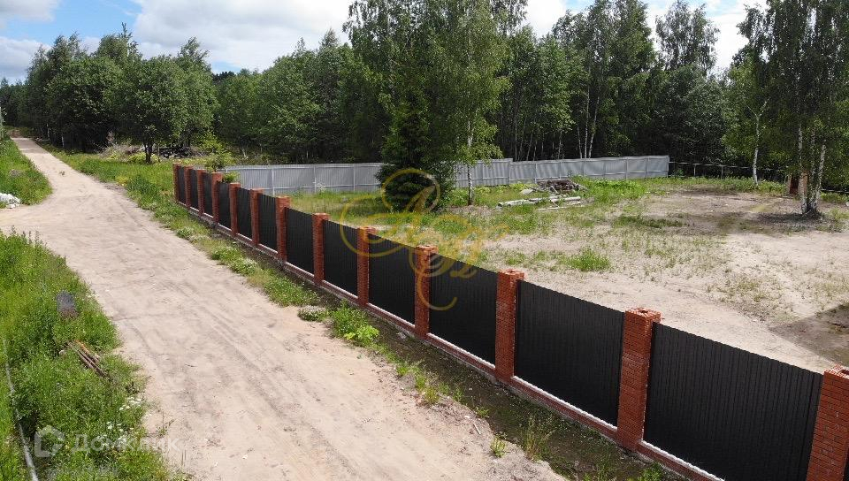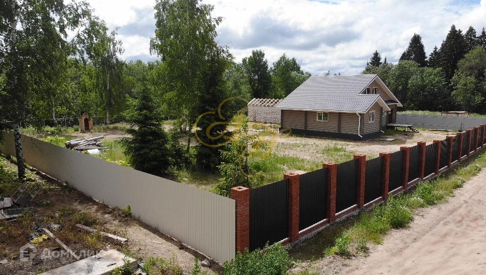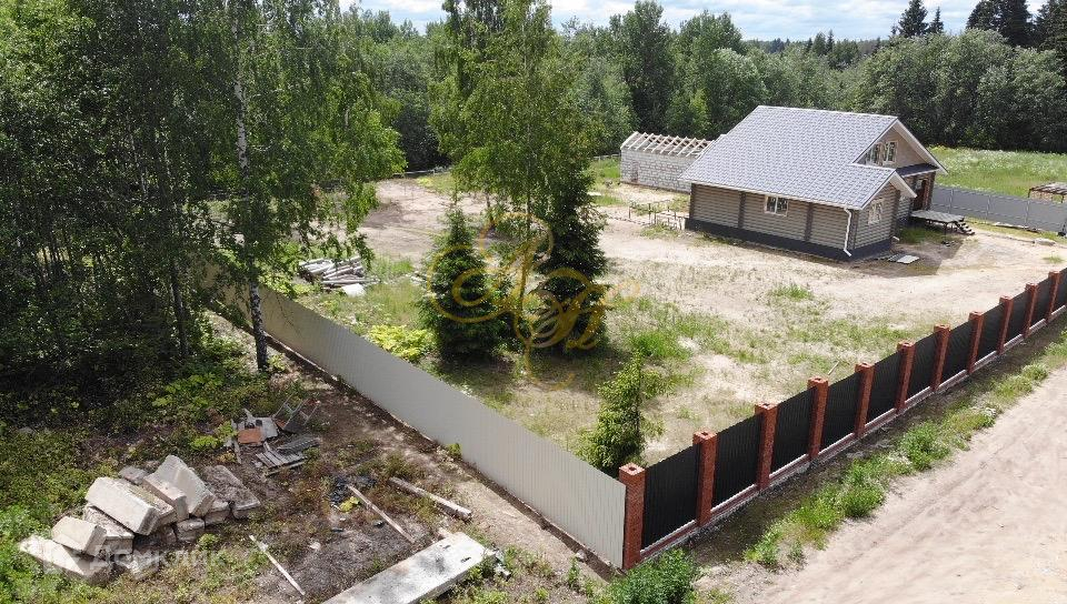 Участок огорожен, по фасаду профнастилом с кирпичными столбами.