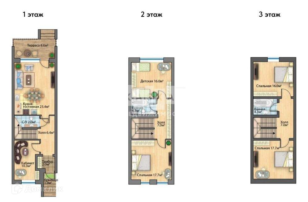 3-этажный таунхаус, 140 м2, на продажу в деревне Троице-Сельцо, Солнечная улица