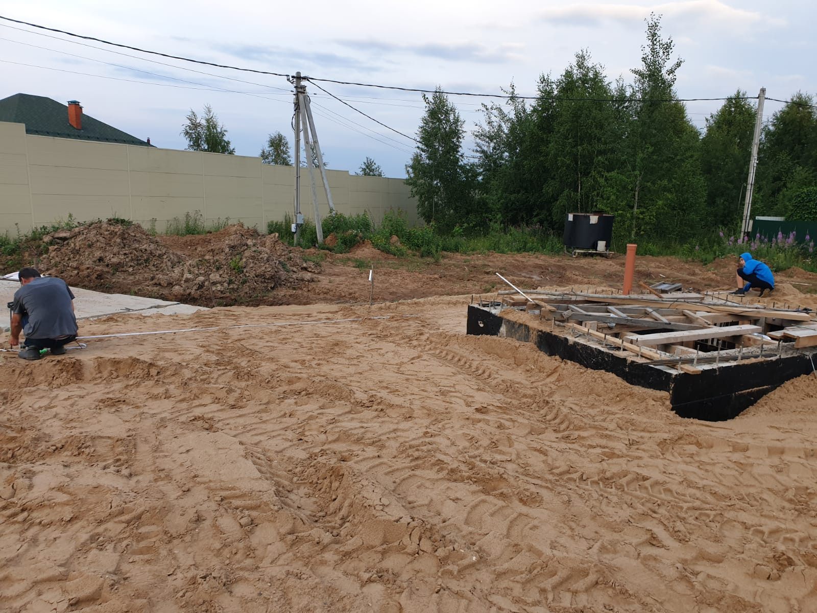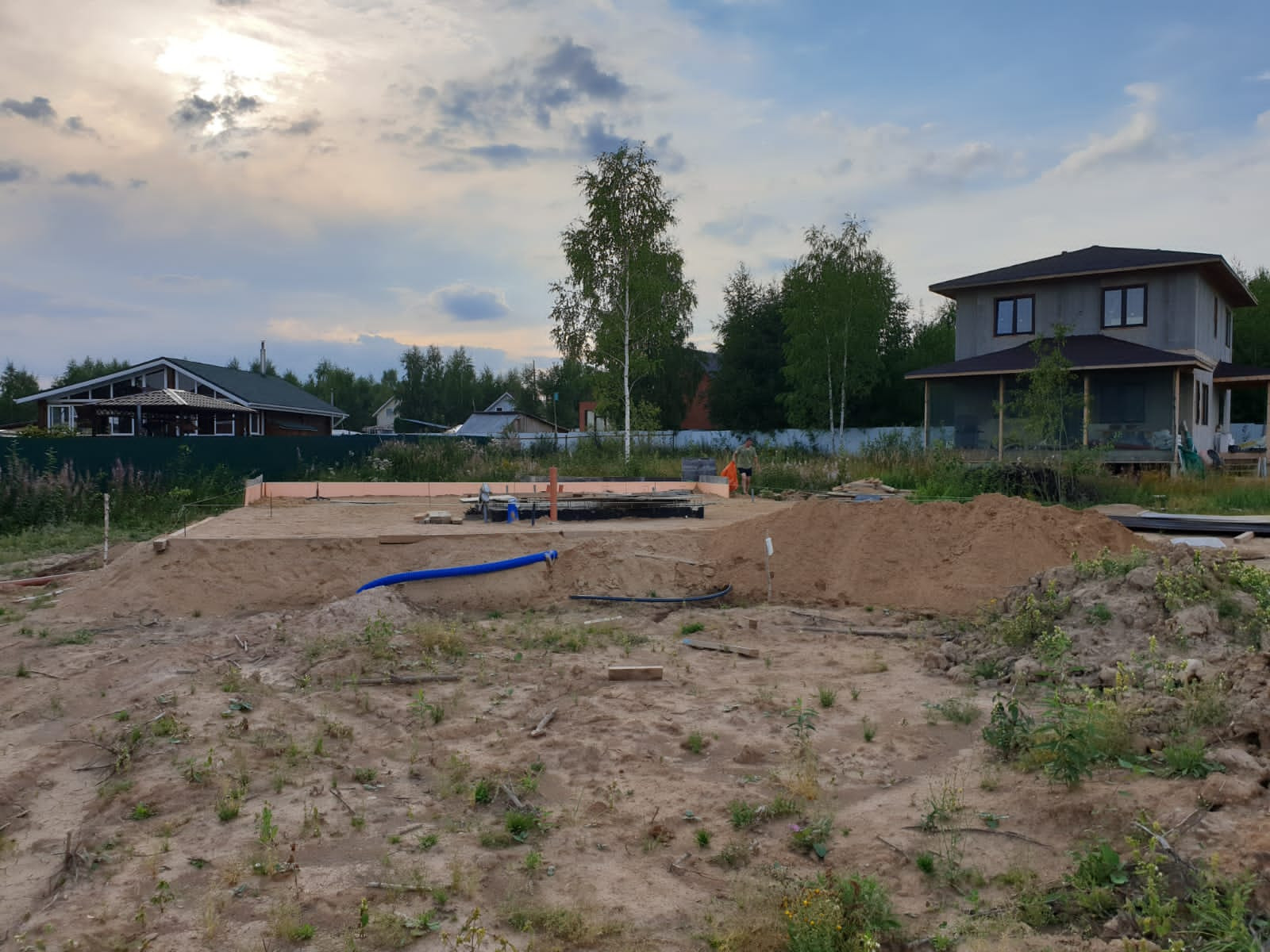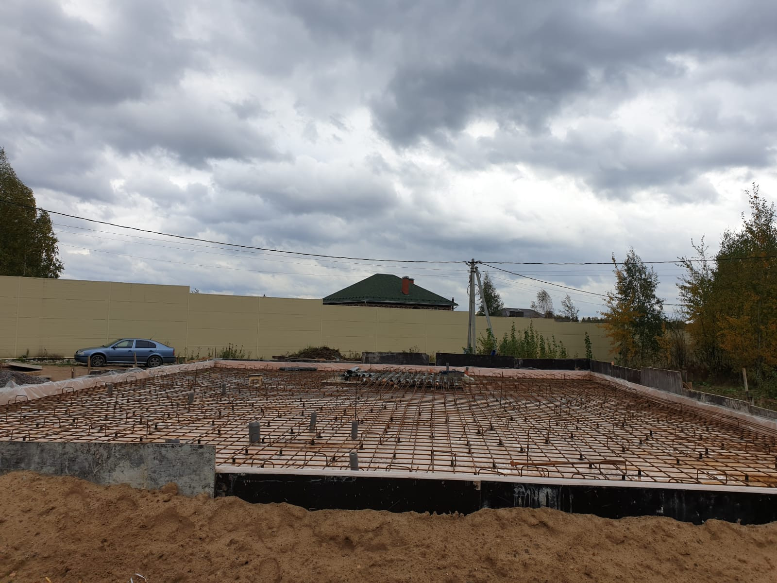 Участок сухой, место высокое, почва не болотистая. На участке залита утеплённая фундаментная плита 14×12, с монолитным погребом 3×3, 4×2, 0.5, выполнена канализационная разводка. Можно сразу строить дом.