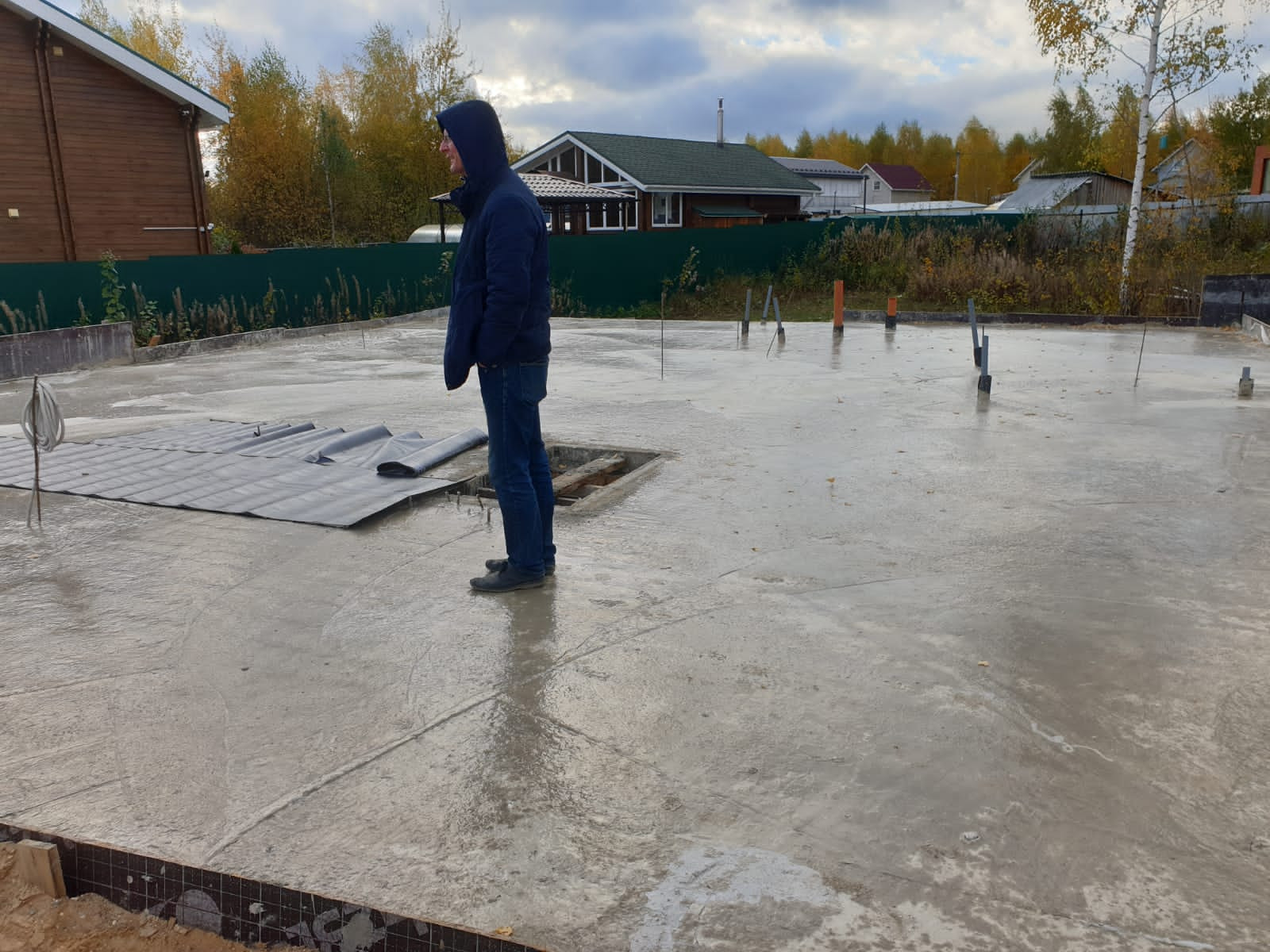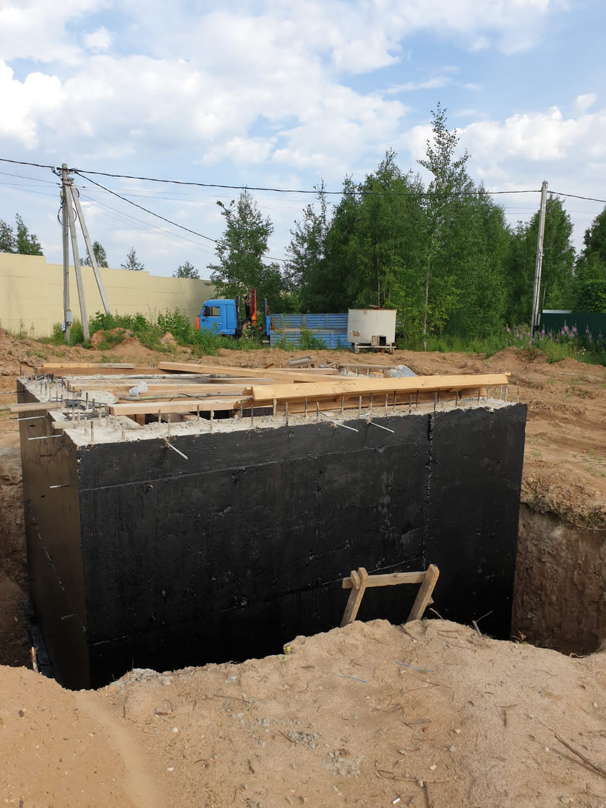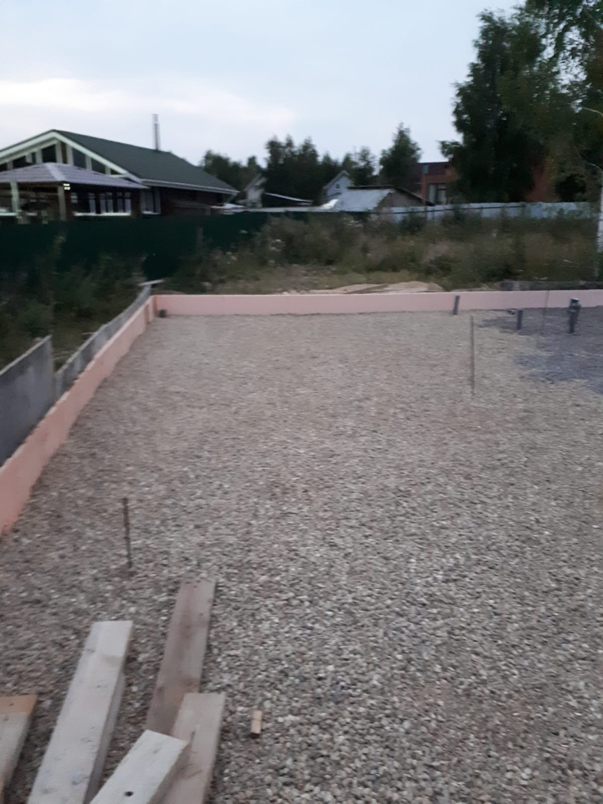 Участок сухой, место высокое, почва не болотистая. На участке залита утеплённая фундаментная плита 14×12, с монолитным погребом 3×3, 4×2, 0.5, выполнена канализационная разводка. Можно сразу строить дом.