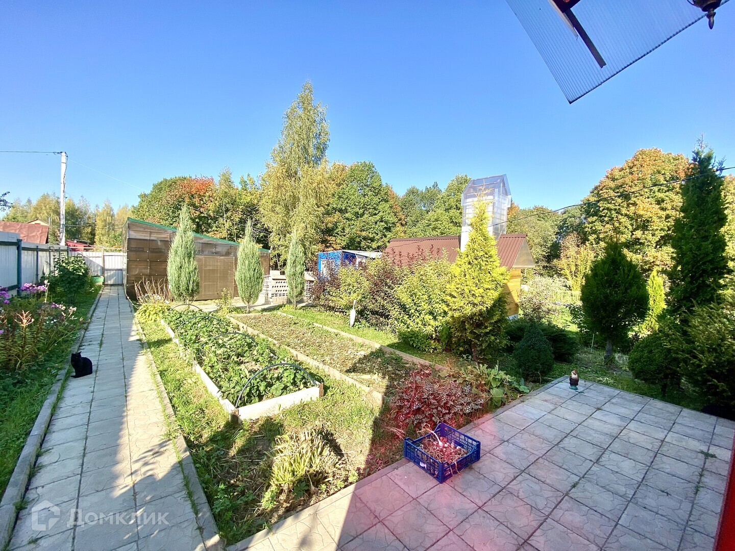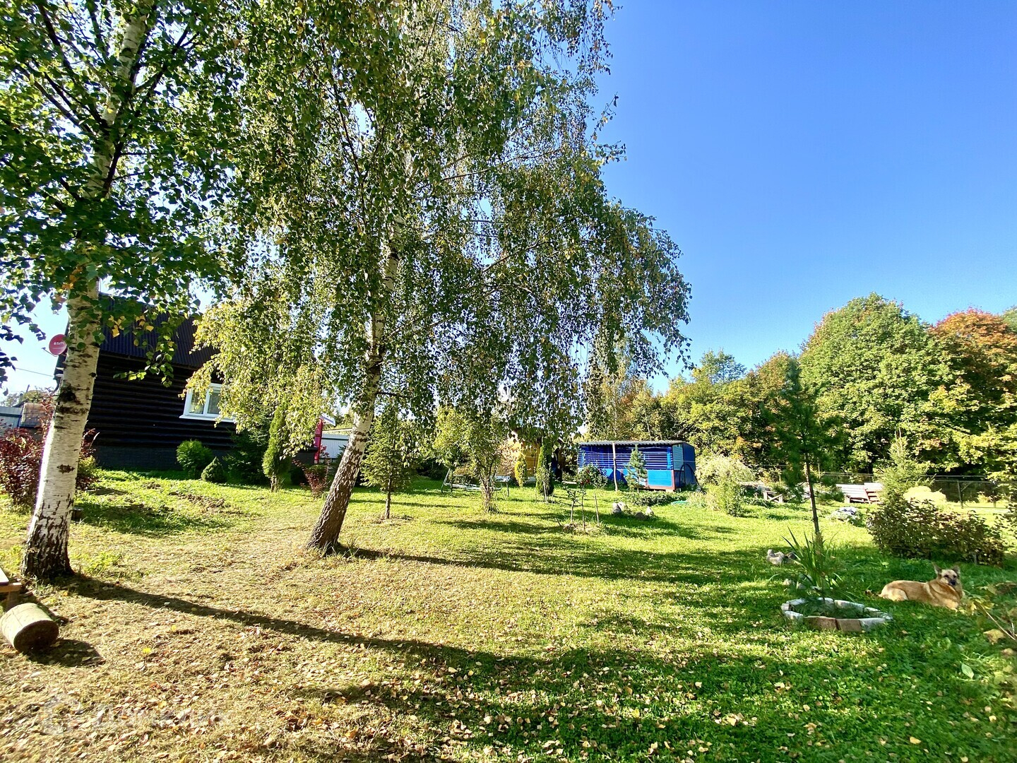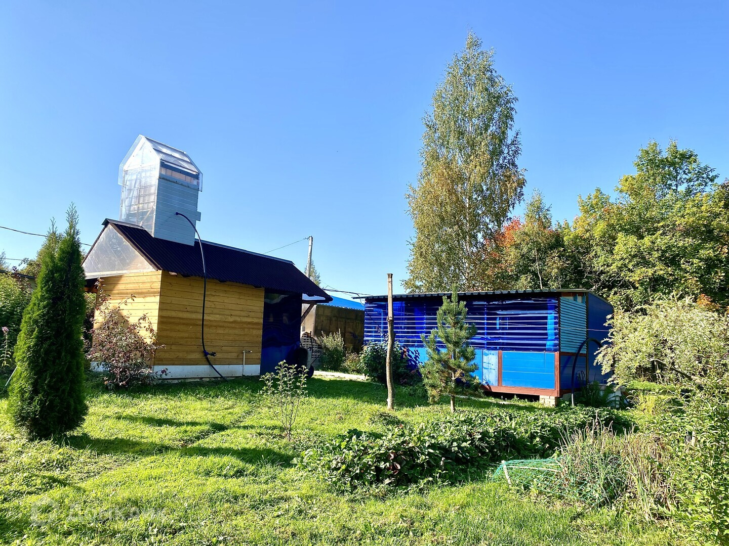 Участок площадью 15 соток, со всех сторон огорожен забором. Большое количество плодово-ягодных насаждений.
