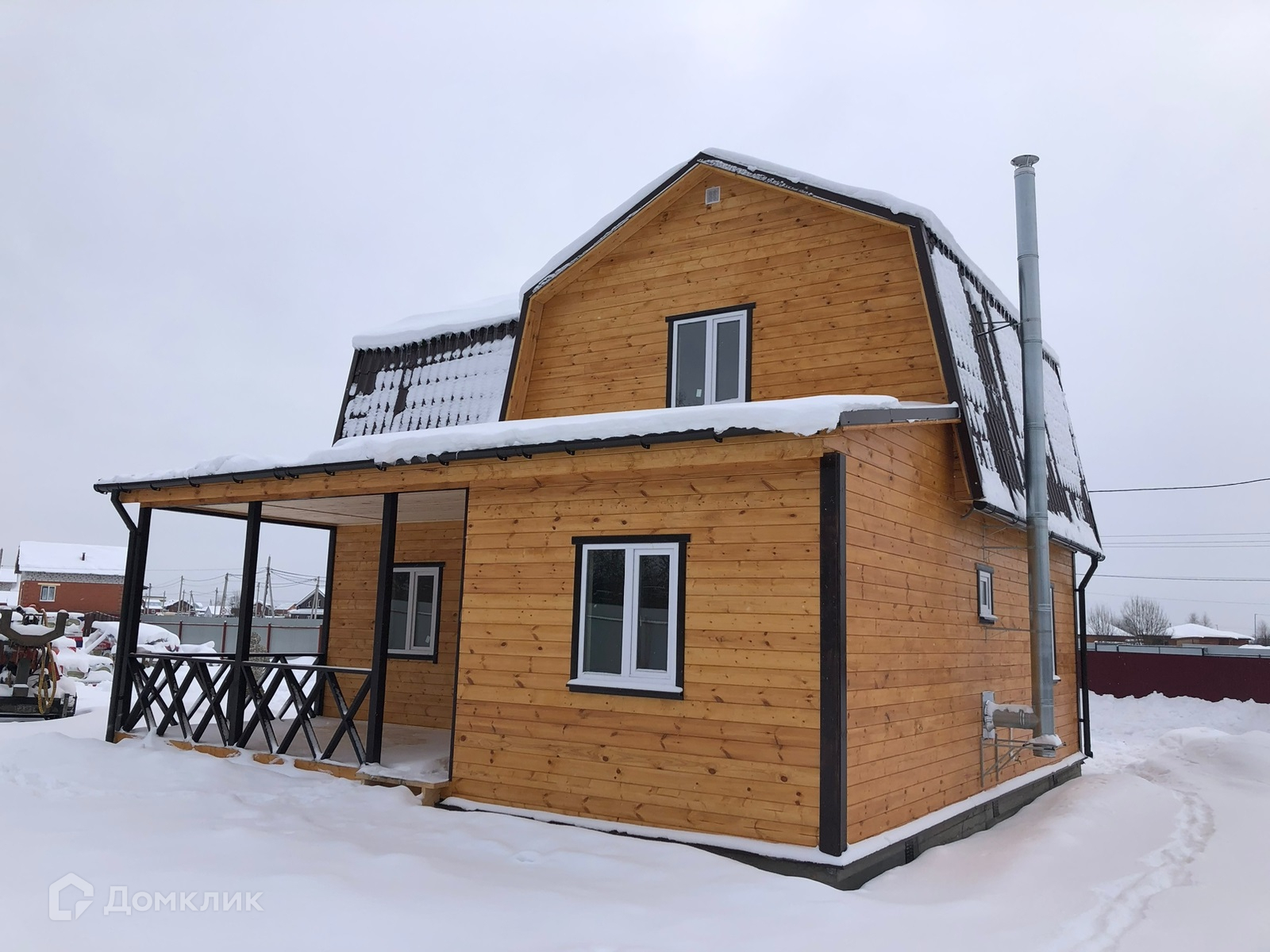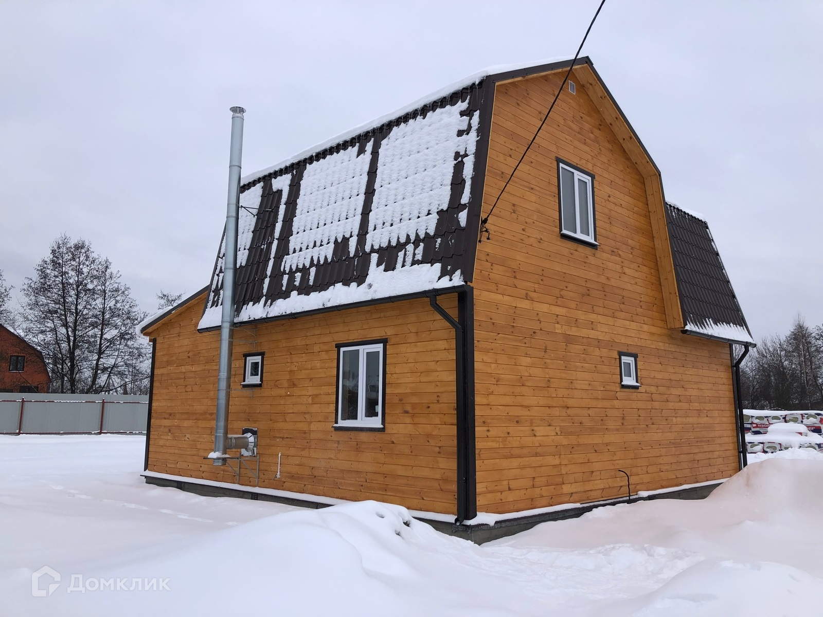 Участок с забором из профлиста, распашные ворота, калитка, парковка и плитка до дома. Современный дом,полностью готовый для круглогодичного проживания.