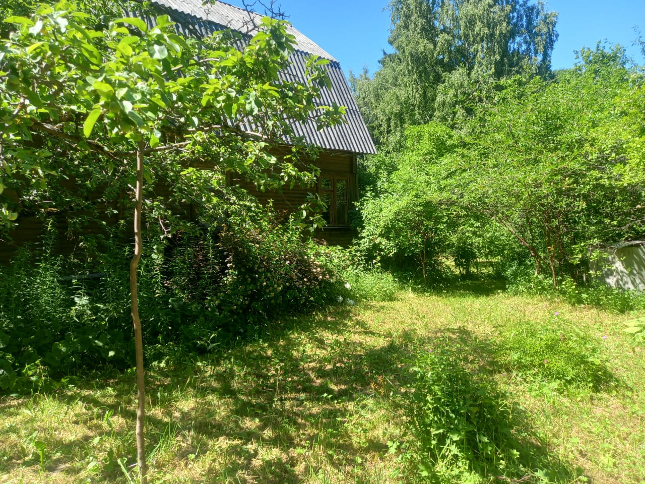 На участке -теннистый сад (яблони, сливы, терн, фундук, жимолость, ягодные и декоративные кустарники, цветы).