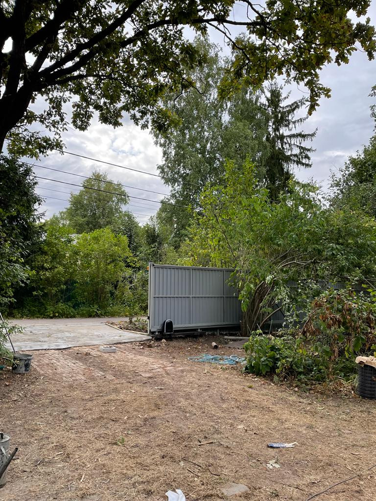 Участок огорожен со всех сторон, откатные ворота.