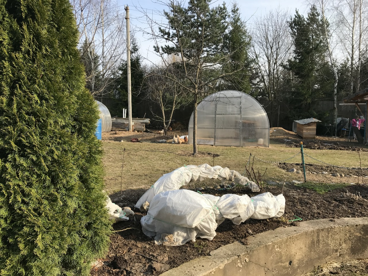 На участке построена капитальная баня, беседка, хозяйственный блок, колодец. Участок ровный, по всему периметру аккуратный ухоженный газон, дорожки, клумбы, многолетние плодовые деревья, виноград, ягодные кустарники, высокие многолетние туи и сосны. Забор со стороны фасада кирпичный, со стороны соседей деревянный, со стороны ещё одного соседа есть возможность поставить забор на свой вкус.