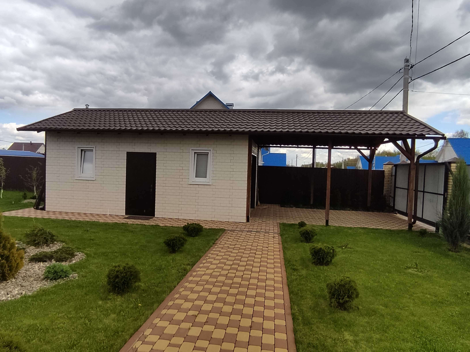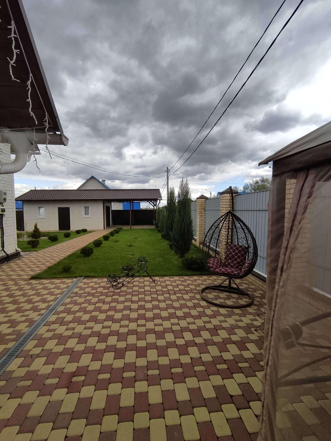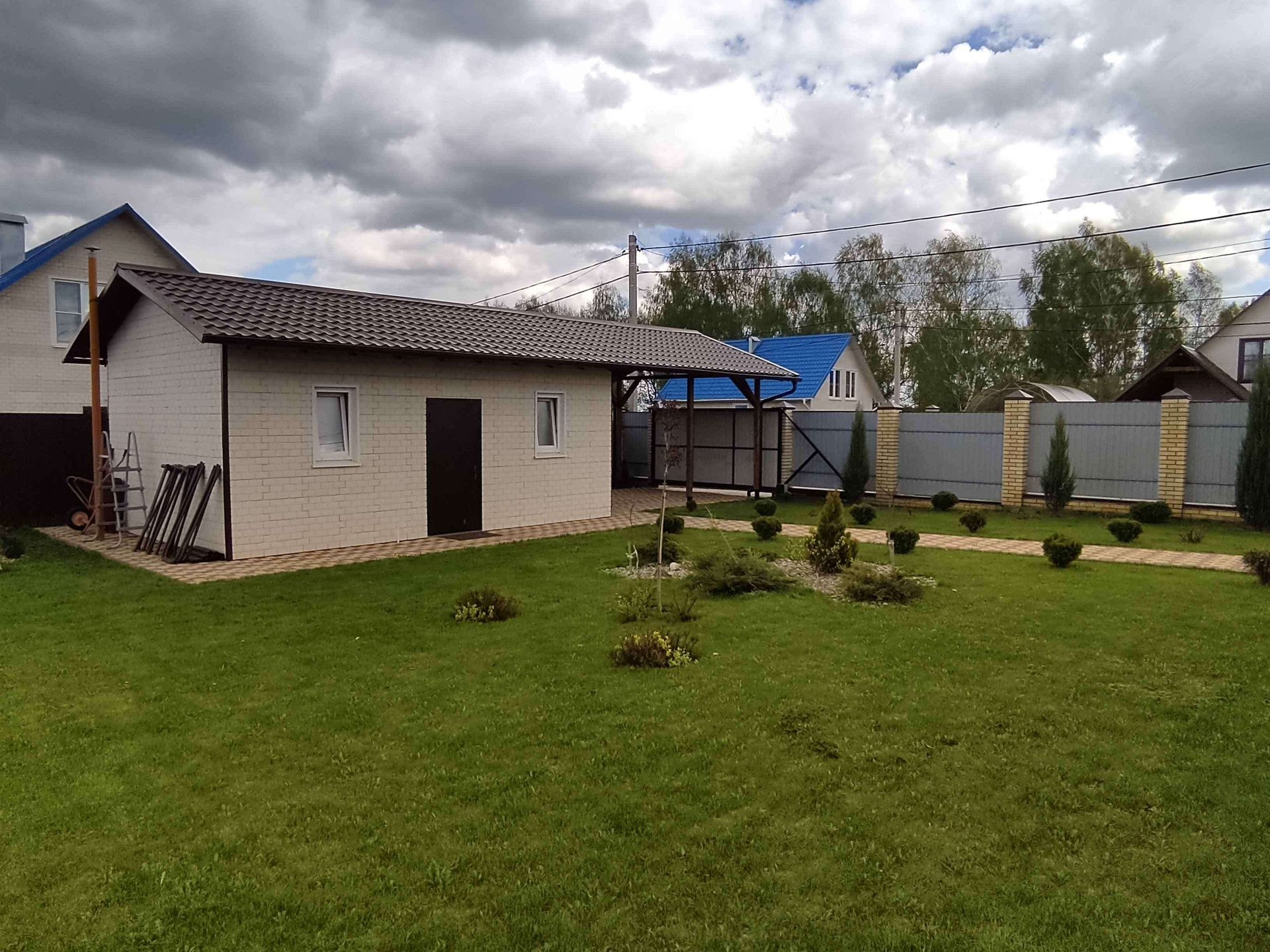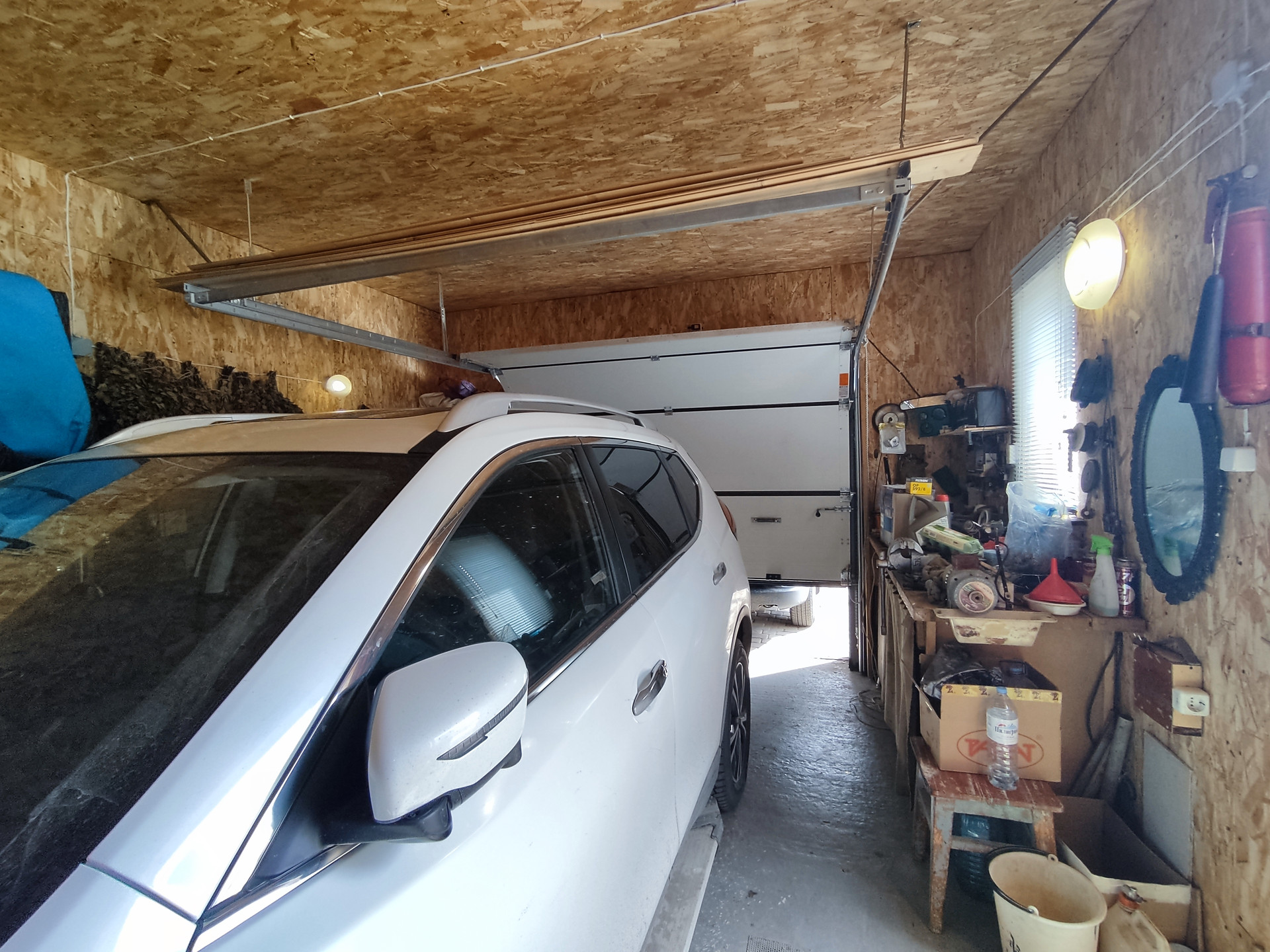 Гараж 8*5, с навесом для большой машины, также здесь расположен погреб, глубиной ~ 2 м. Перед гаражом можно расположить еще одну машину. Автоматические ворота для въезда.