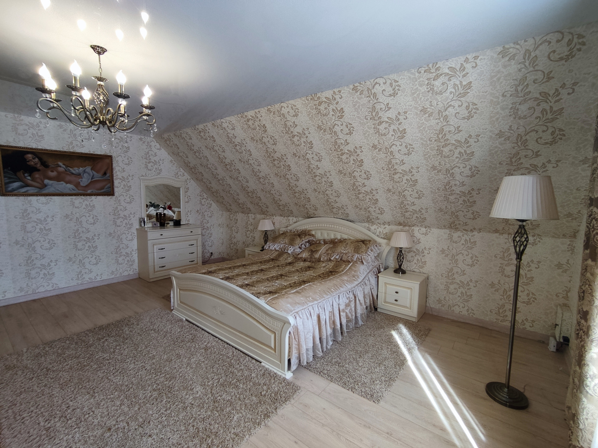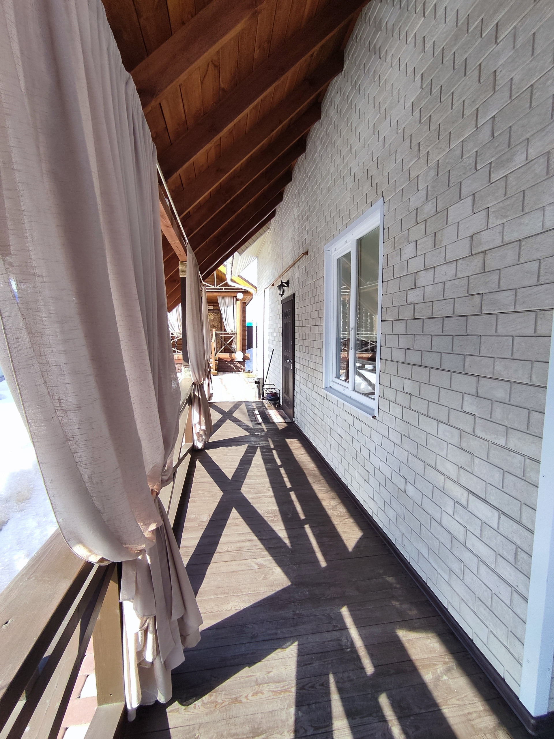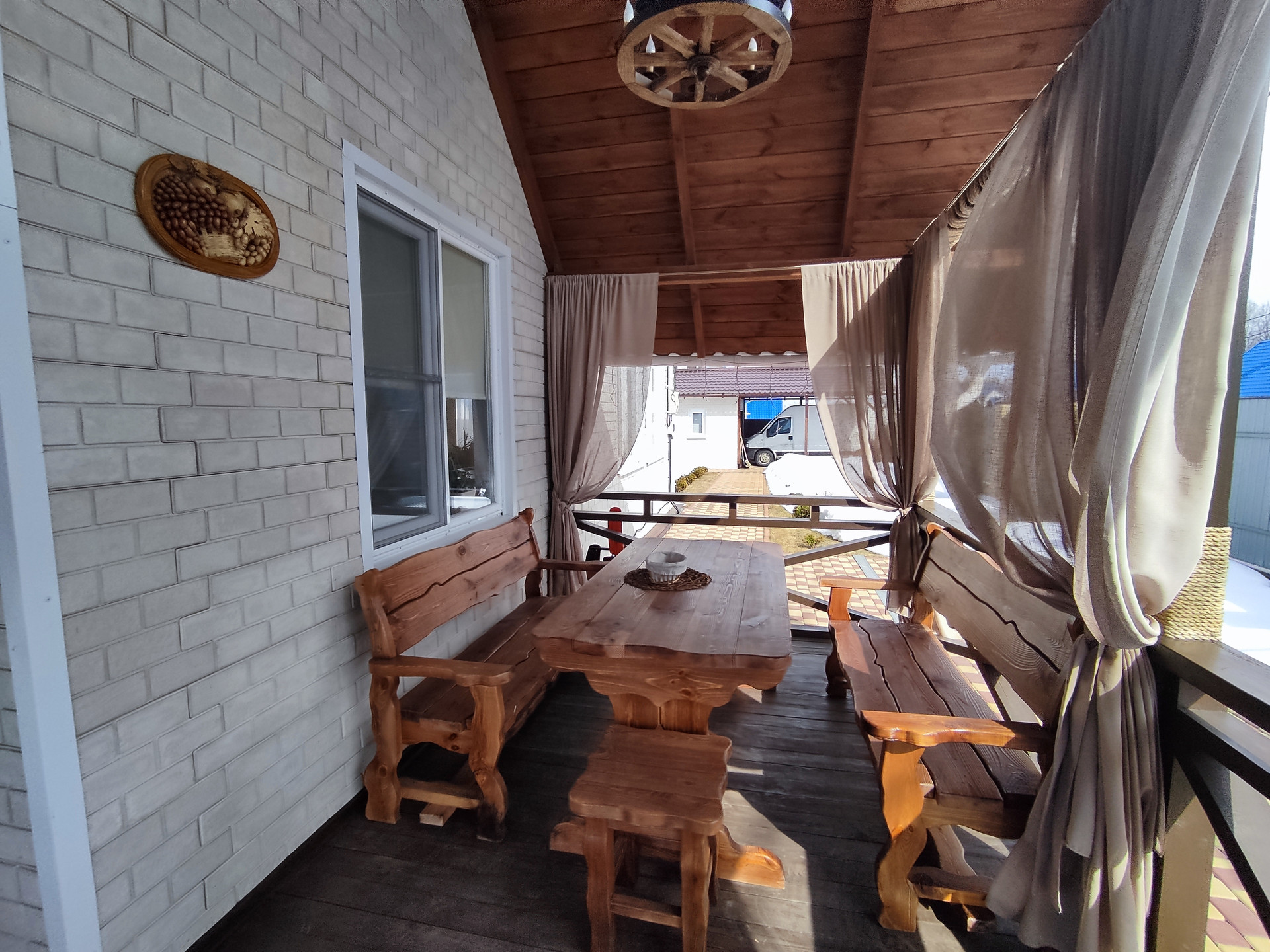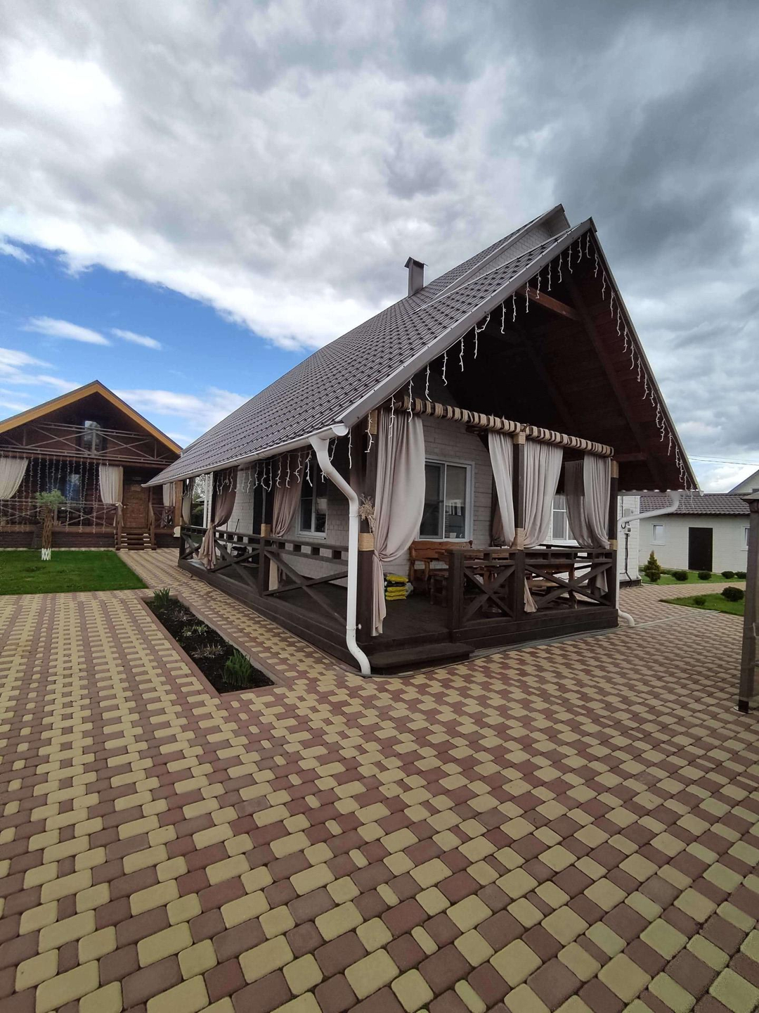 Гараж 8*5, с навесом для большой машины, также здесь расположен погреб, глубиной ~ 2 м. Перед гаражом можно расположить еще одну машину. Автоматические ворота для въезда.