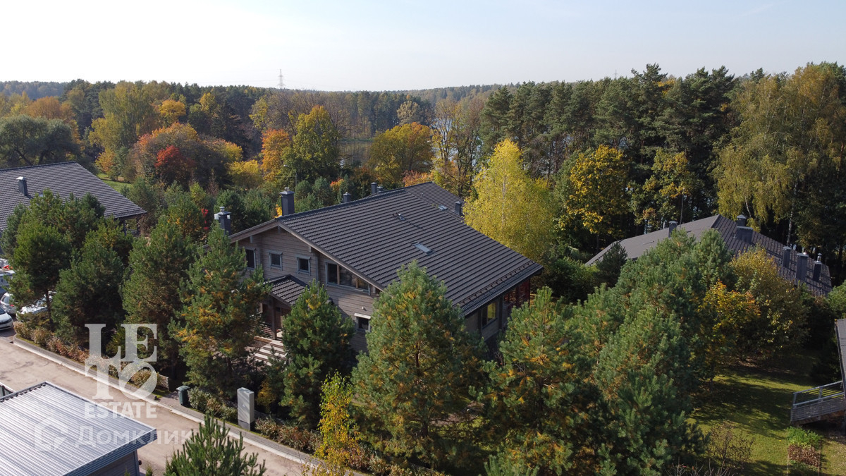 второй этаж: мастер-спальня с санузлом и ванной, спальня, спальня, санузел с душевойКоттеджный поселок “Истринская Ривьера” расположен на берегу Истринского водохранилица в 43 км от МКАД по Пятницкому шоссе. В камерном поселке всего 25 домов на 7 гектарах. «Истринская Ривьера» раскинулась на берегу Истринского водохранилища. В комплексе тишина загородной жизни сочетается с близостью к городской инфраструктуре. Одно из безусловных преимуществ поселка — потрясающие виды: двухэтажные деревянные дома HONKA с панорамным остеклением спроектированы так, чтобы дарить жильцам максимальное удовольствие от окружающей природы. С трех сторон «Истринскую Ривьеру» окружает водная гладь: благодаря продуманной планировке комплекса вид на воду открывается из каждого дома. При проектировании и строительстве поселка были тщательно проработаны инфраструктурные вопросы: у жильцов есть доступ не только к традиционным объектам благоустройства, таким как прогулочные зоны и спортплощадки, но и, например, к элитным школам и гимназиям, расположенные недалеко от поселка. Кроме того, в поселке работает собственная сервисная служба: через администратора можно заказать самые разные услуги — от ремонта бытовой техники до регулярной уборки дома. В непосредственной близости от «Истринской Ривьеры» расположены престижные школы, музеи и развлекательные центры. Вблизи находится элитная гимназия «Мастер-класс». Это школа-пансион с углубленным изучением языков, театральной студией и спорт-центром. Берег Истринского водохранилища — чрезвычайно живописное место. Поселок возведен прямо на берегу, на небольшом полуострове, неподалеку от деревни Трусово. Солнечногорский район – это прекрасная зеленая зона, территории района занимают хвойные и смешанные леса, вплотную подходящие и к «Истринской Ривьере»: великолепная природа, которой восхищались Левитан и Чайковский, пейзажи, одинаково прекрасные и снежной зимой, и золотой осенью, и жарким летом. Путь на машине по Пятницкому шоссе от МКАД занимает всего 30–40 минут. Также можно добраться по платной высокоскоростной трассе М-11.