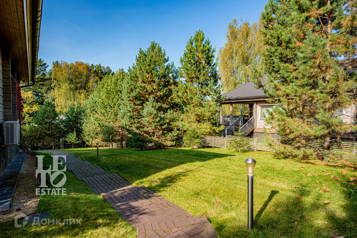 На участке выполнен ландшафтный дизайн, посажены декоративные и плодовые деревья, вымощены дорожки, установлено освещение. Дополнительно организована зона барбекю. На преддомовой территории сделана парковка для автомобилей.
