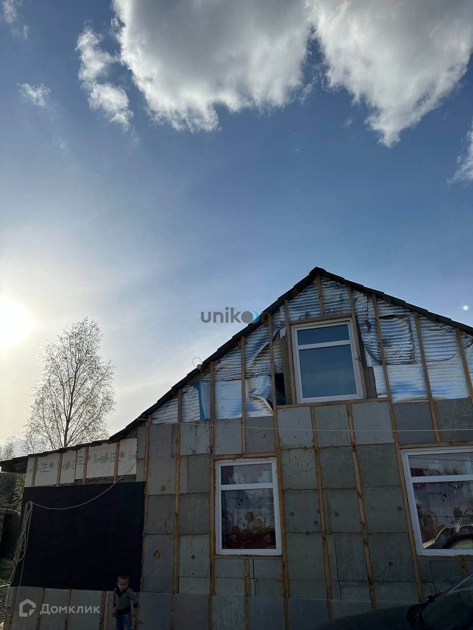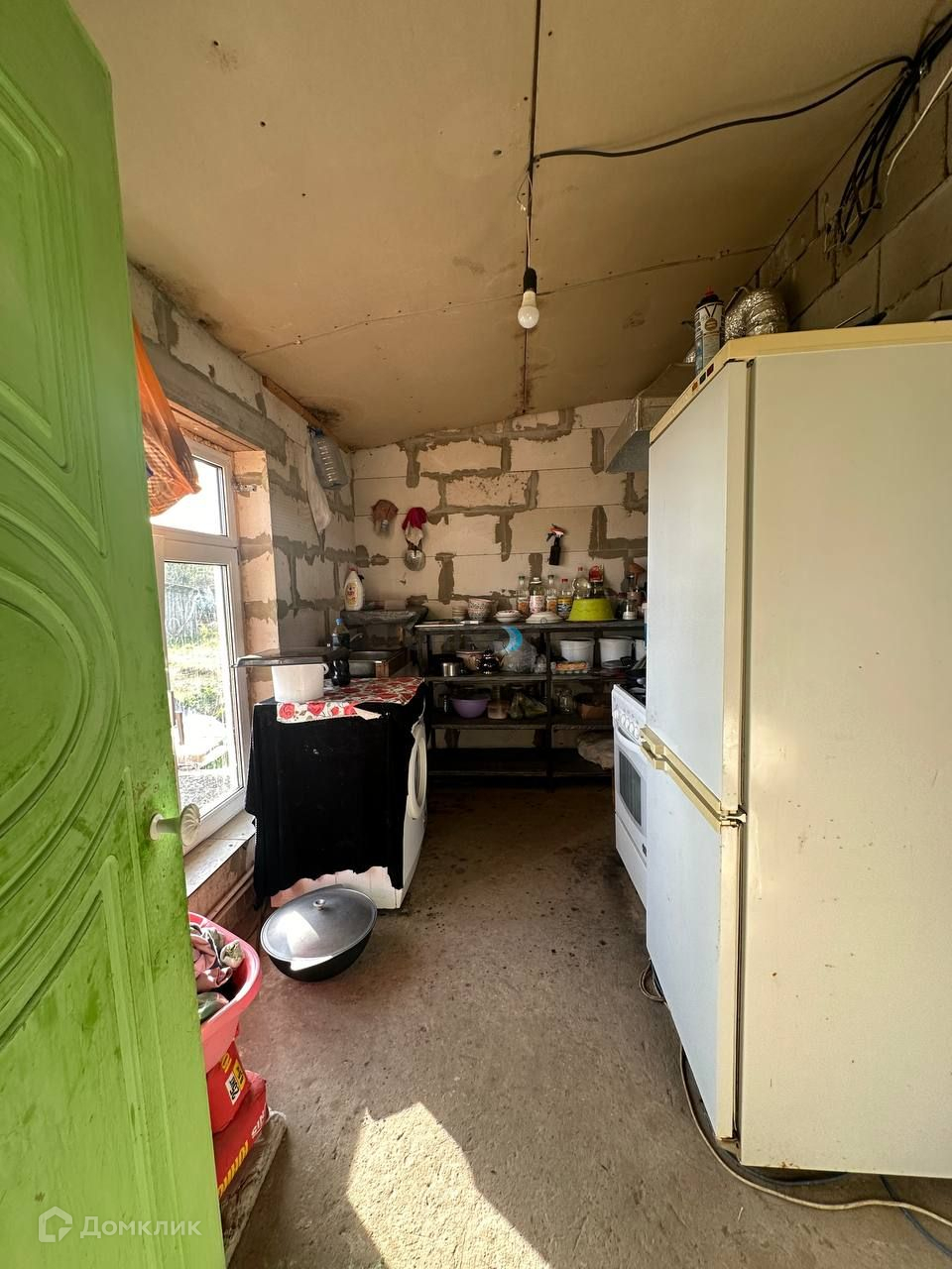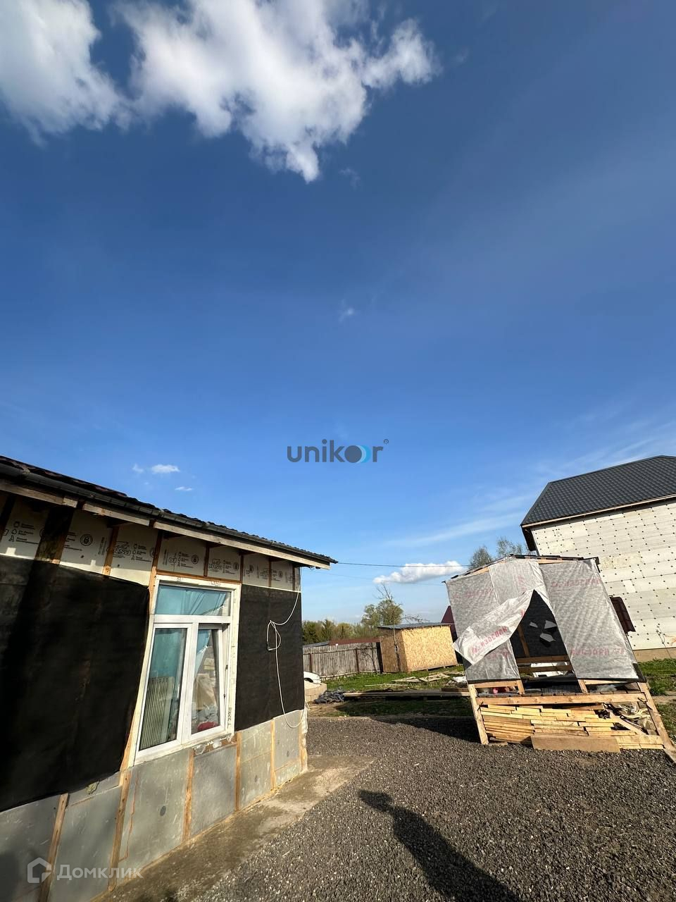 Фундамент ленточный на сваях. Стены выполнены из пеноблока. Частичная чистовая отделка. В доме 3 комнаты, кухня, санузел. Дом подготовлен к обшивке фасада.