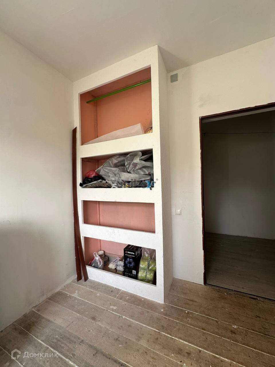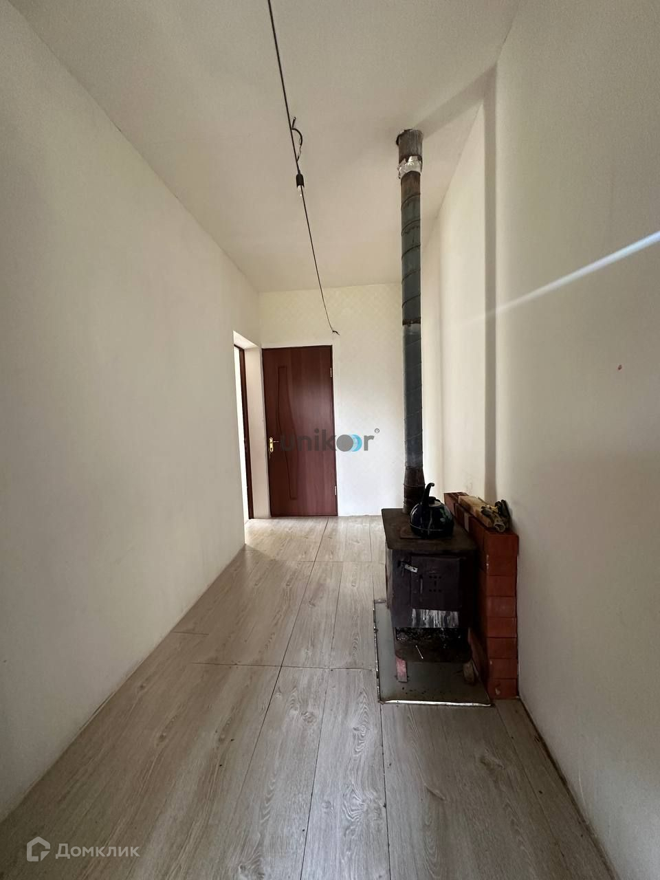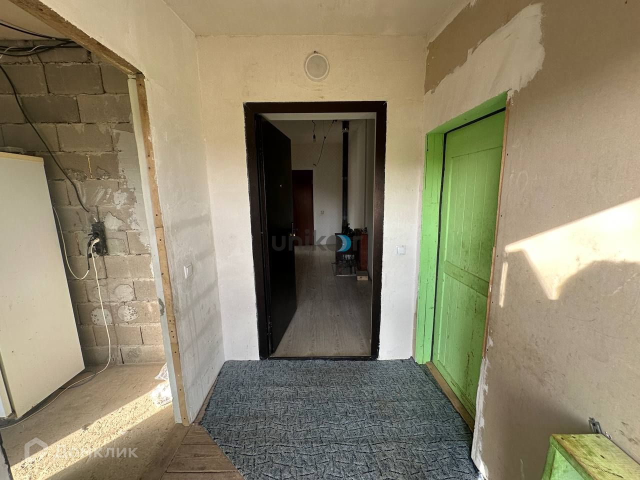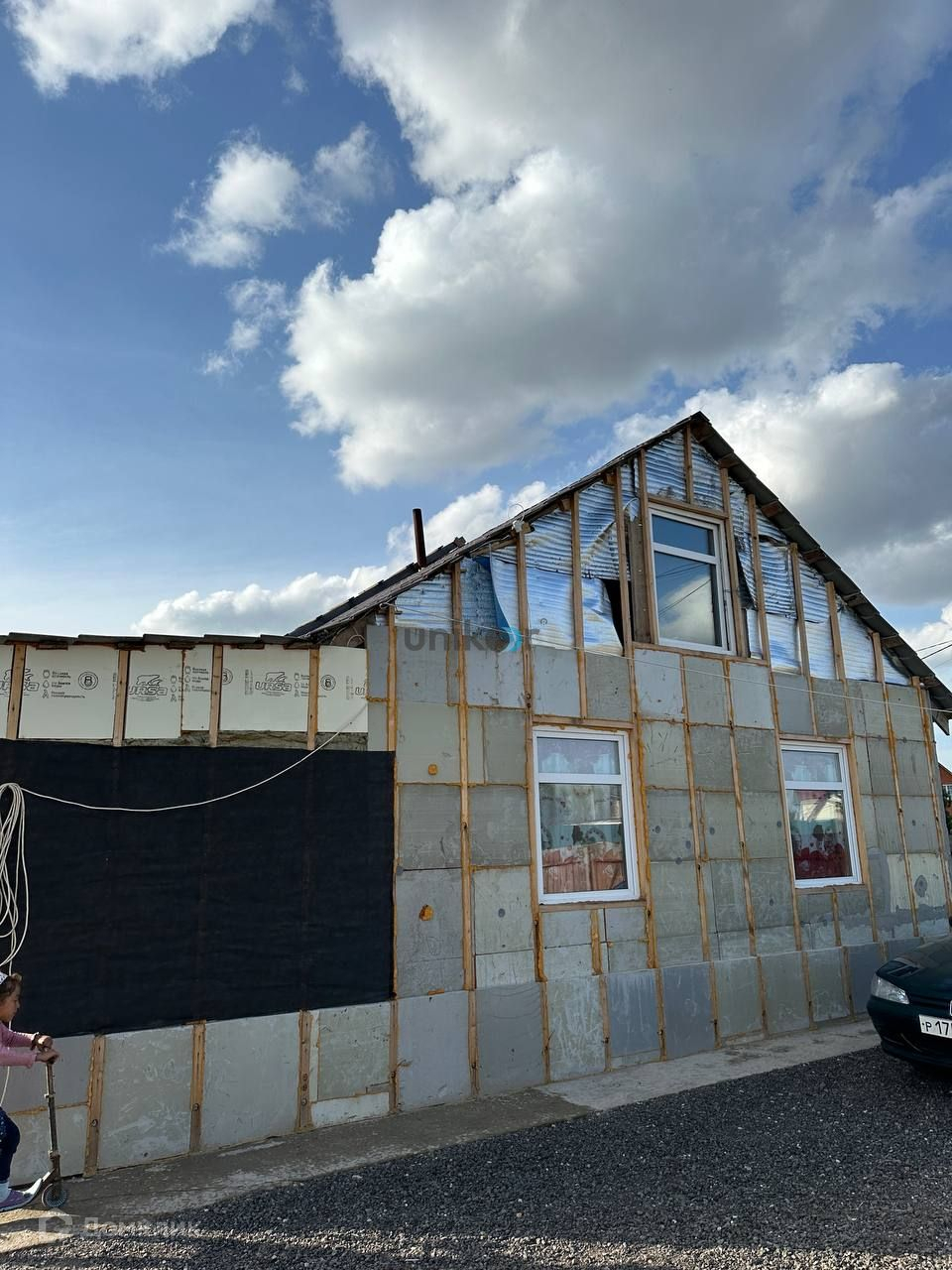Фундамент ленточный на сваях. Стены выполнены из пеноблока. Частичная чистовая отделка. В доме 3 комнаты, кухня, санузел. Дом подготовлен к обшивке фасада.