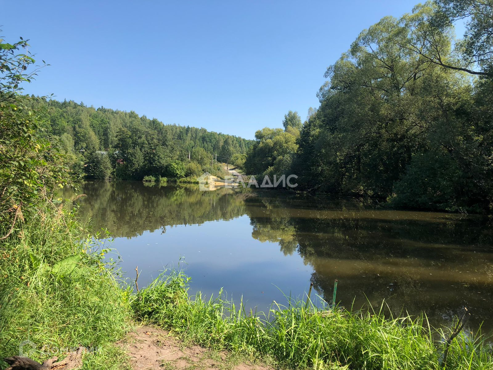 Участок с выходом на пруд. Территория поселка огорожена.