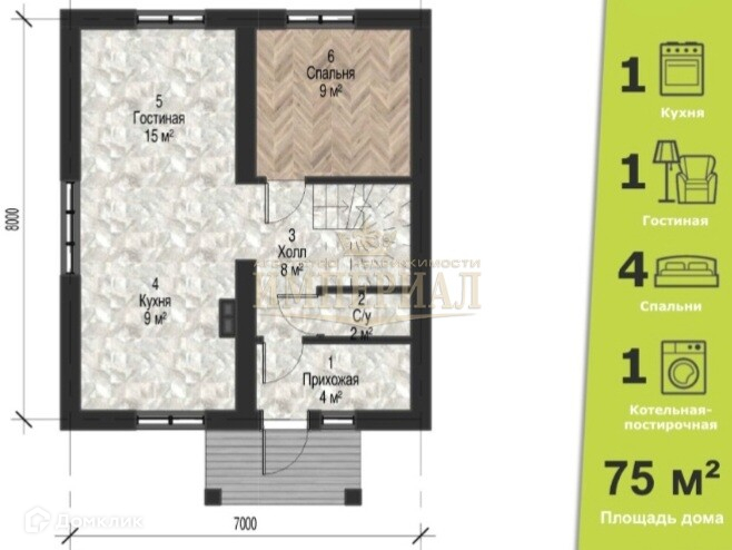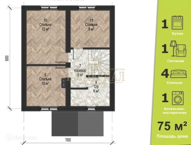 Общая площадь 75 м2