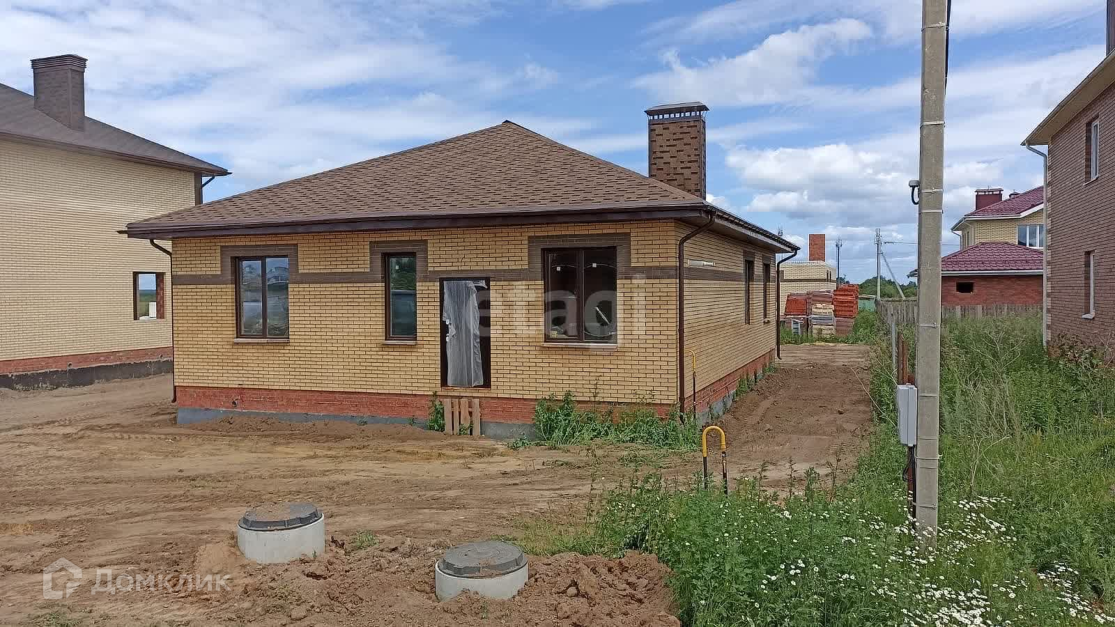 Дом полностью построен из кирпича. Энергосберегающие окна. Крыша мягкая кровля.