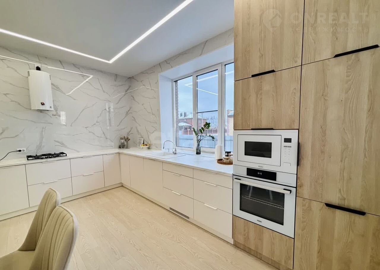 Внутри дома вас ждет качественный современный ремонт, выполненный в светлых, приятных тонах, который создаст атмосферу уюта и гармонии. Высокие потолки — 2.9 м на первом этаже и 2.7 м на втором — визуально увеличивают пространство. Натяжные потолки и теплые полы на первом этаже обеспечат комфорт в любое время года.