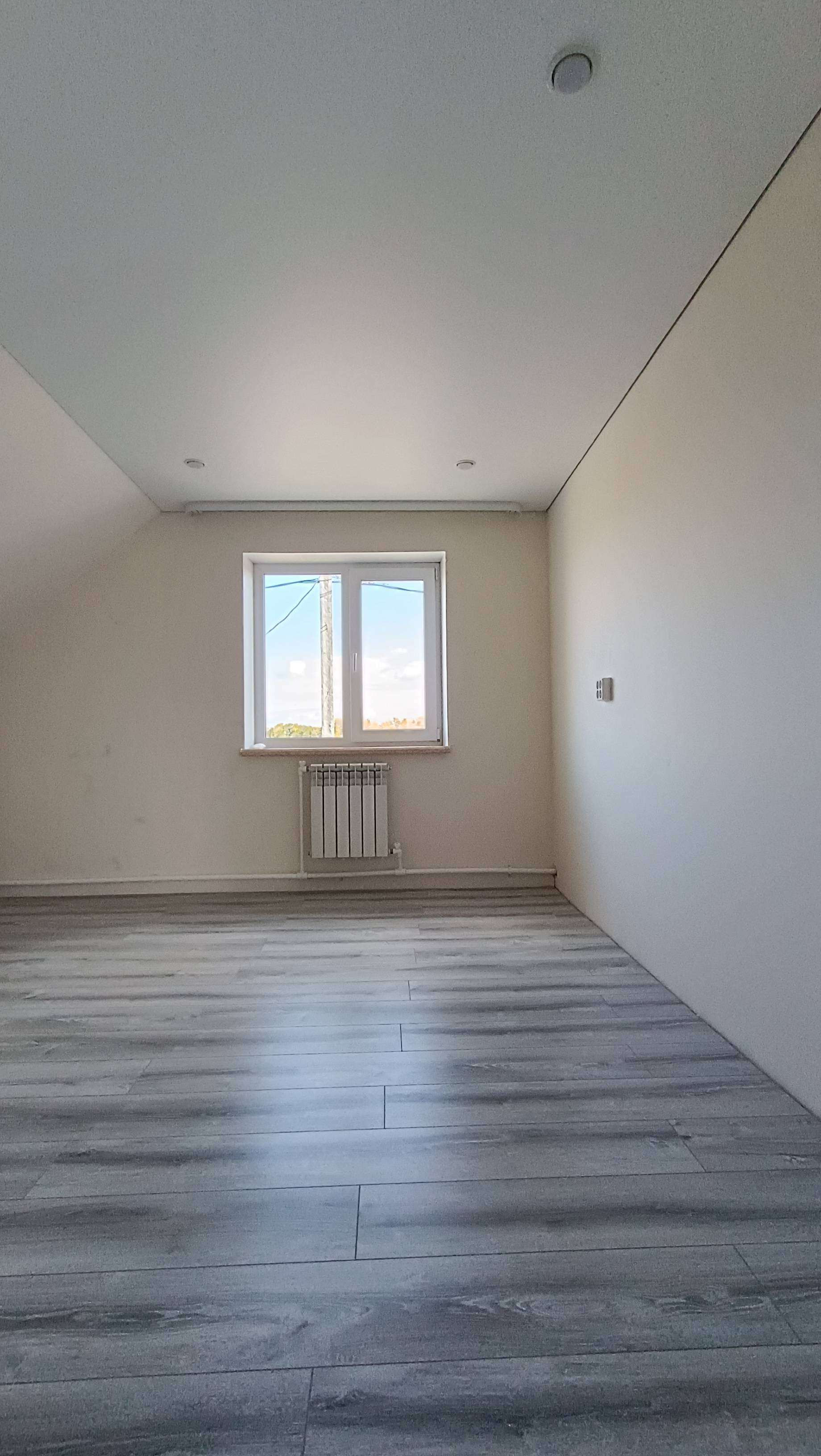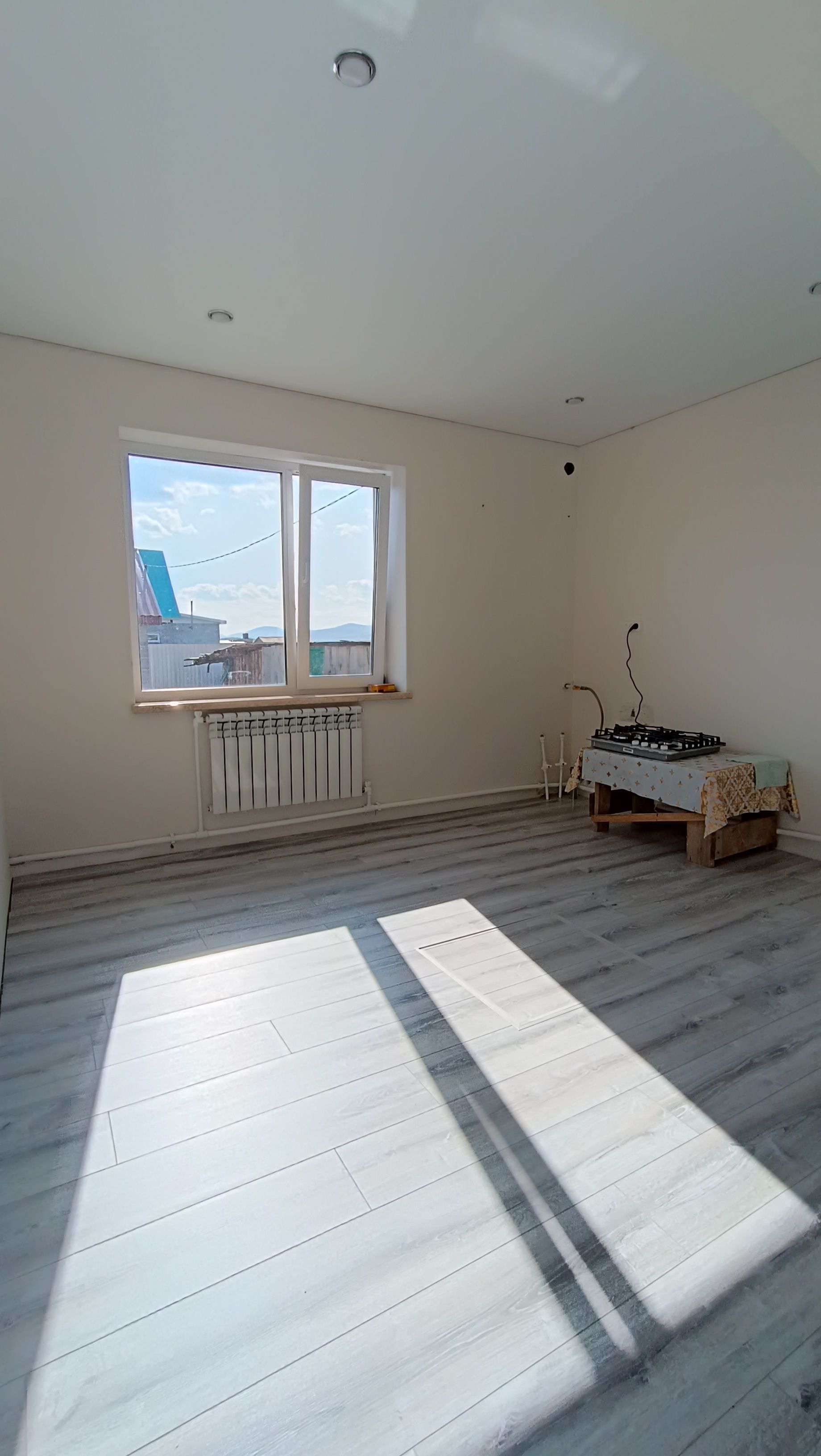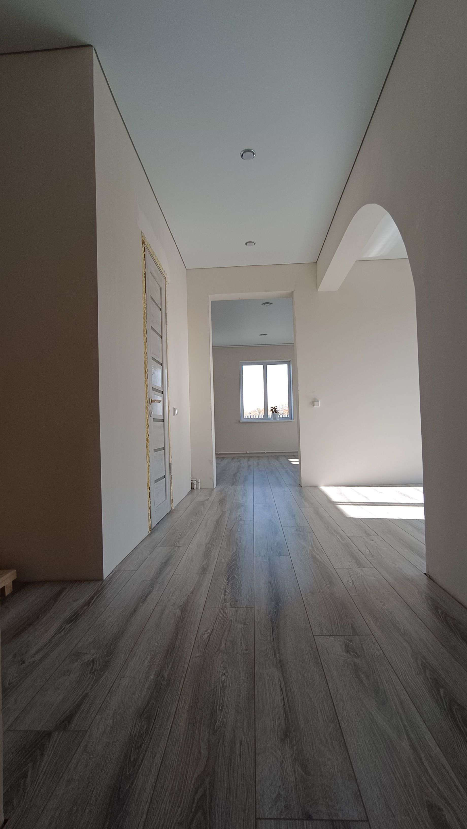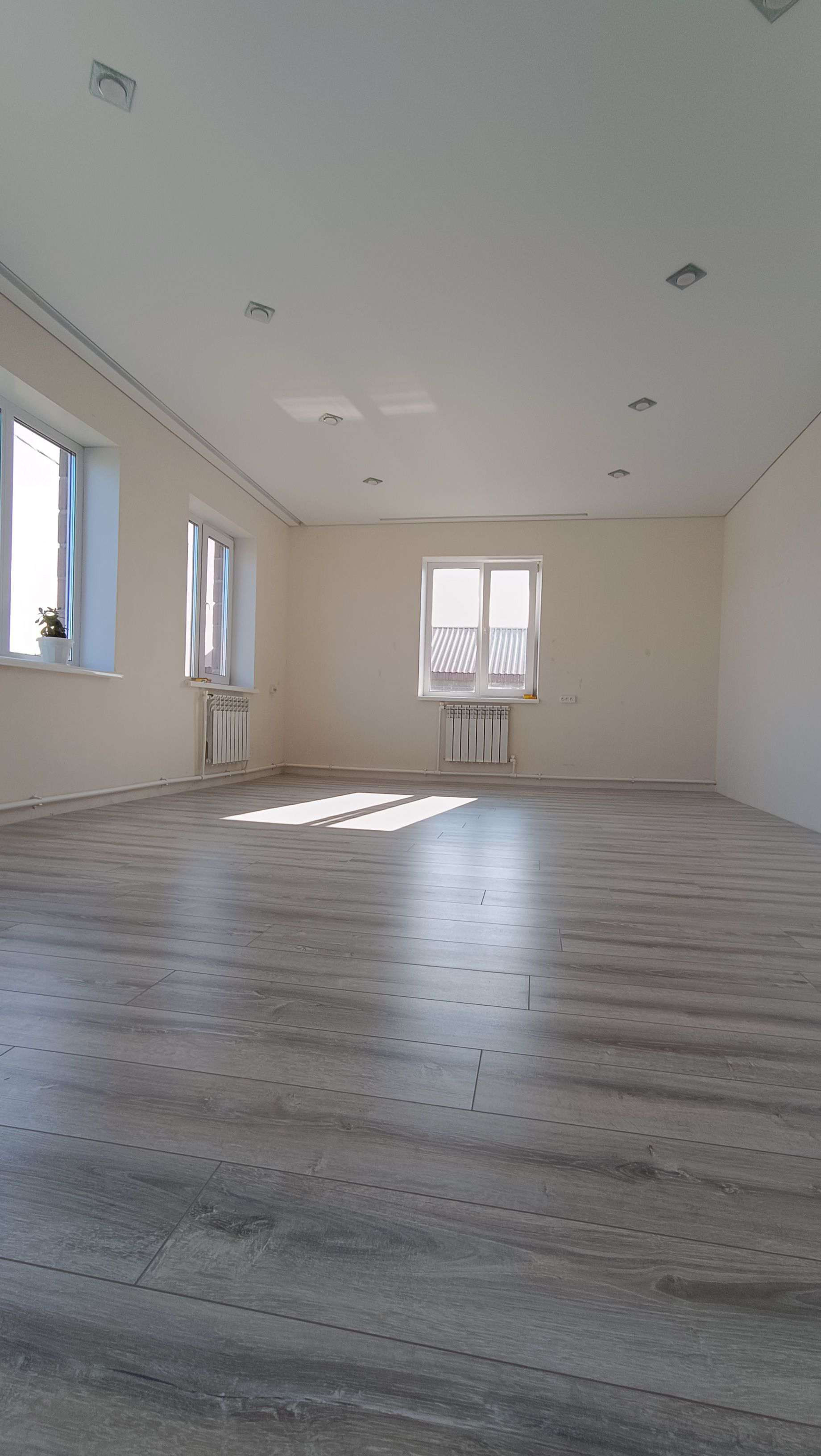 Натянуты потолки, выложен ламинат.