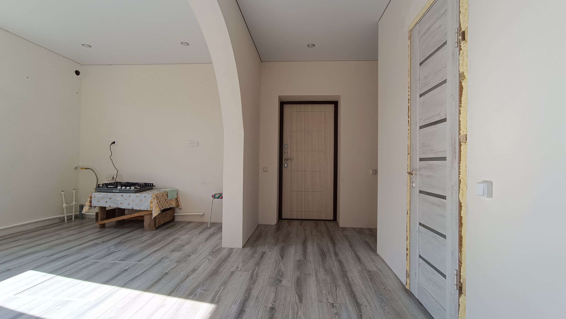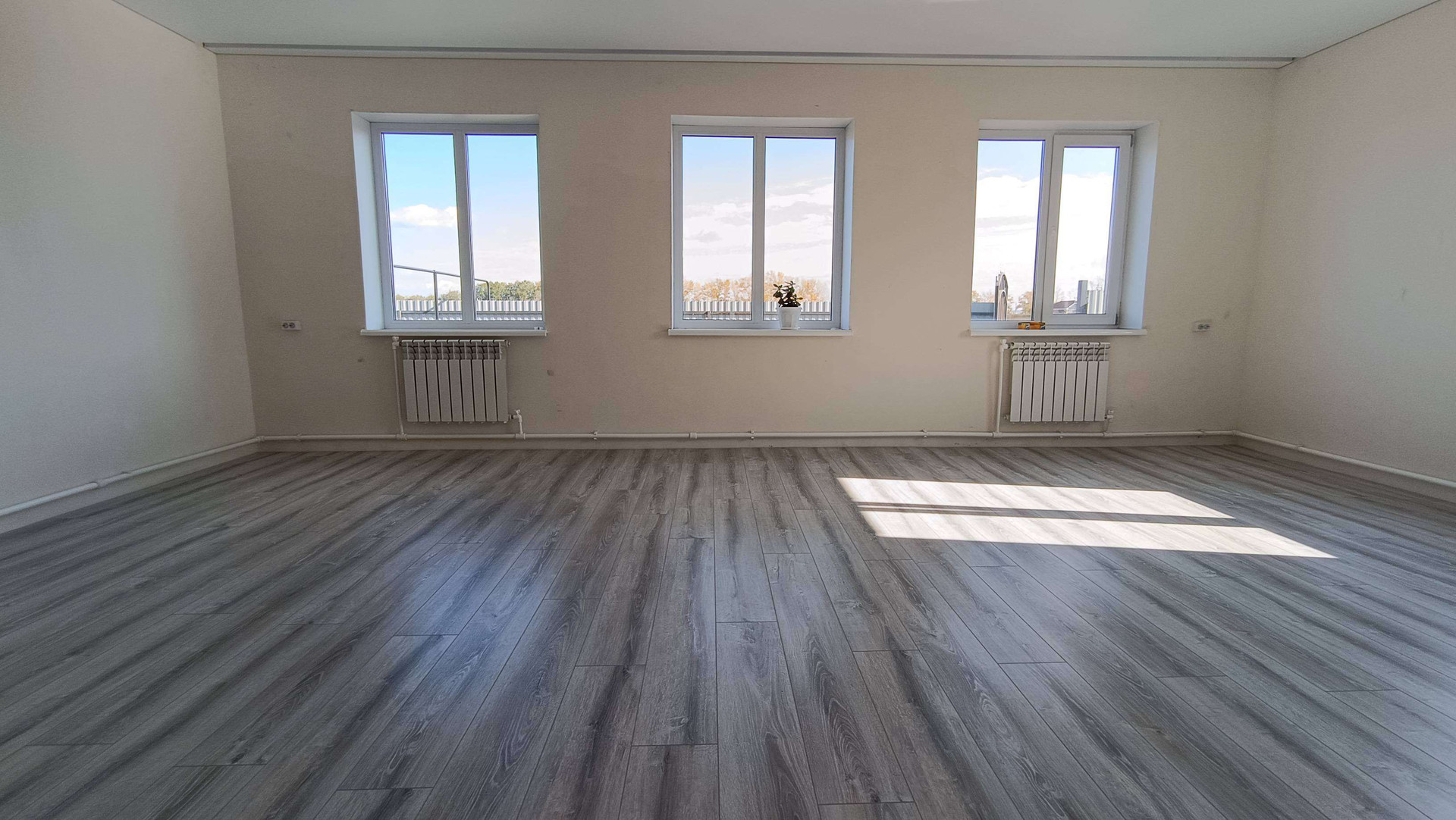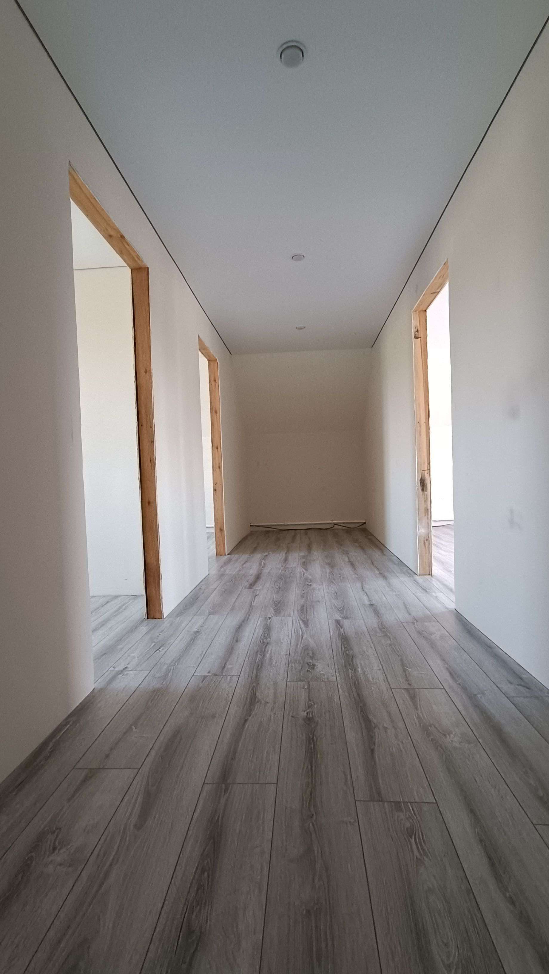 Натянуты потолки, выложен ламинат.