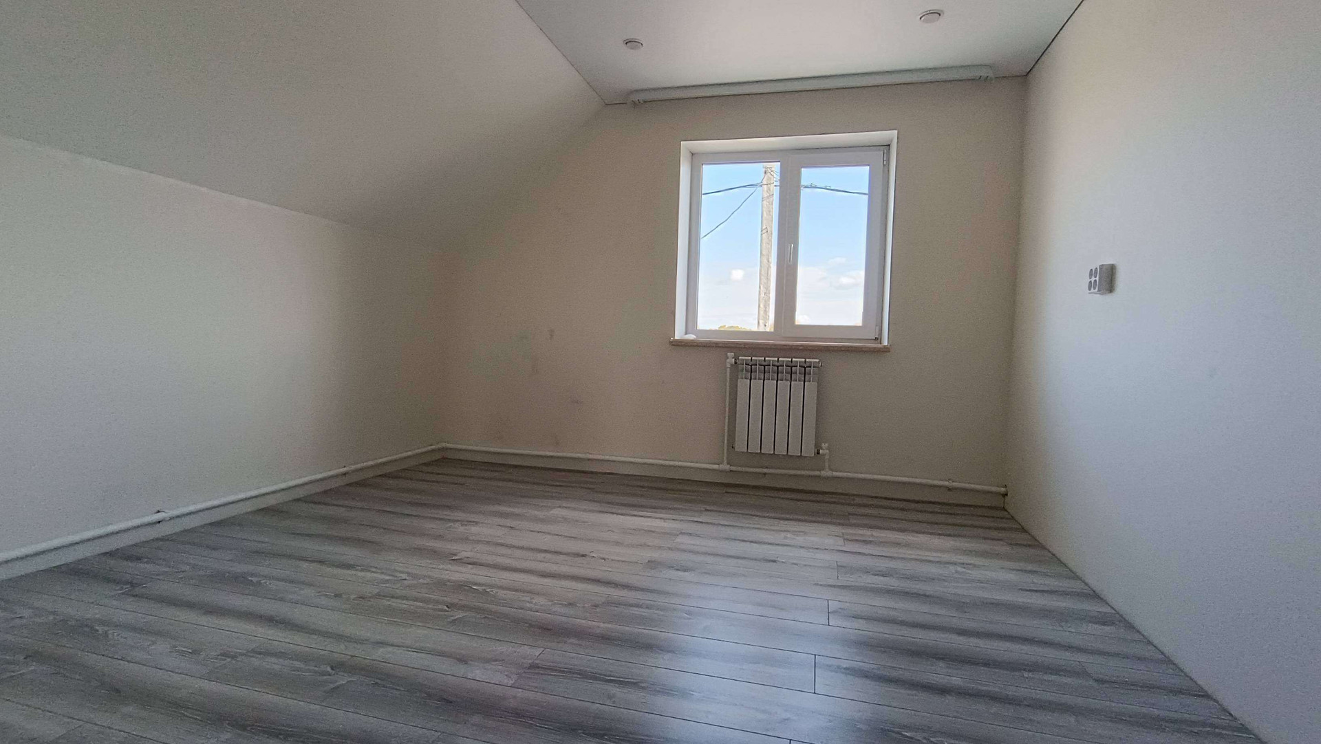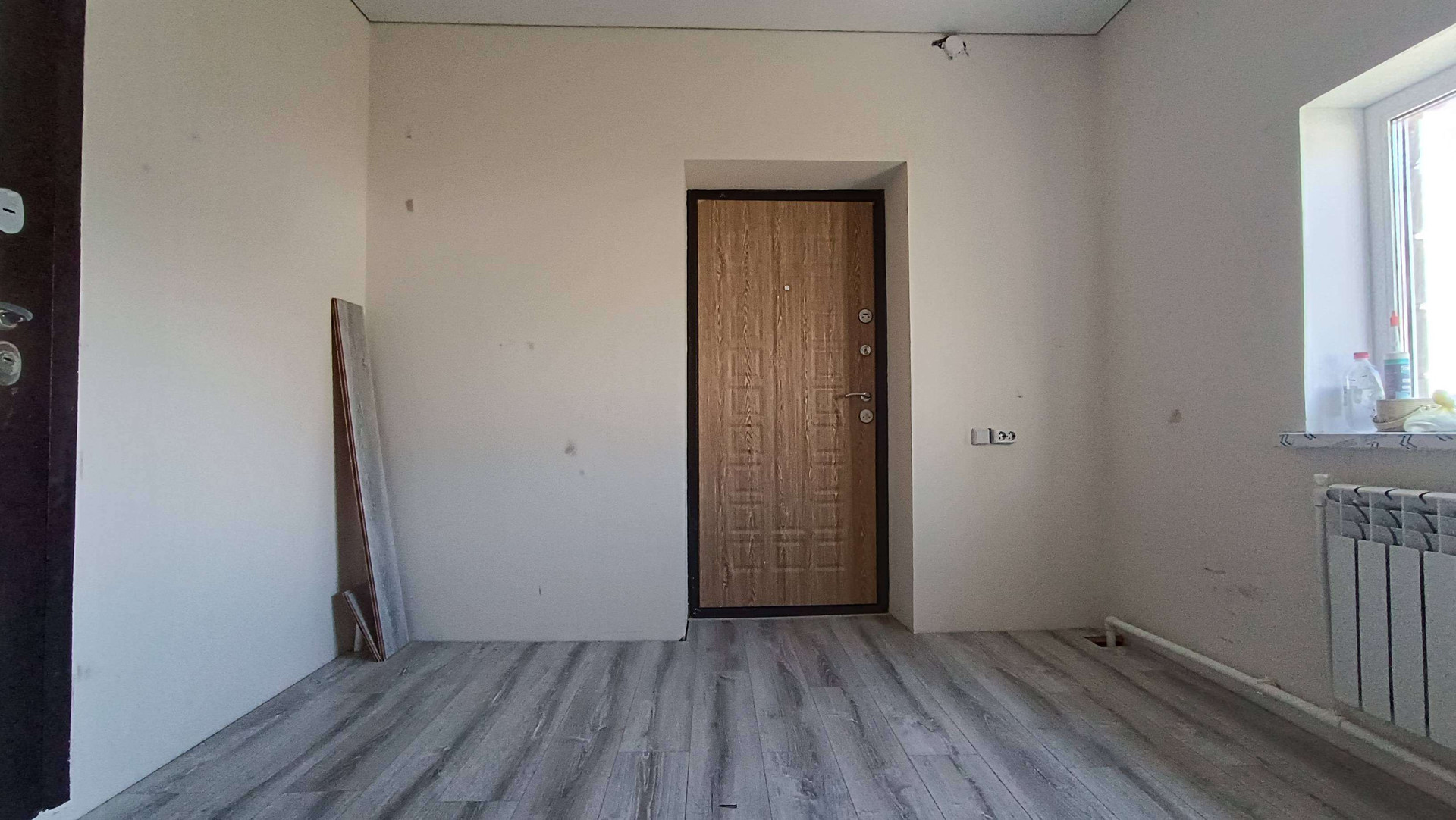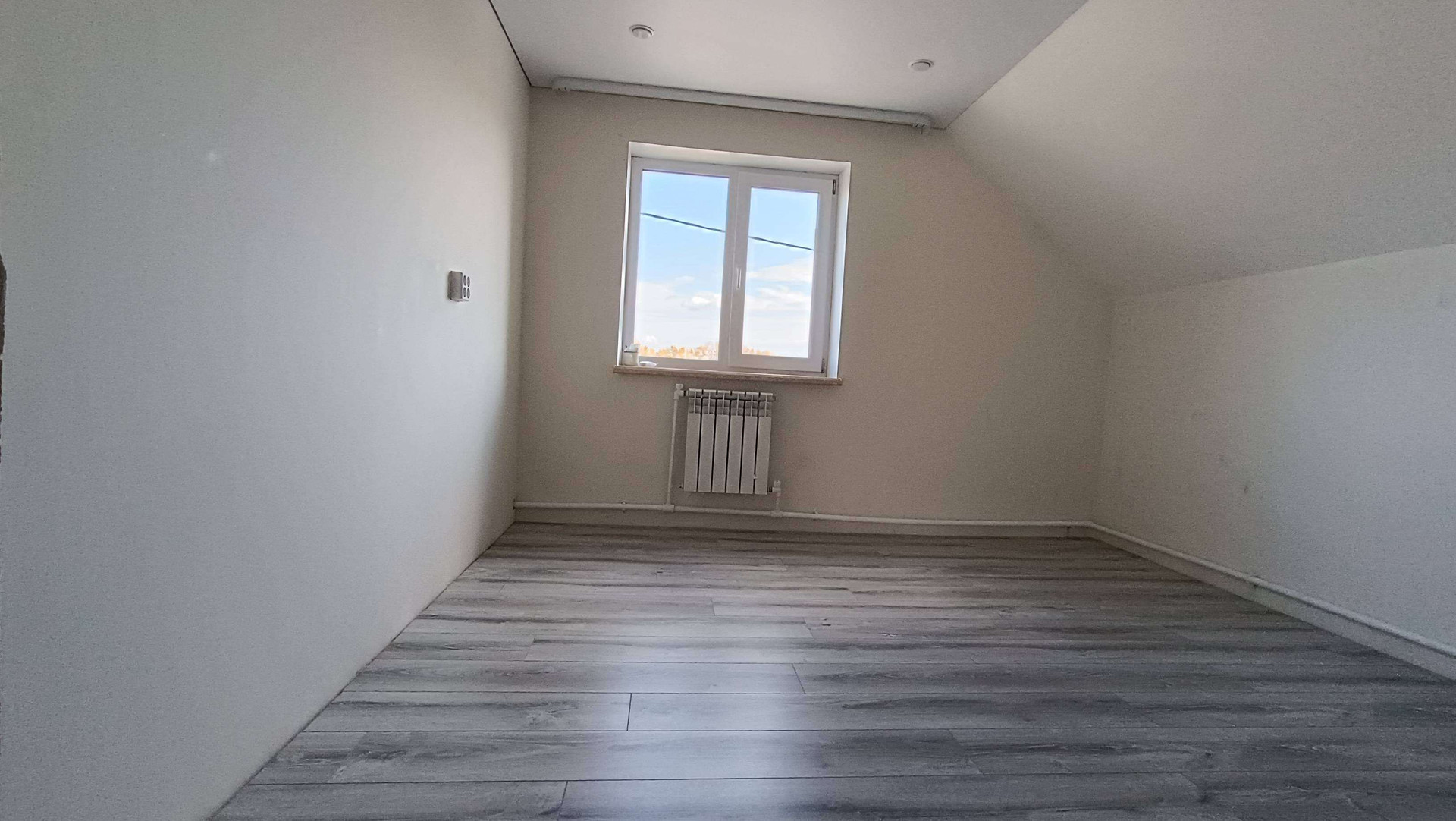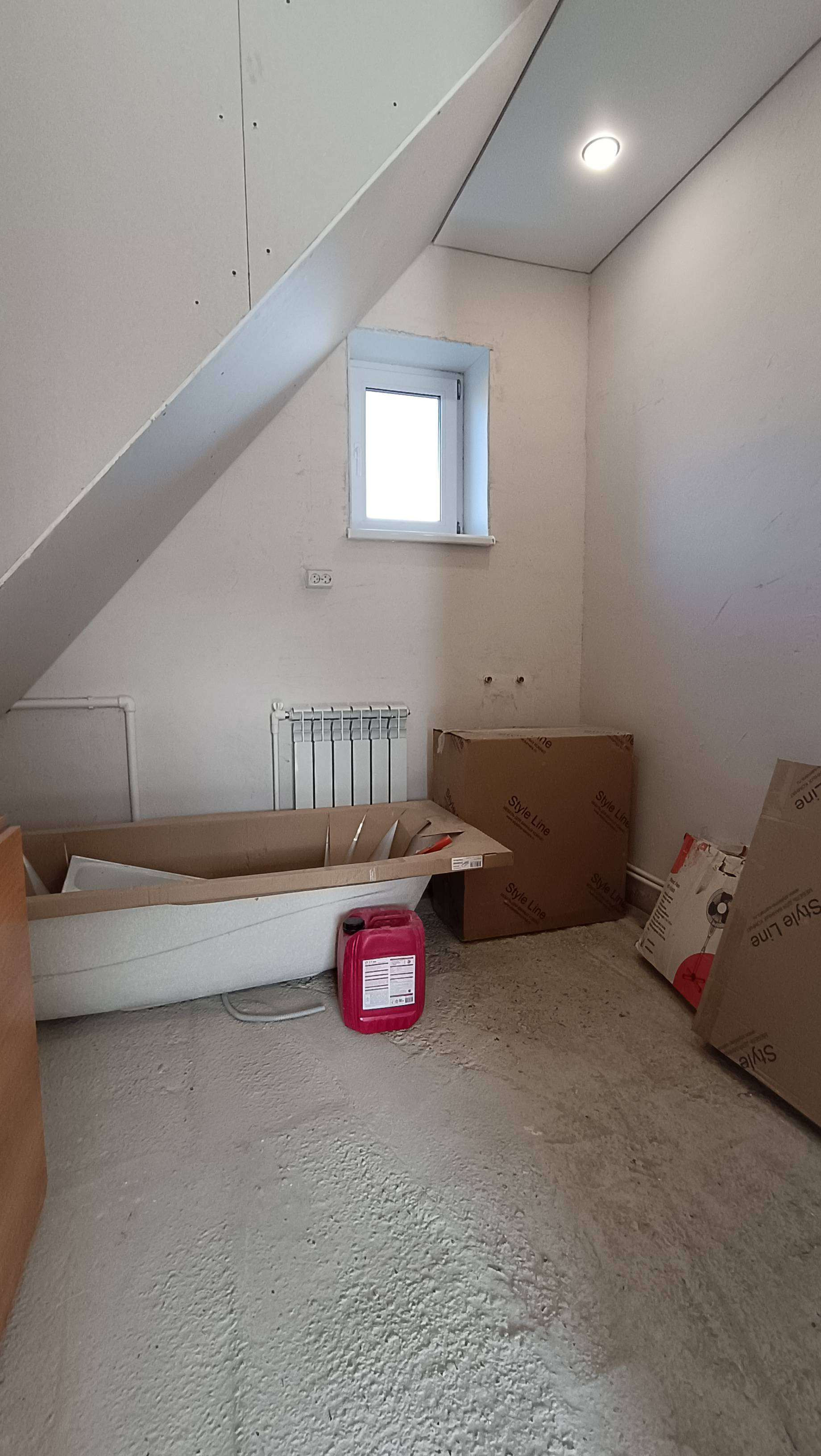 Натянуты потолки, выложен ламинат.