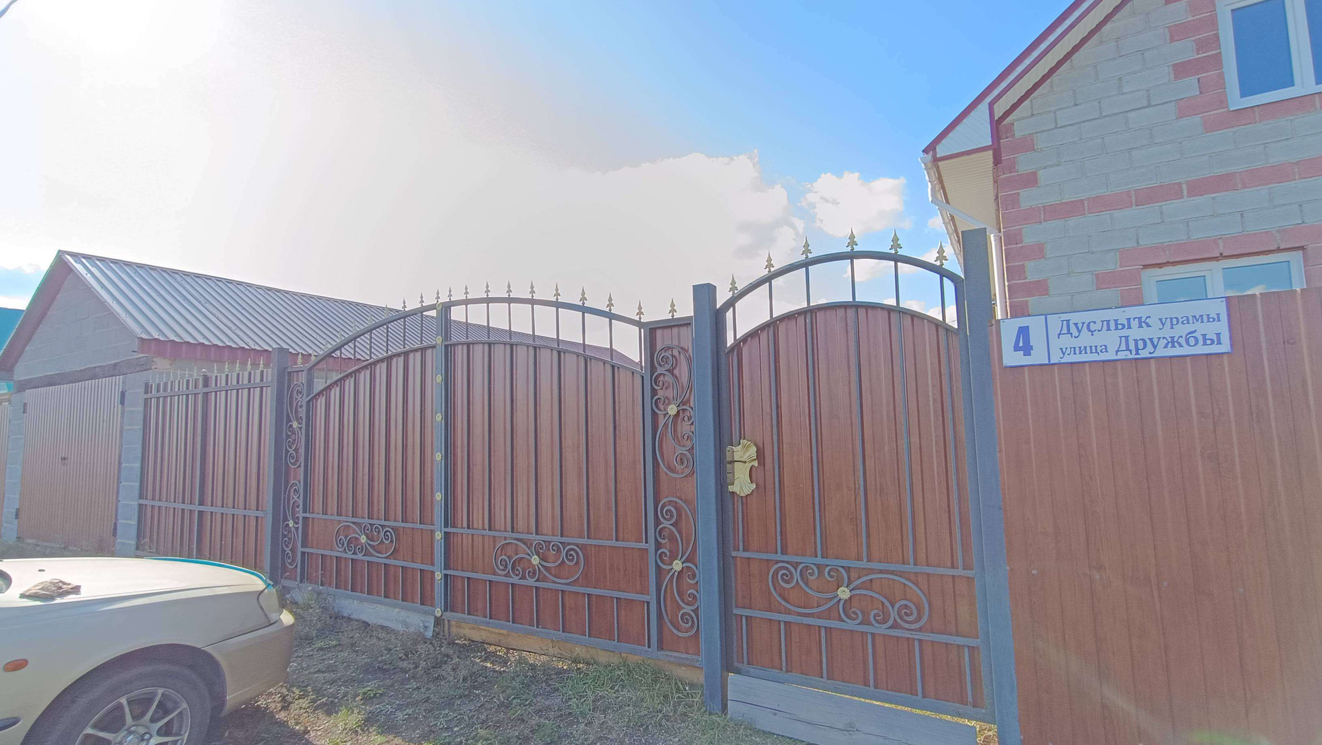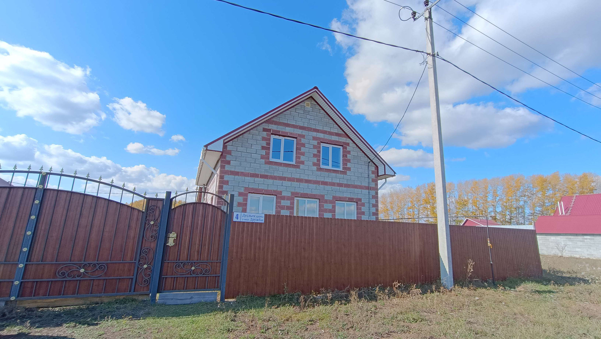 Полностью огорожен новым профлистом, кованые ворота.