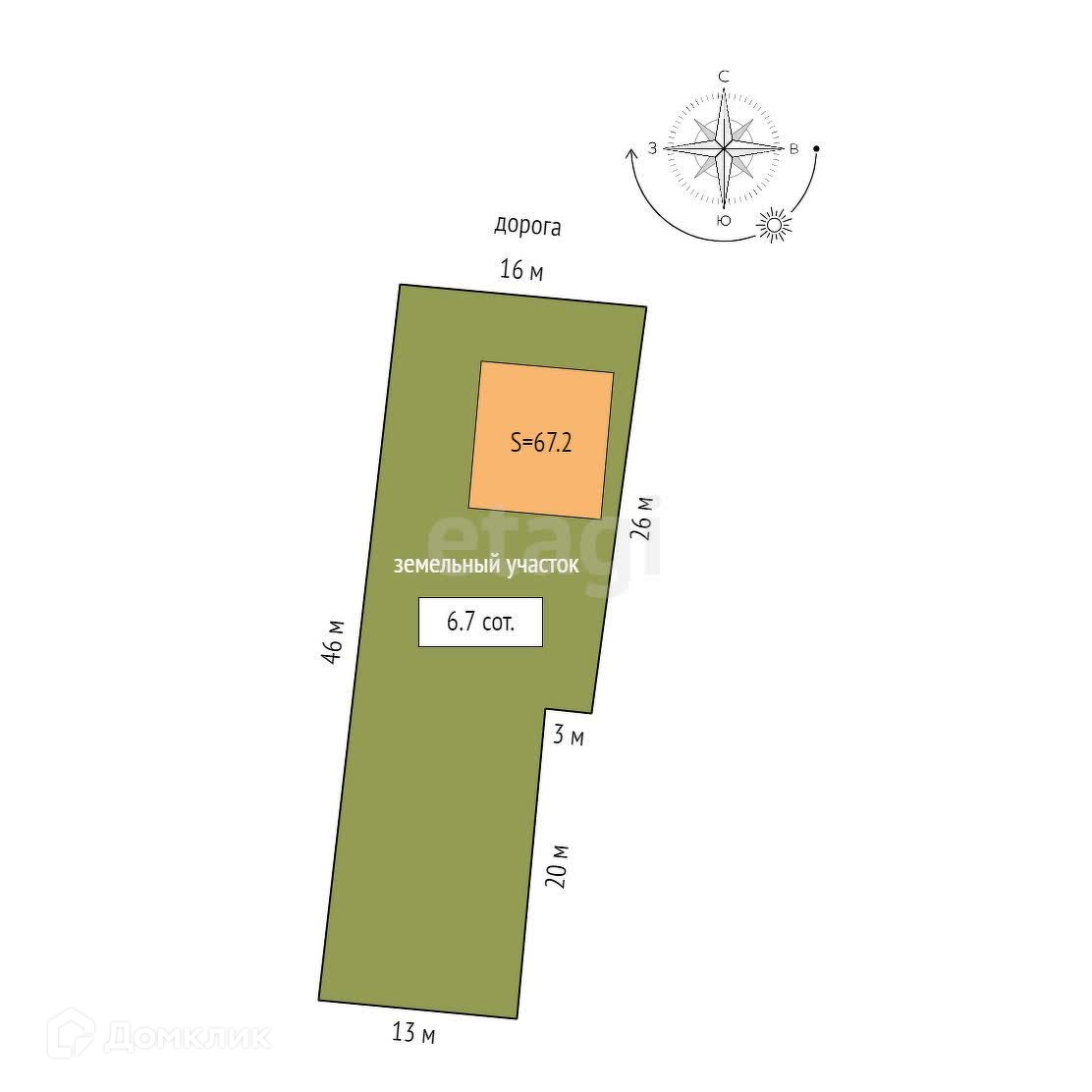 Площадь участка 6.7 сот.