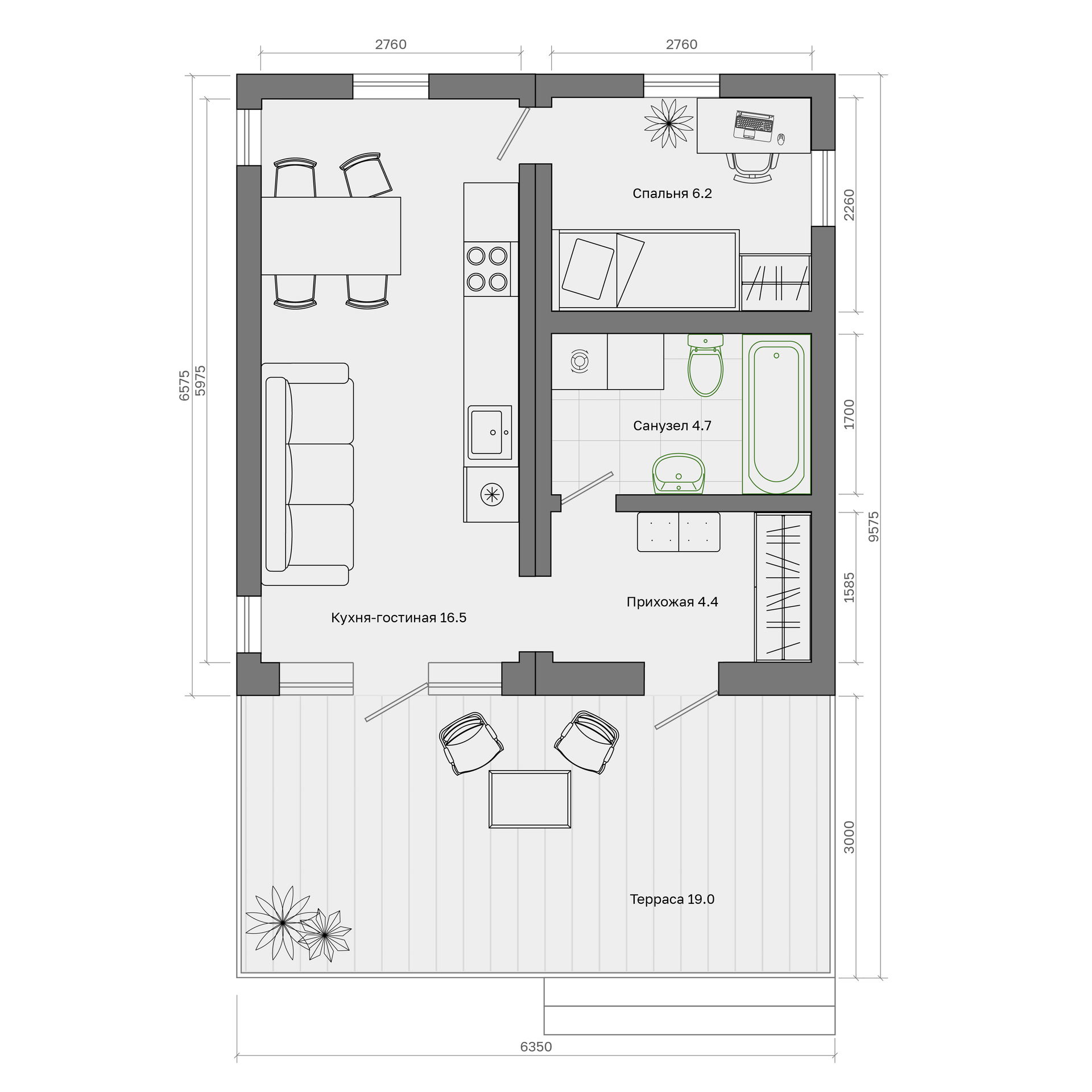 Конструктив, утепление и отделка выполнены из профессиональных материалов: