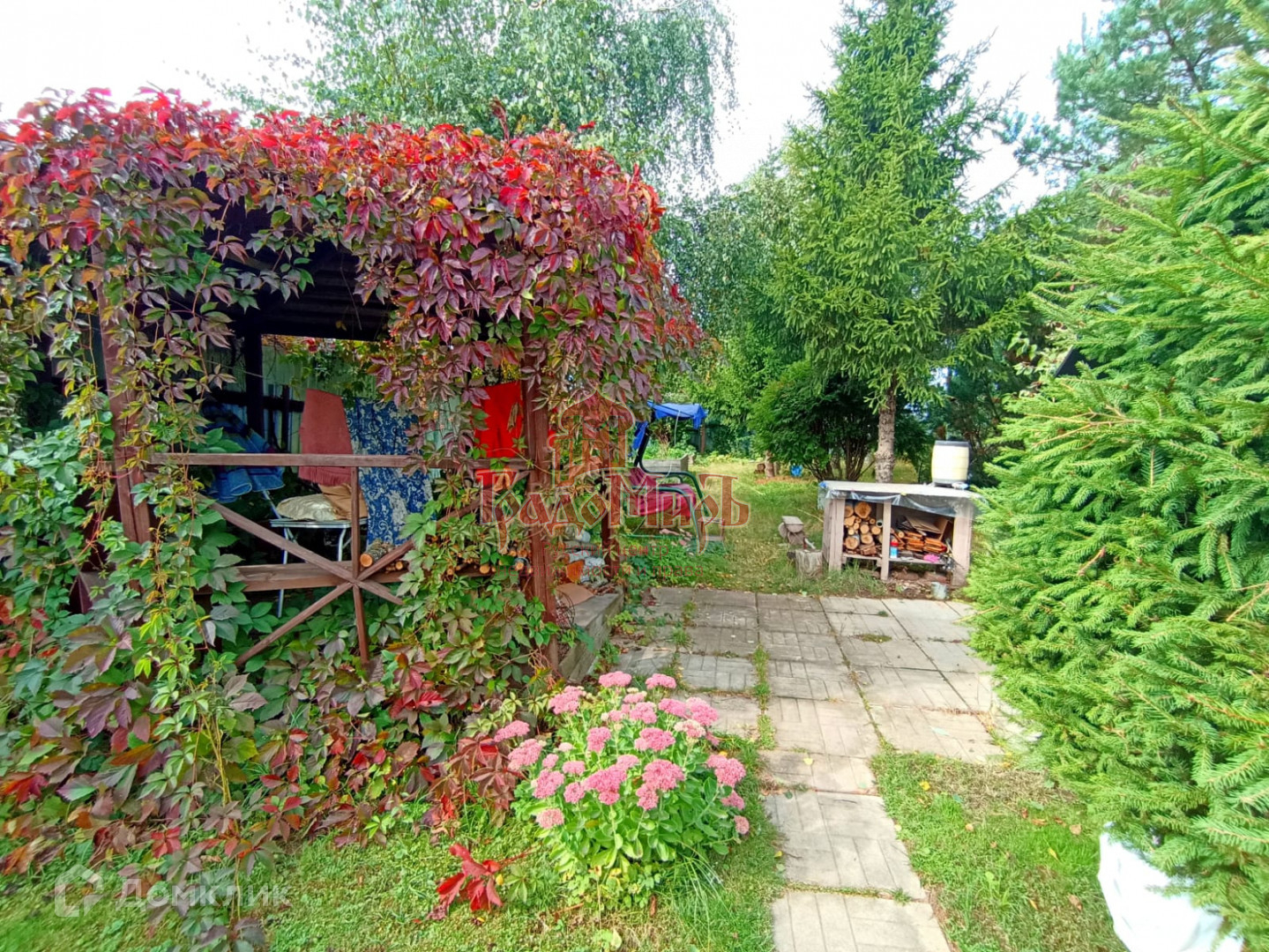 На участке большой гараж с воротами рольставни, высокие потолки позволяют загнать практически любой автомобиль. В гараж заведено электричество. Так же на участке стоит хоз. постройка, беседка и много плодово-ягодных и многолетних растений, цветов и кустарников, сосны, ели . Участок очень зеленый и ухоженный.