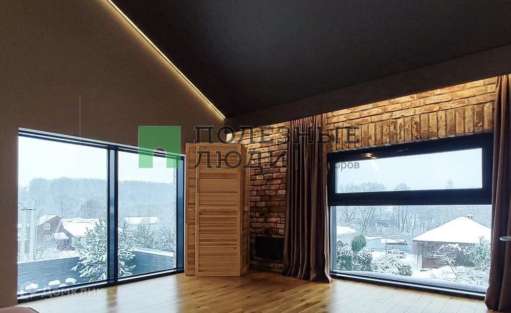 Площадь дома 157 кв. м., высота потолков от 3 до 5,5 м., большие окна с внешним затемнением.