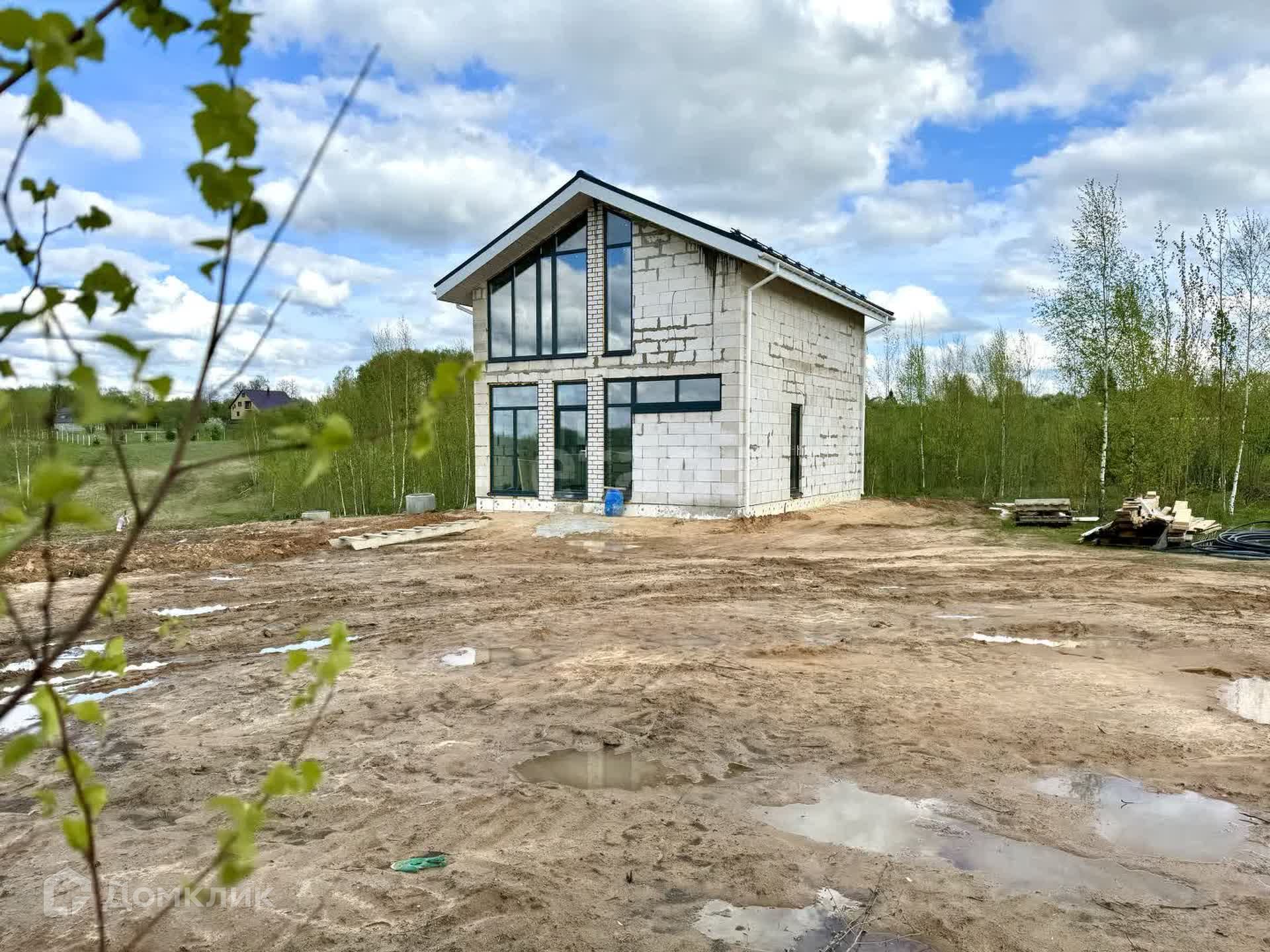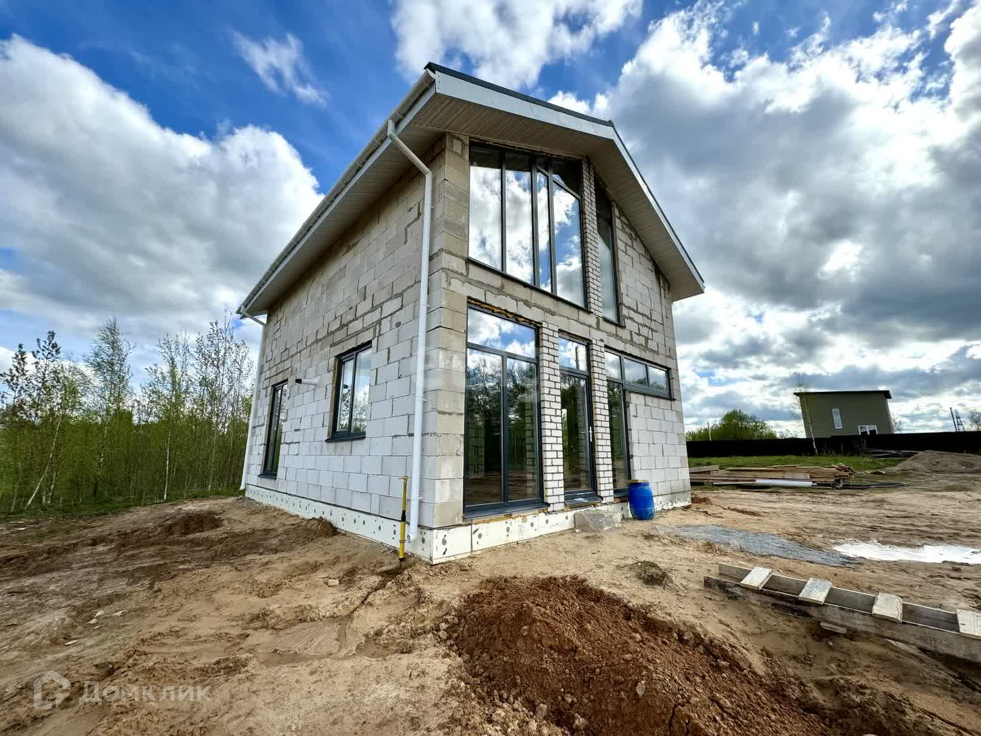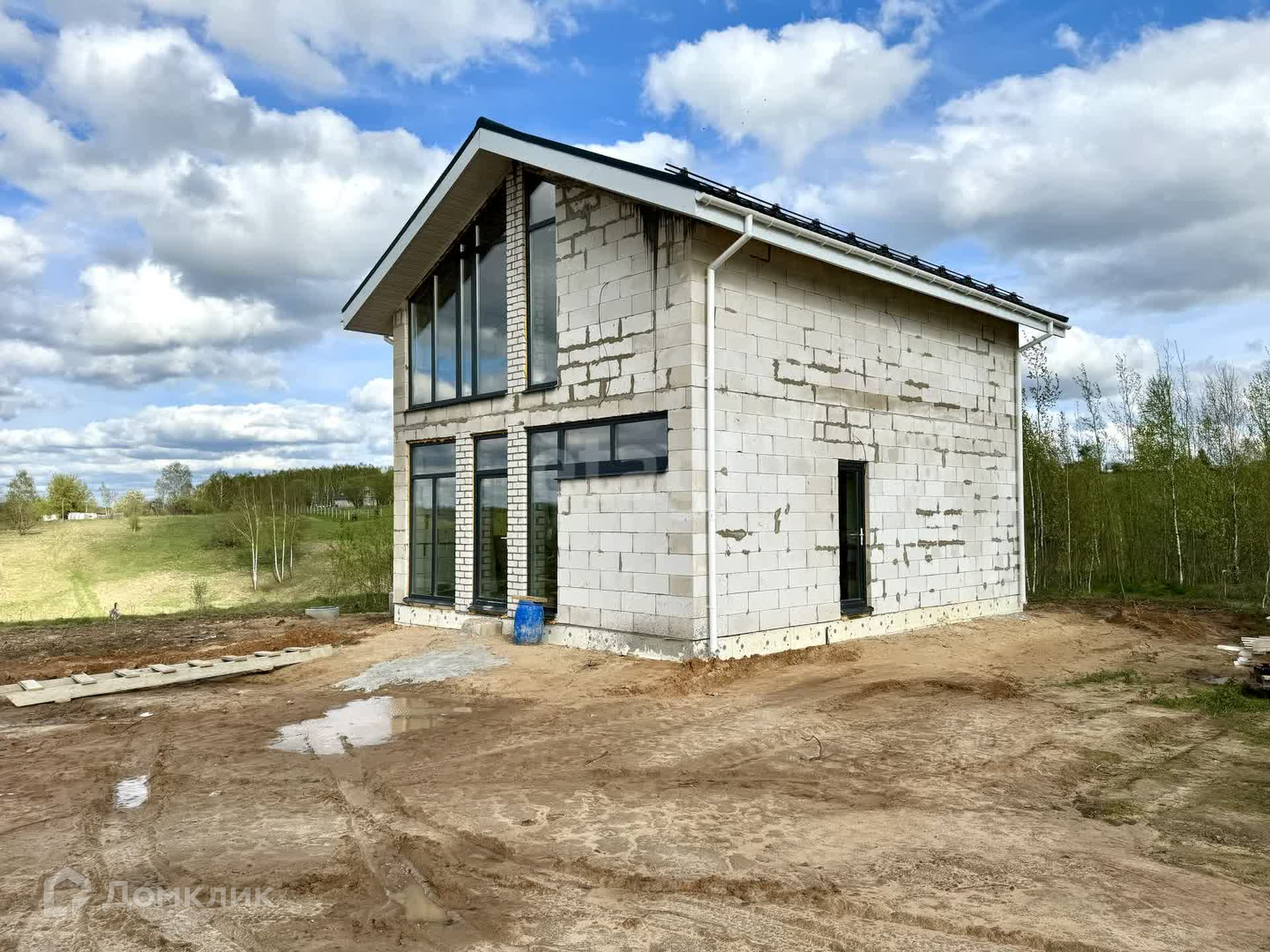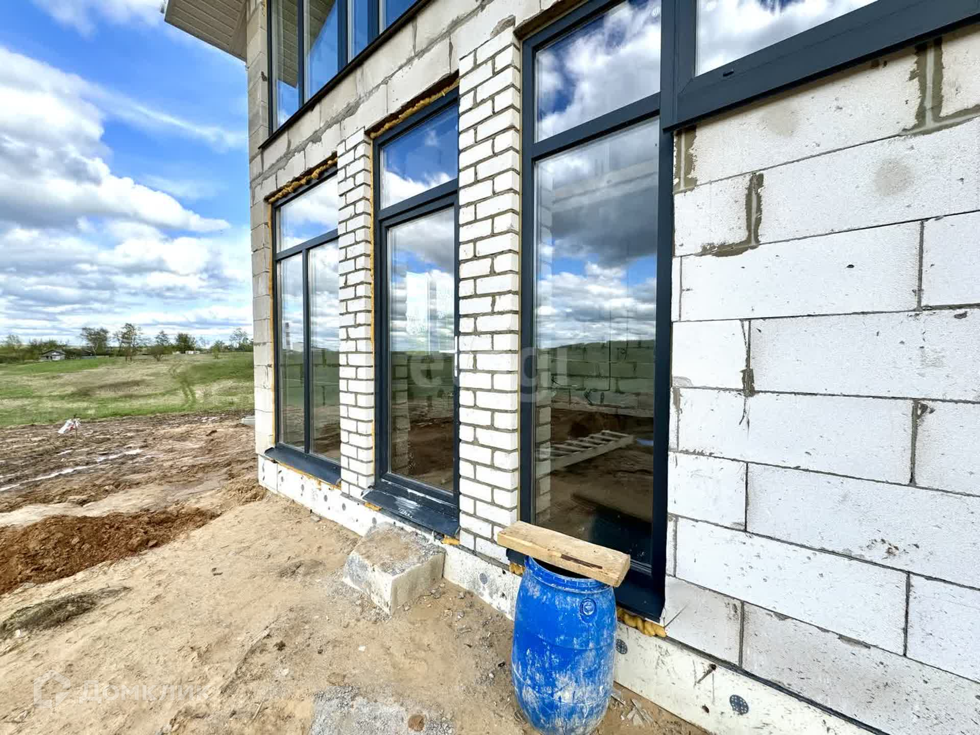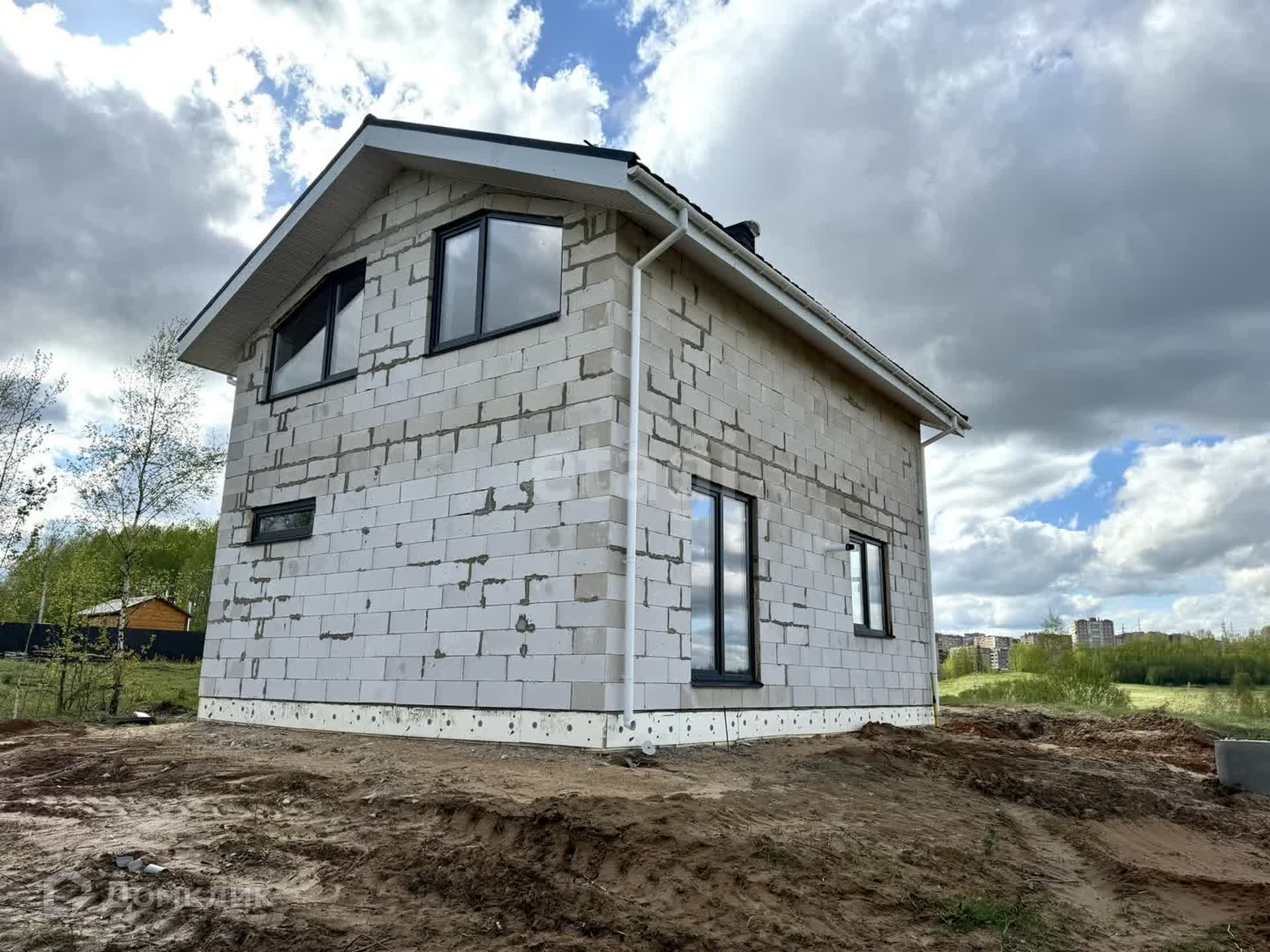 Дом построен и введен в эксплуатацию: плитный фундамент, стены пеноблок 400мм плотностью d500, плитное перекрытие этажей, 2 армопояса по всему периметру и залиты перемычки над окнами, установлены окна 70 профиль с качественной фурнитурой, крыша металлочерепица 0,5мм в цвет окон, полки подшиты, водосточная система смонтирована.