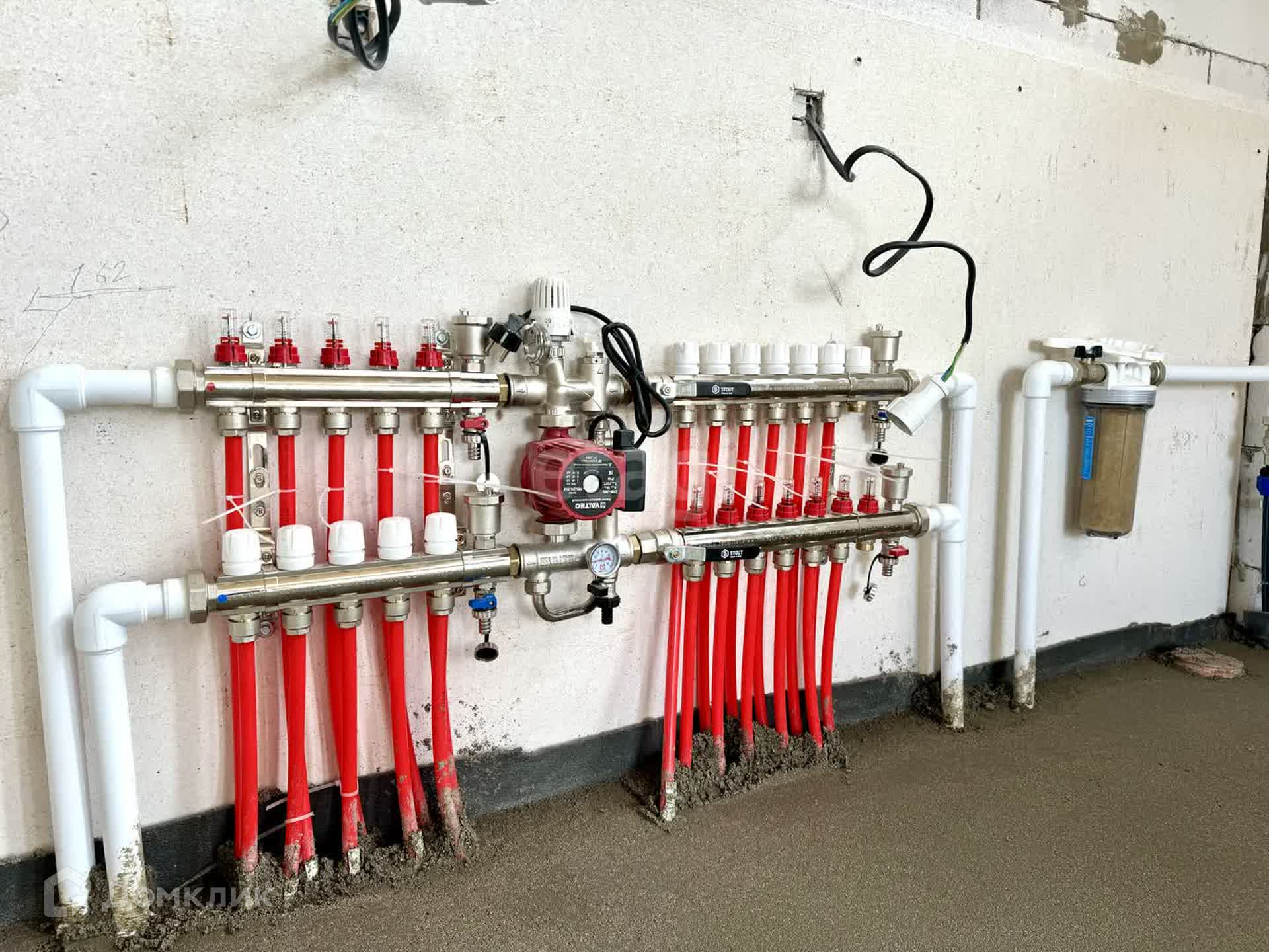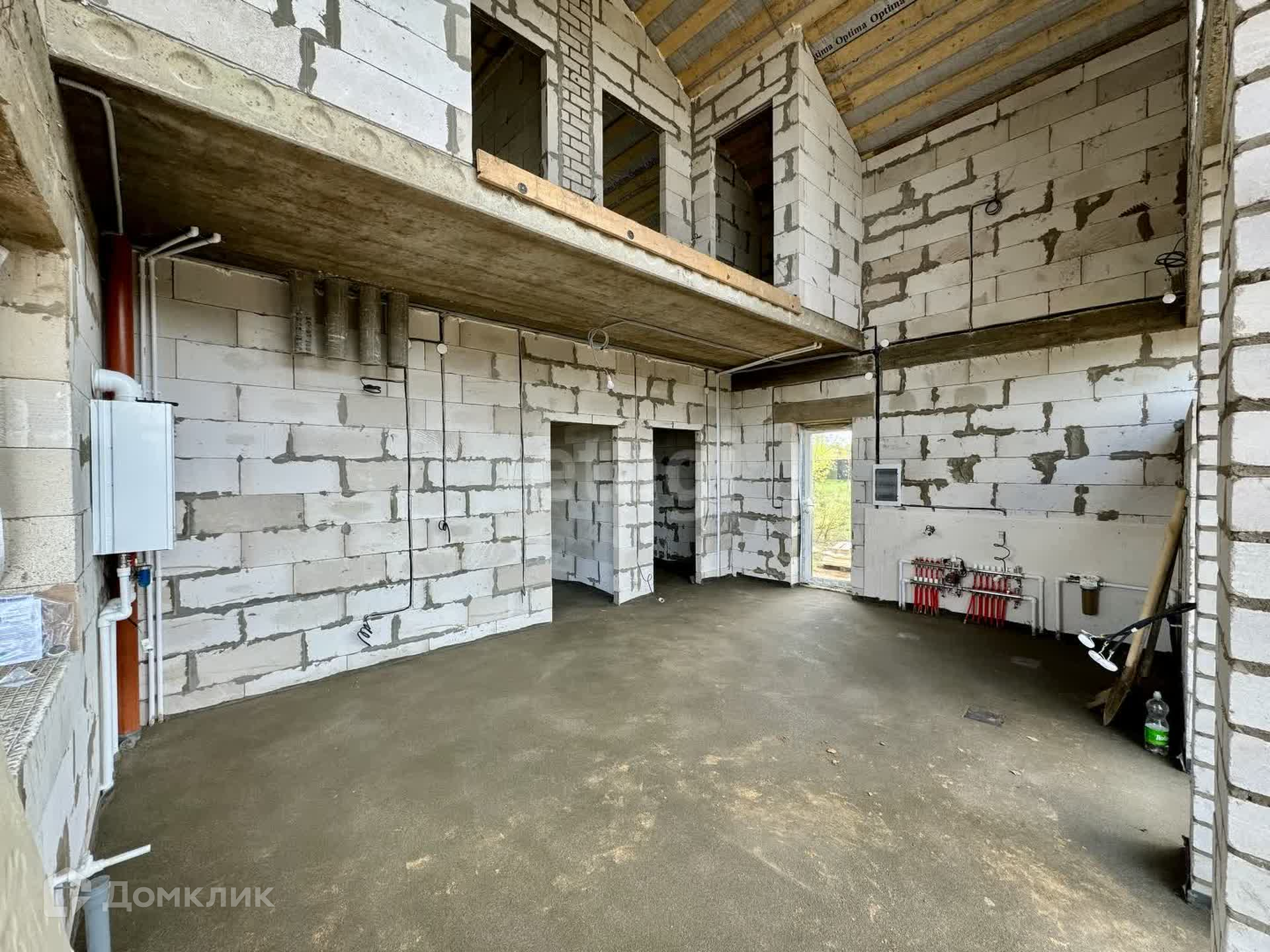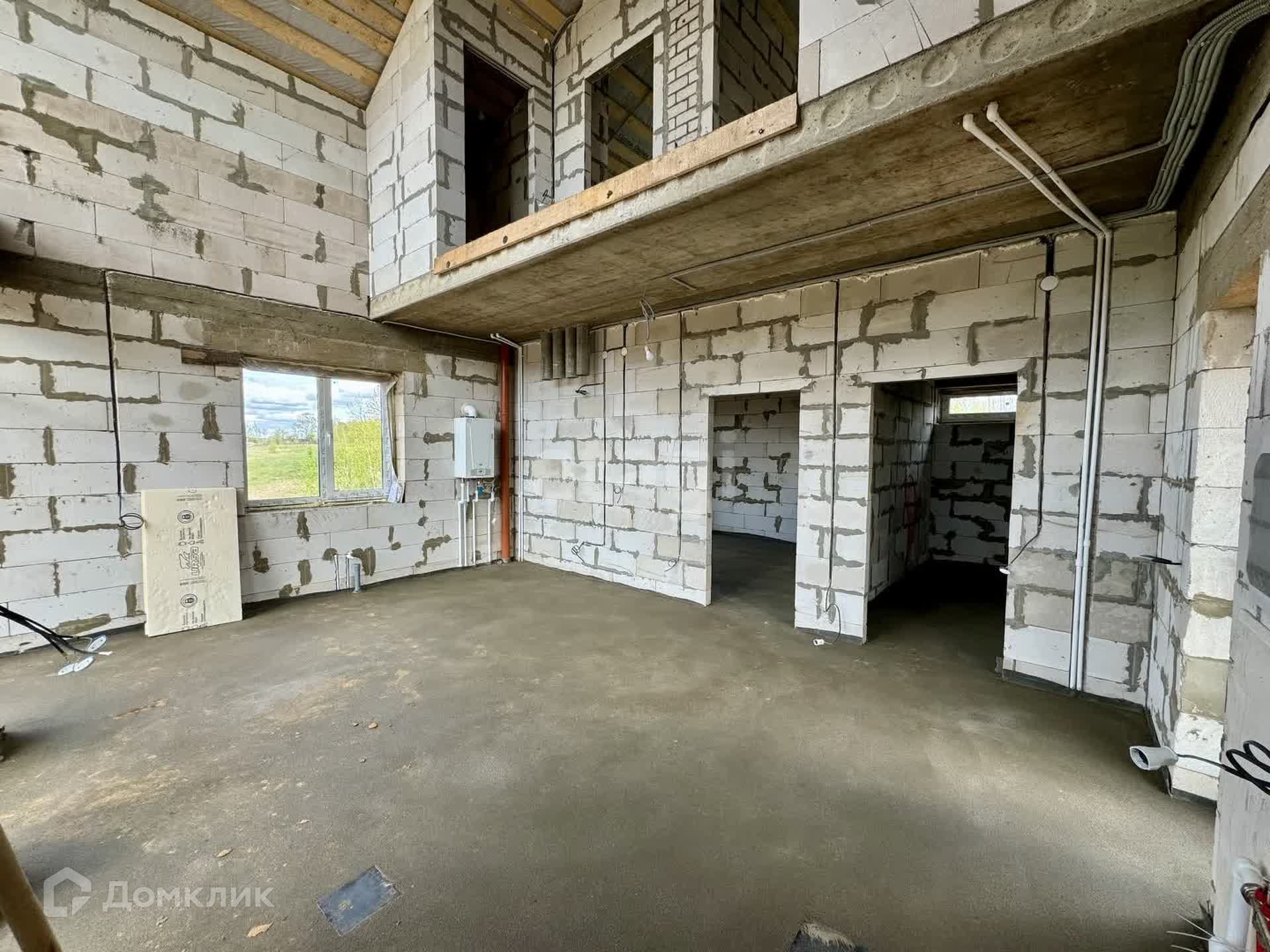 Выполнены работы: теплые полы по всему периметру первого этажа, радиаторы 2 этаж, залита сухая стяжка пола, установлен котёл BAXI 2-х контурный, разводка всех коммуникаций по дому, стены оштукатурены гипсовой штукатуркой с использованием маяков.