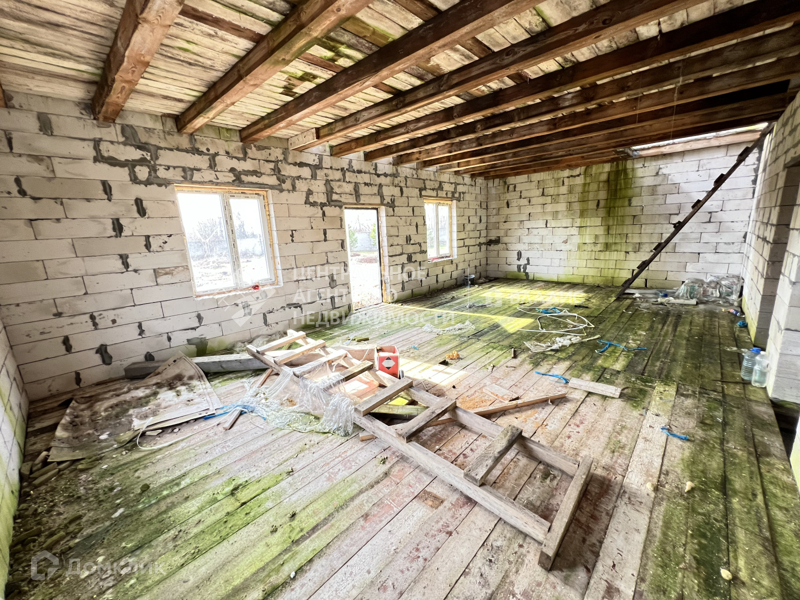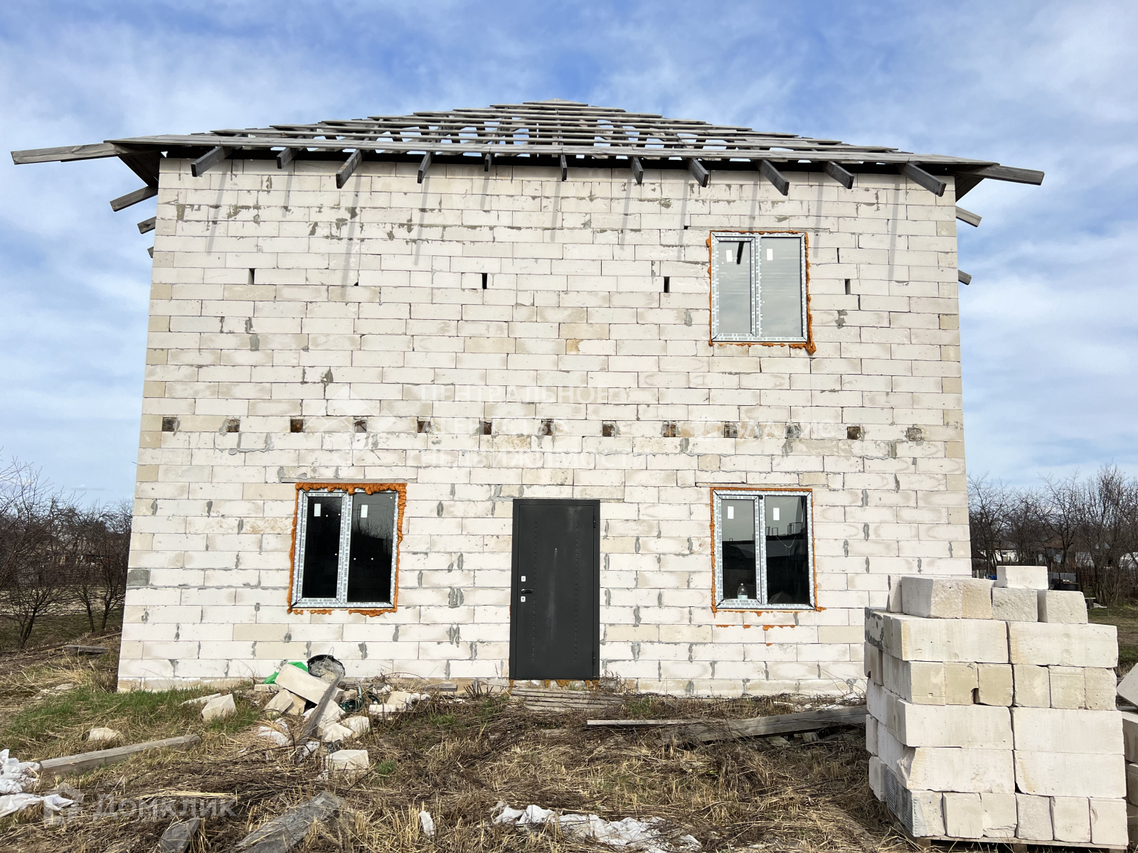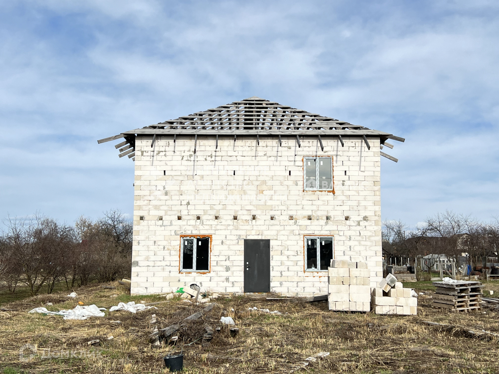 10 на 12 м, ленточный фундамент,  два этажа свободной планировки, перекрытия - брус+доска на каждом этаже,  стены - газосиликатный блок D500-625x250-200 пластиковые окна * REHAU* с двойным стеклопакетом.