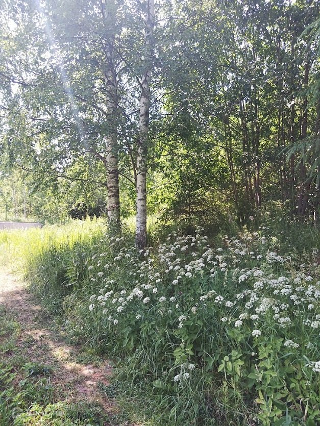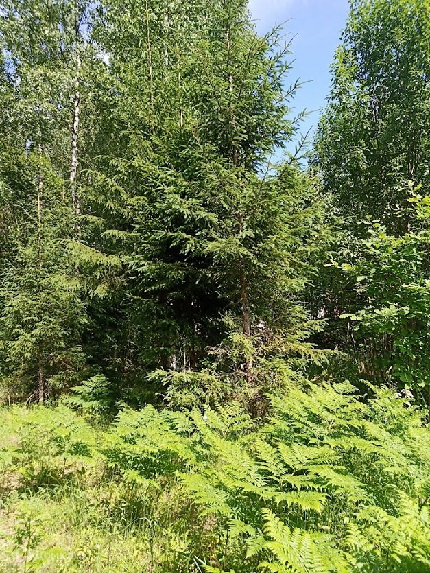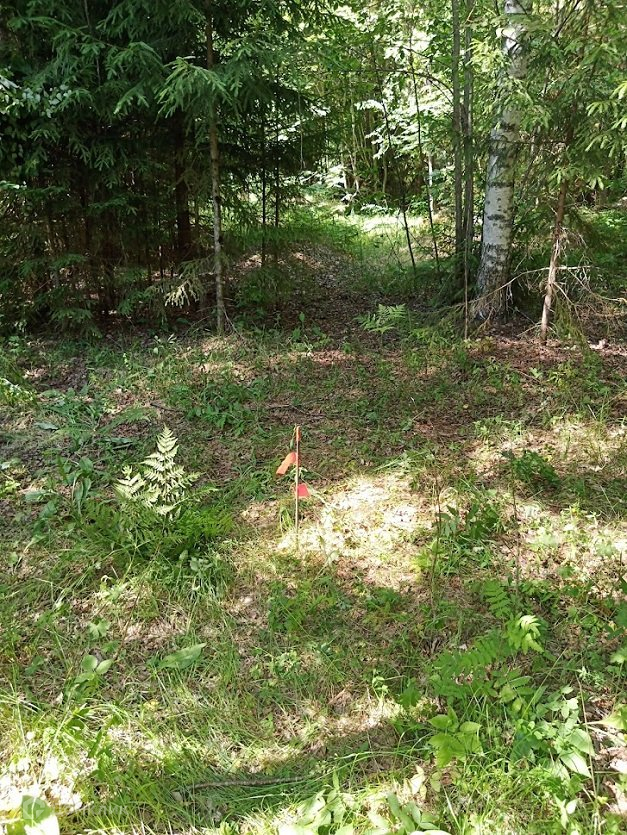 На участке сосны и березы, мелкие кустарники.
