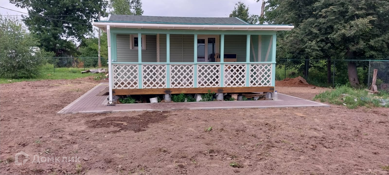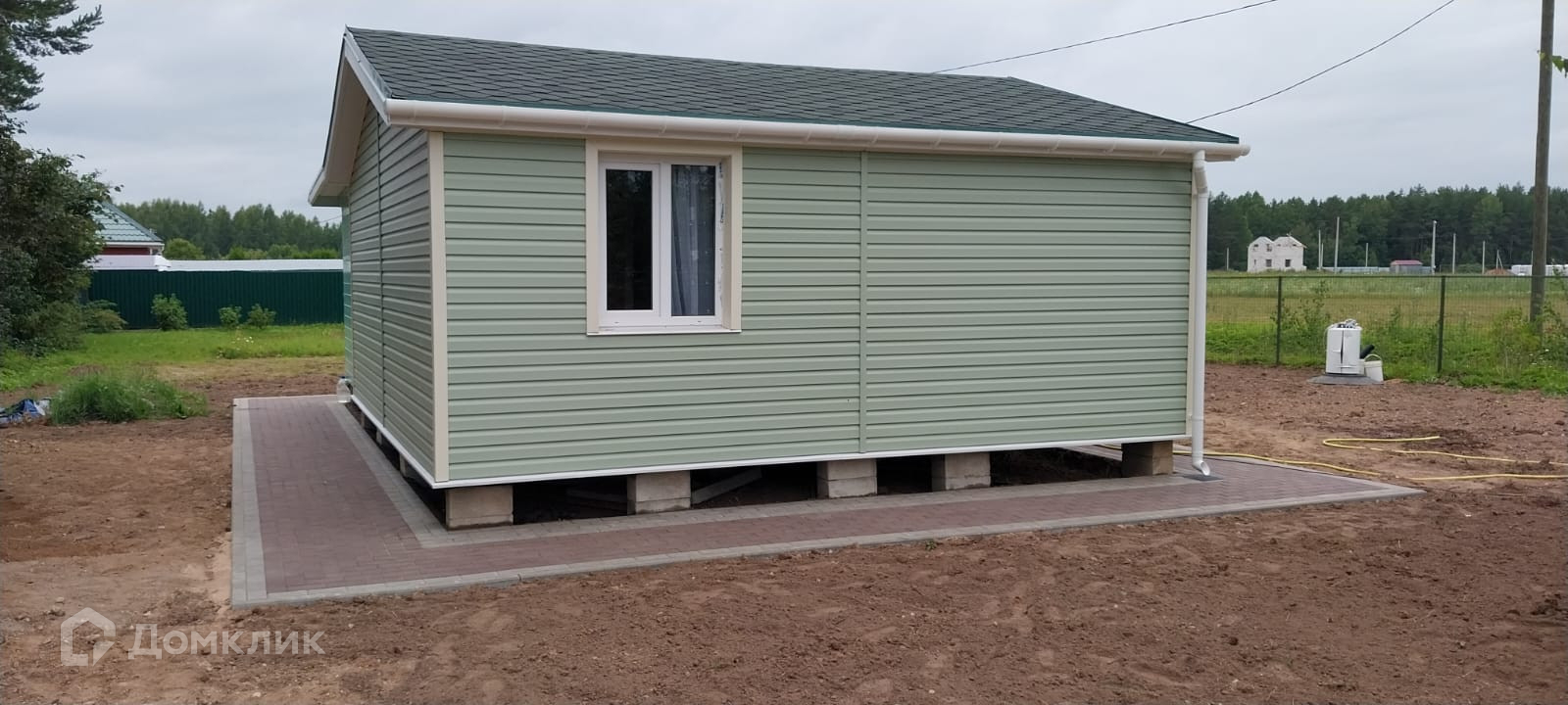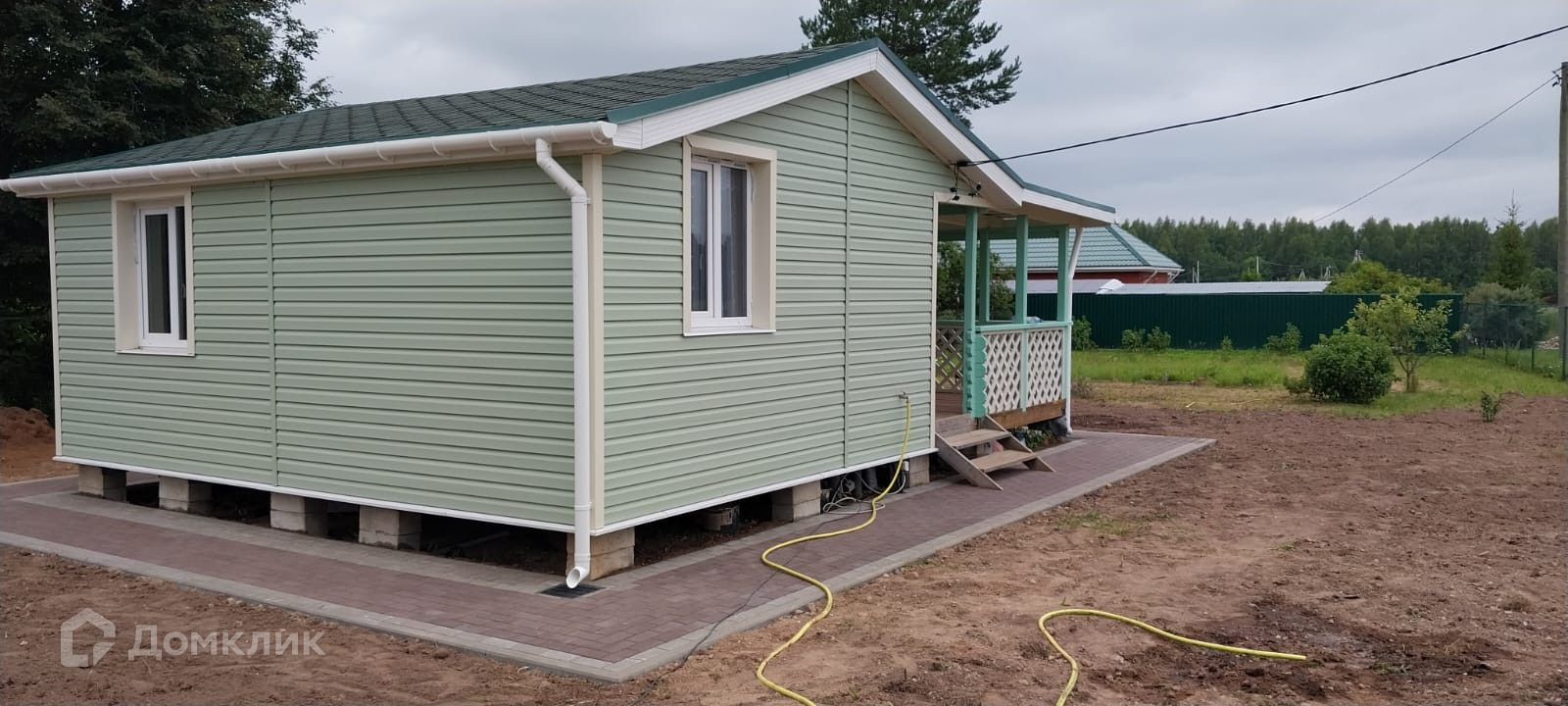 Дом установлен на бетонные сваи.