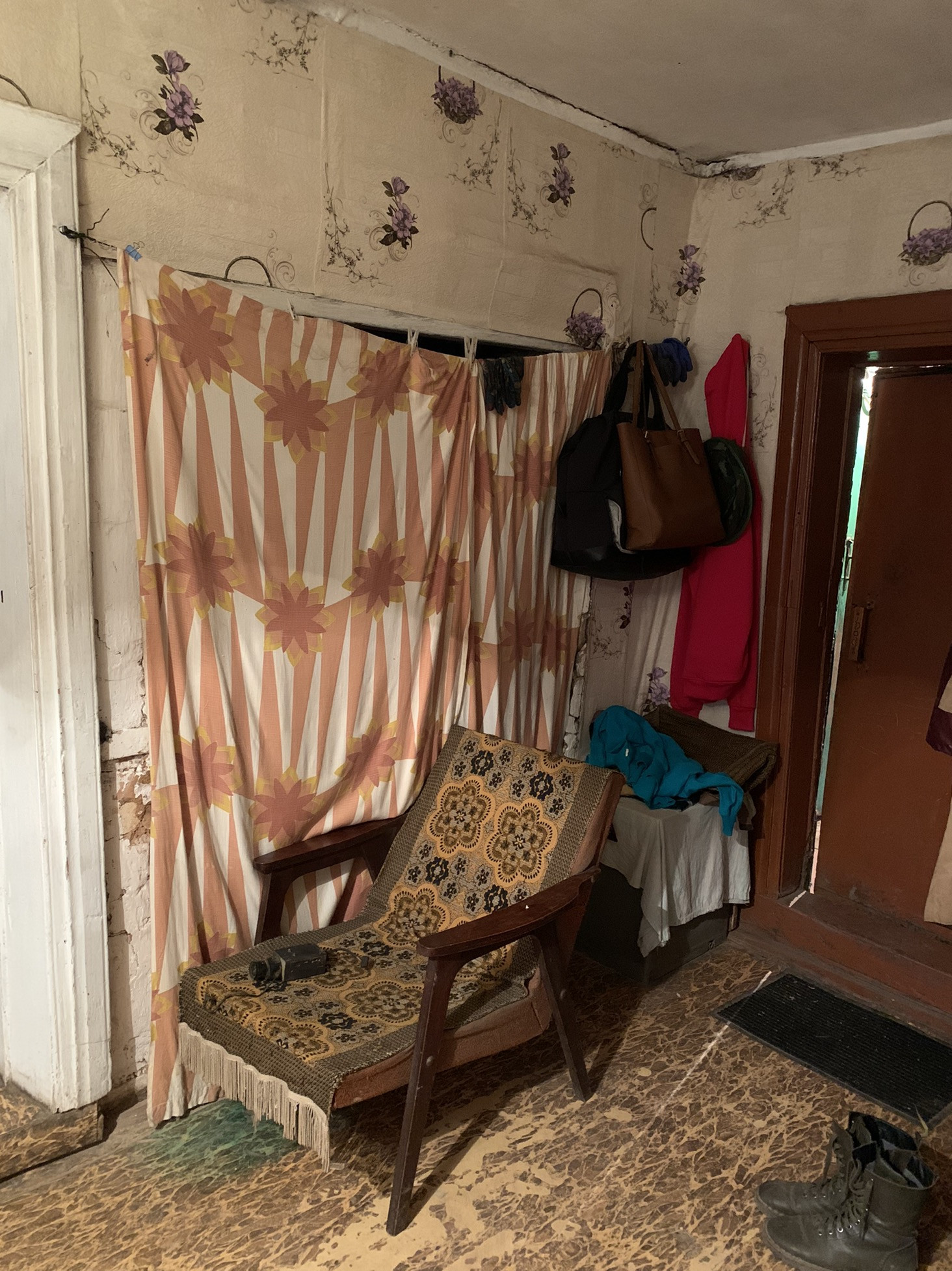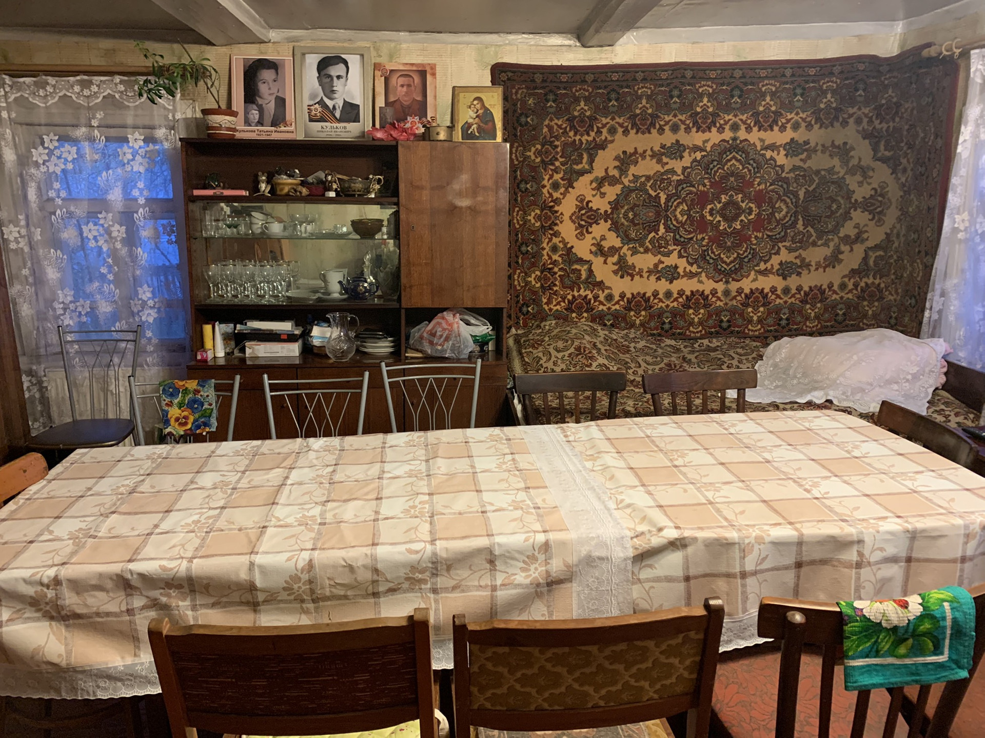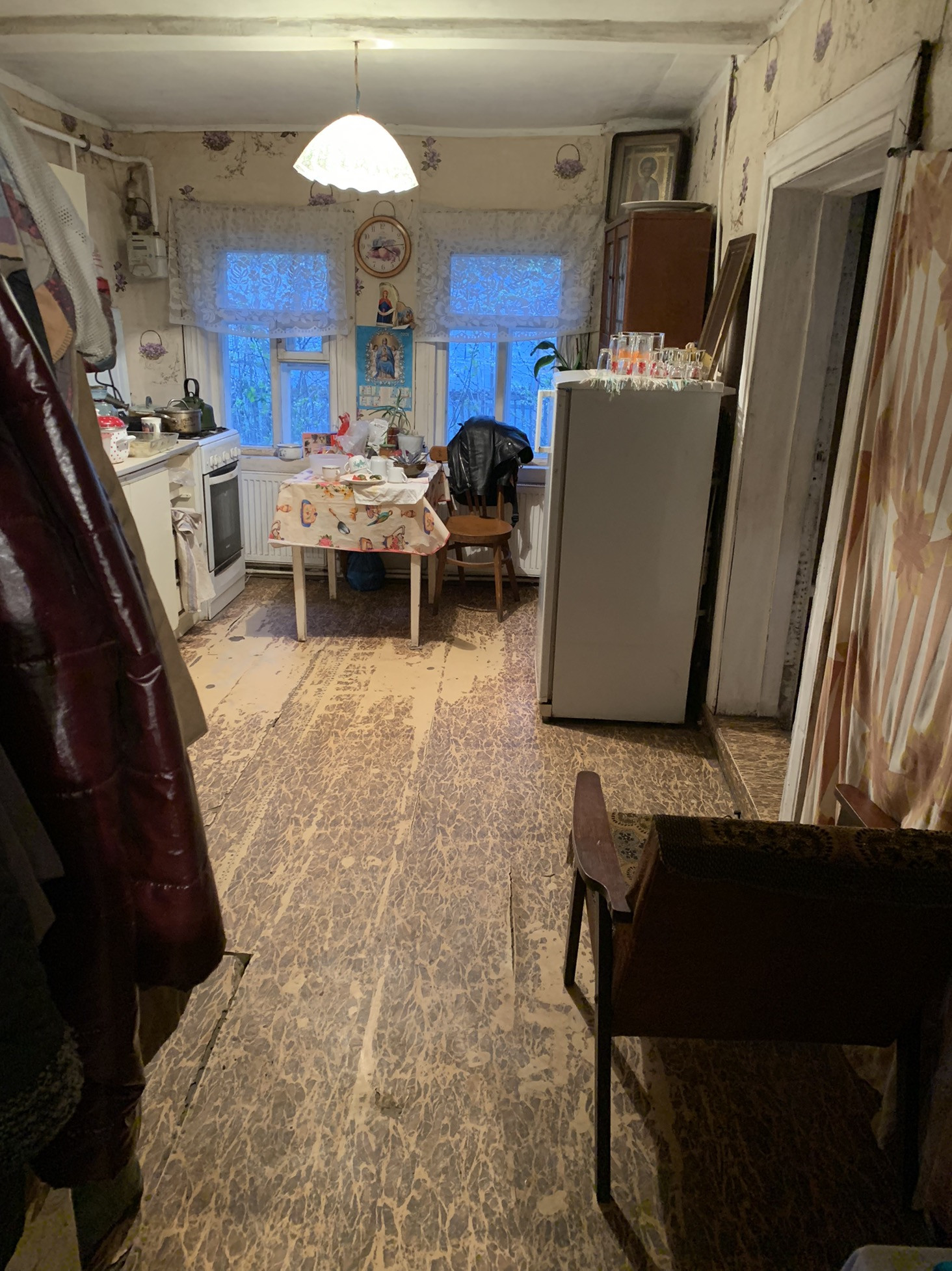 В доме также осталась печка-можно в ней готовить или использовать в качестве дополнительного средства поддержания температуры в доме как альтернативу газовому котлу.