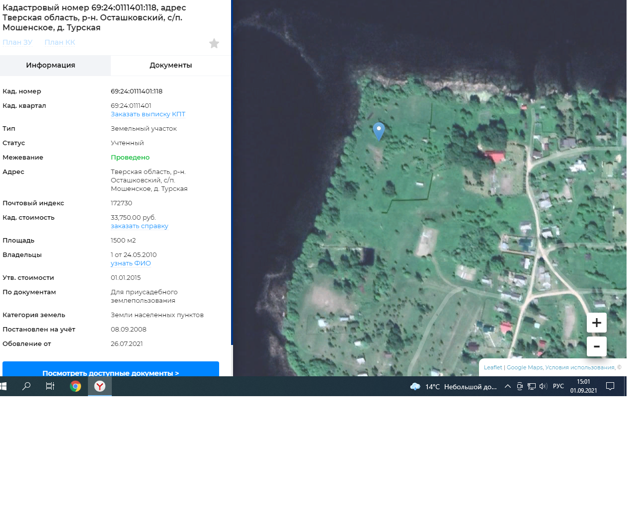 Площадь участка 15 сот.