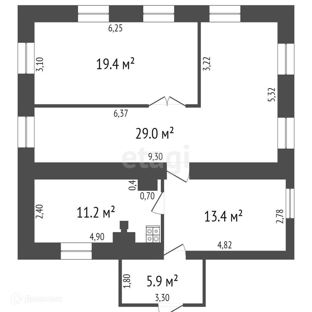 Общая площадь 59.6 м2
