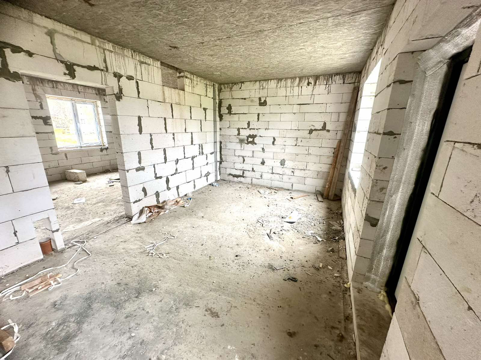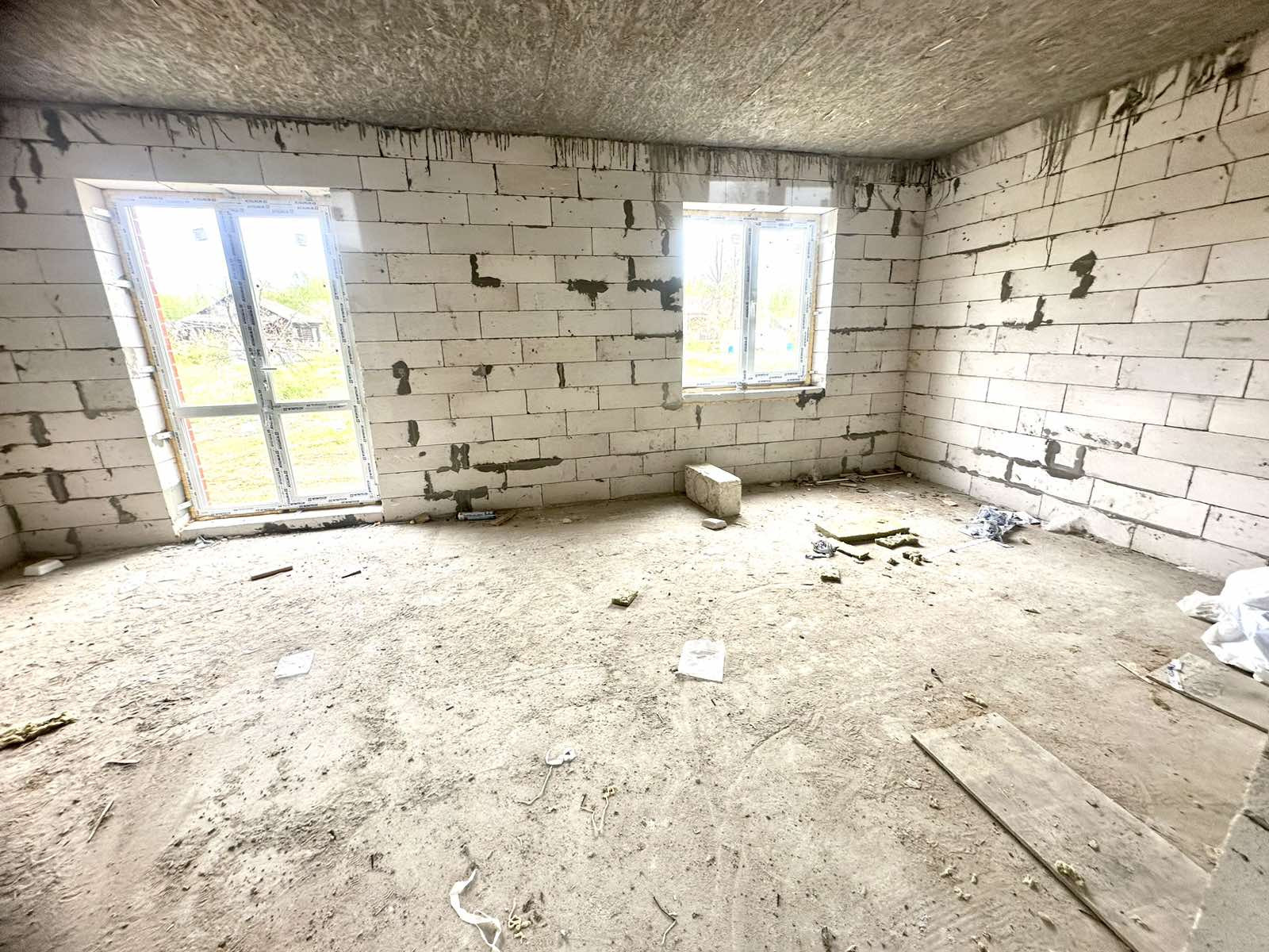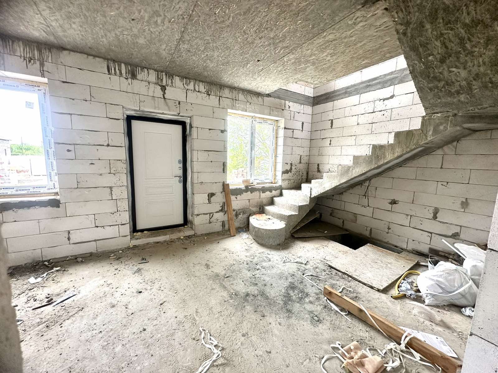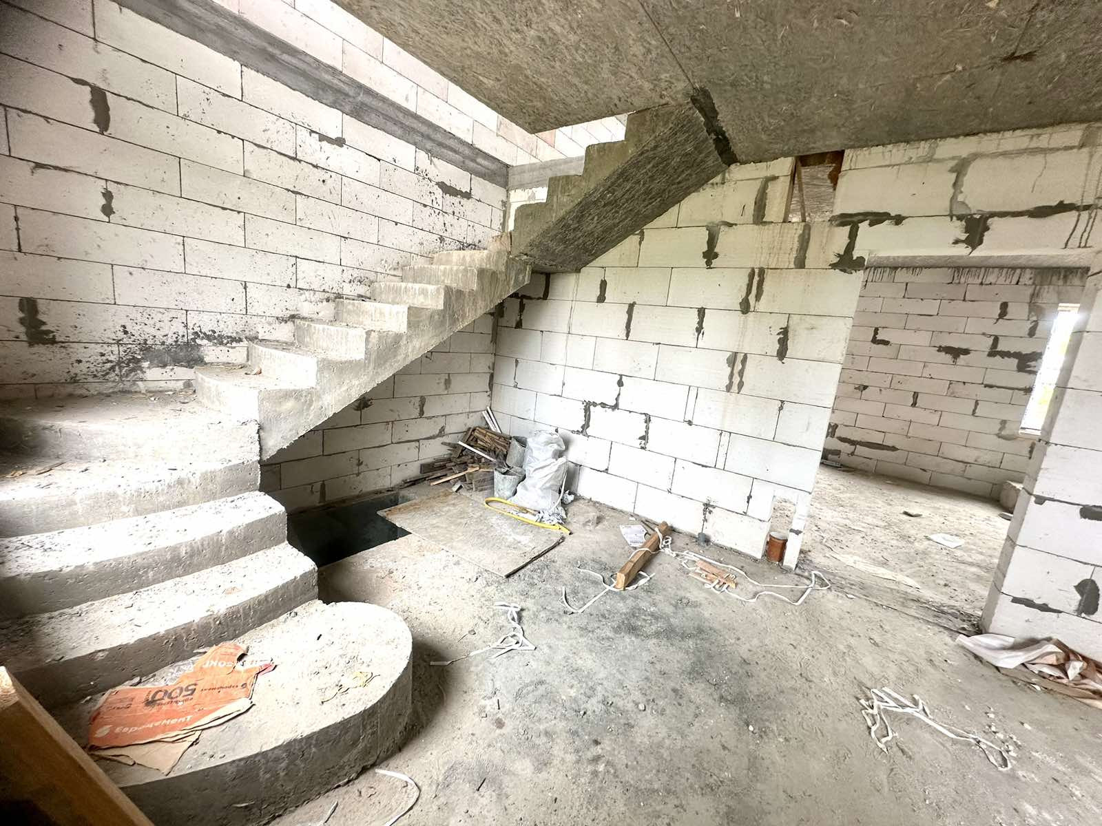 В доме 2 этажа, перекрытие монолитное, лестница тоже монолитная. В данном доме вы можете спланировать планировку для себя! На первом этаже по плану кухня-гостинная, сан узел, холл. На втором этаже спальные комнаты, сан узел. Все коммуникации заложены. К дому можно пристроить входную группу, гараж, веранду. Участок прямоугольной формы.