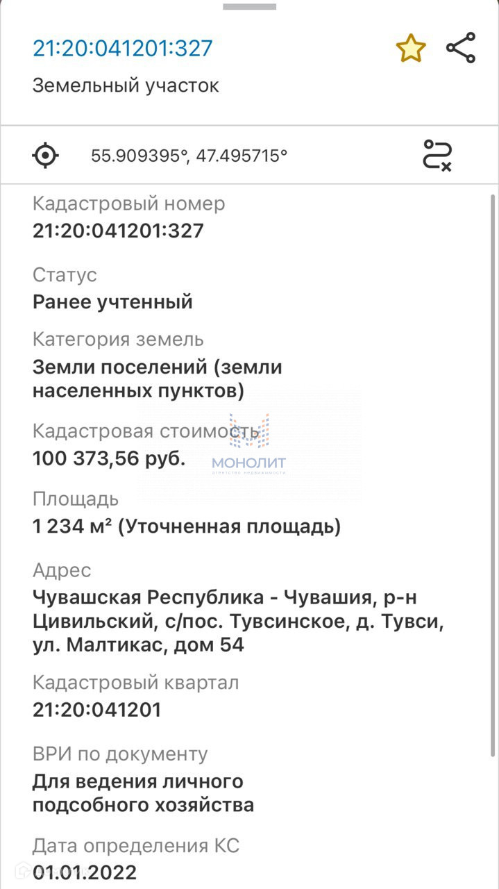 Кадастровый № участка 21:20:041201:327.