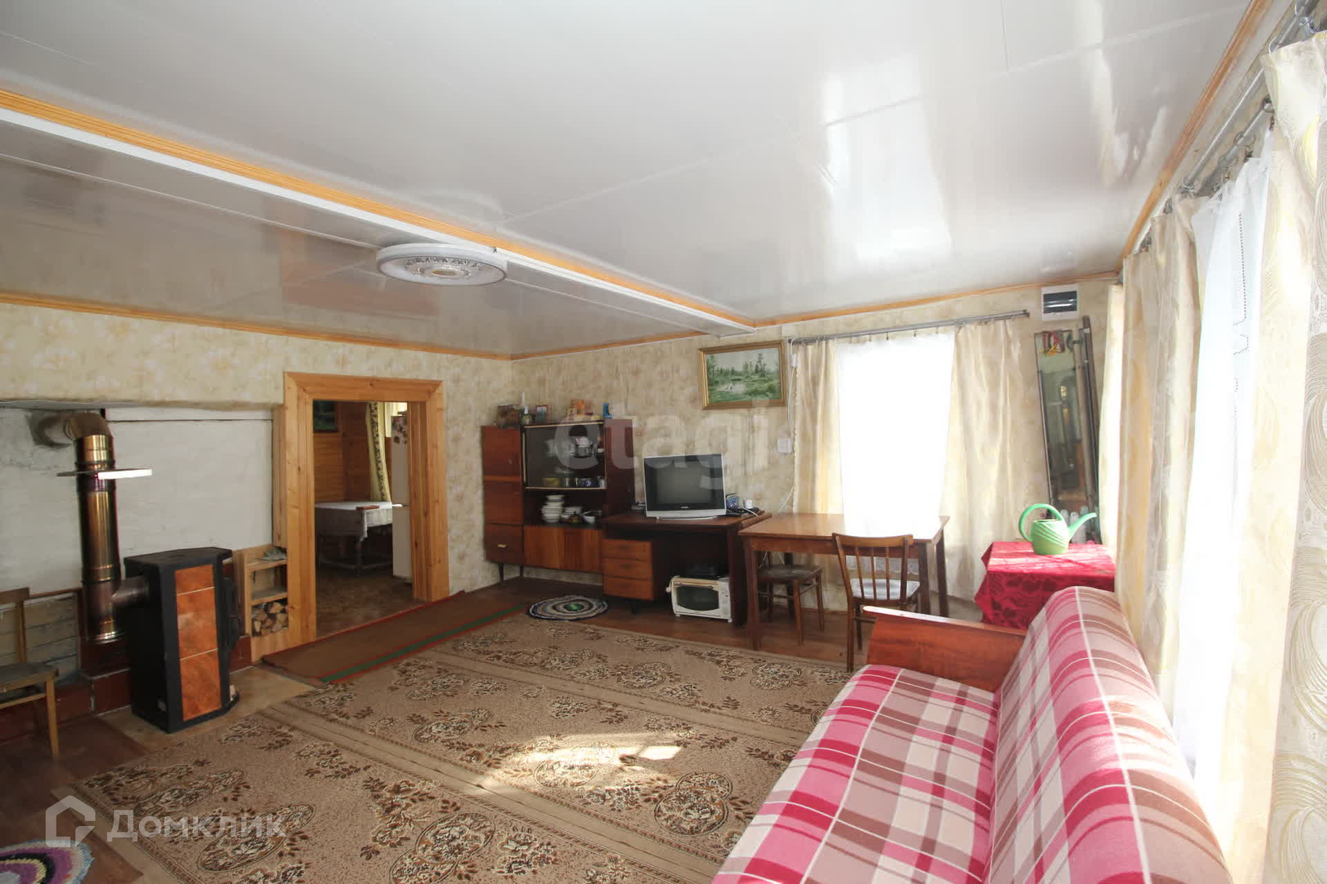 Дом бревенчатый обшит вагонкой, установлен на ленточном фундаменте, новая веранда (фундамент - тумбы), крыша металлическая заменена 2 года назад, окна ПВХ. В дом заведено электричество,своя скважина на участке вода подается в дом насосом, отопление печное. На участке установлена баня.