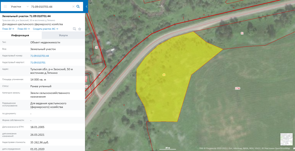 - кадастровый номер - 71:09:010701:44
