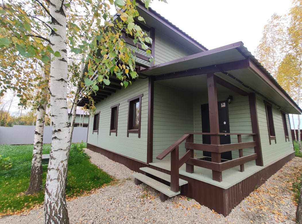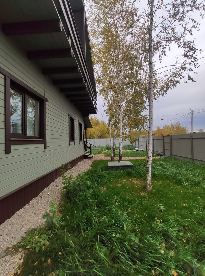 Дом удачно расположен на территории поселка, на тихой улочке в стороне от основного массива домов, в окружении леса.