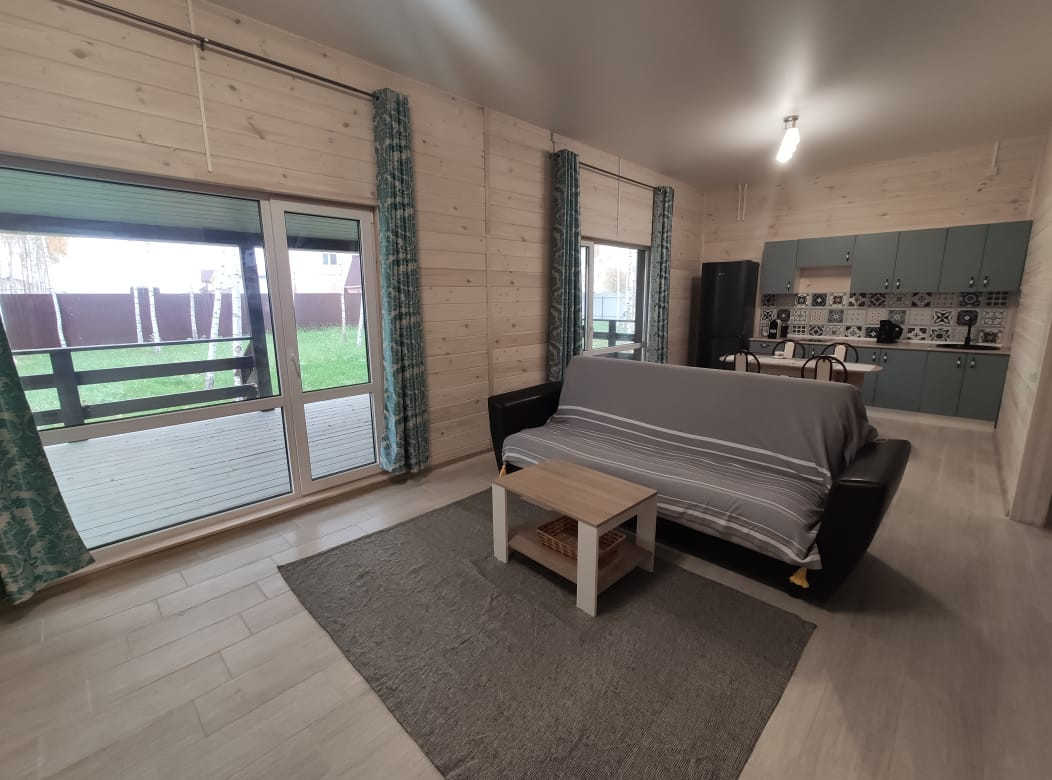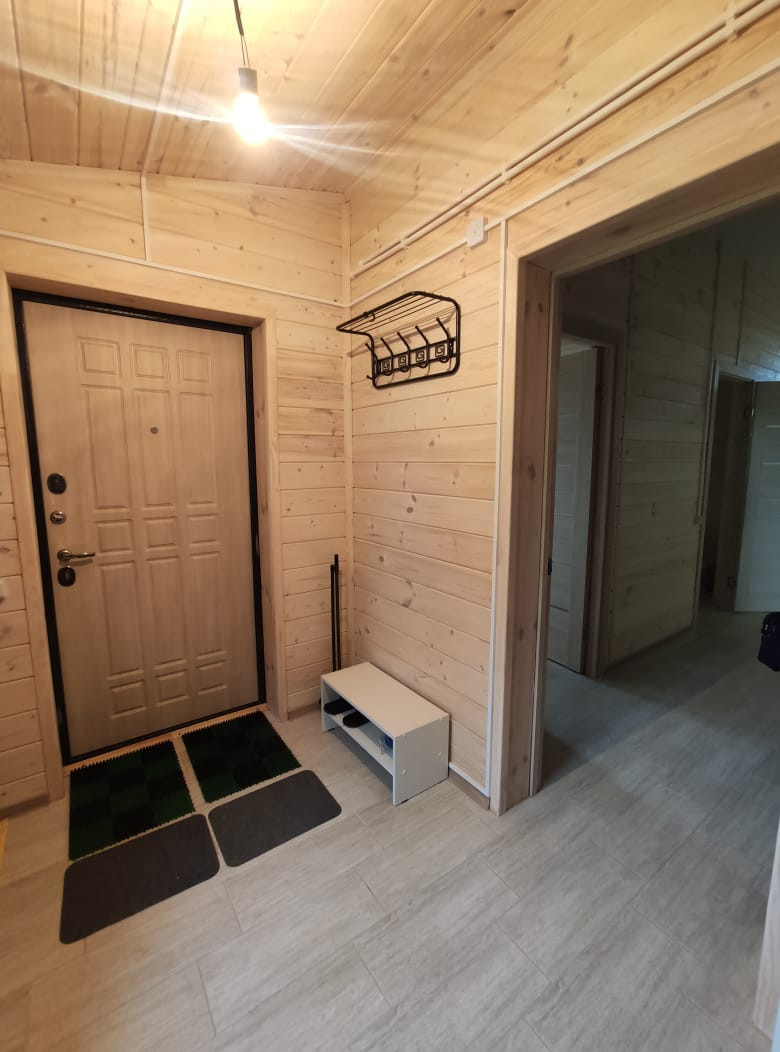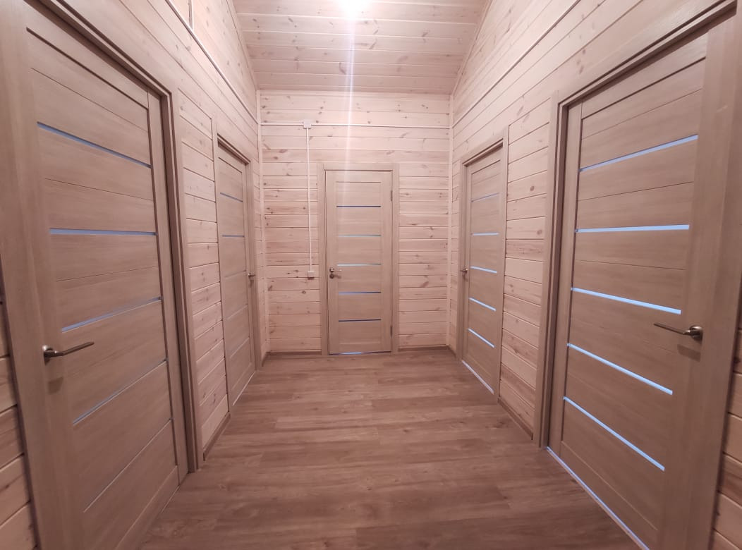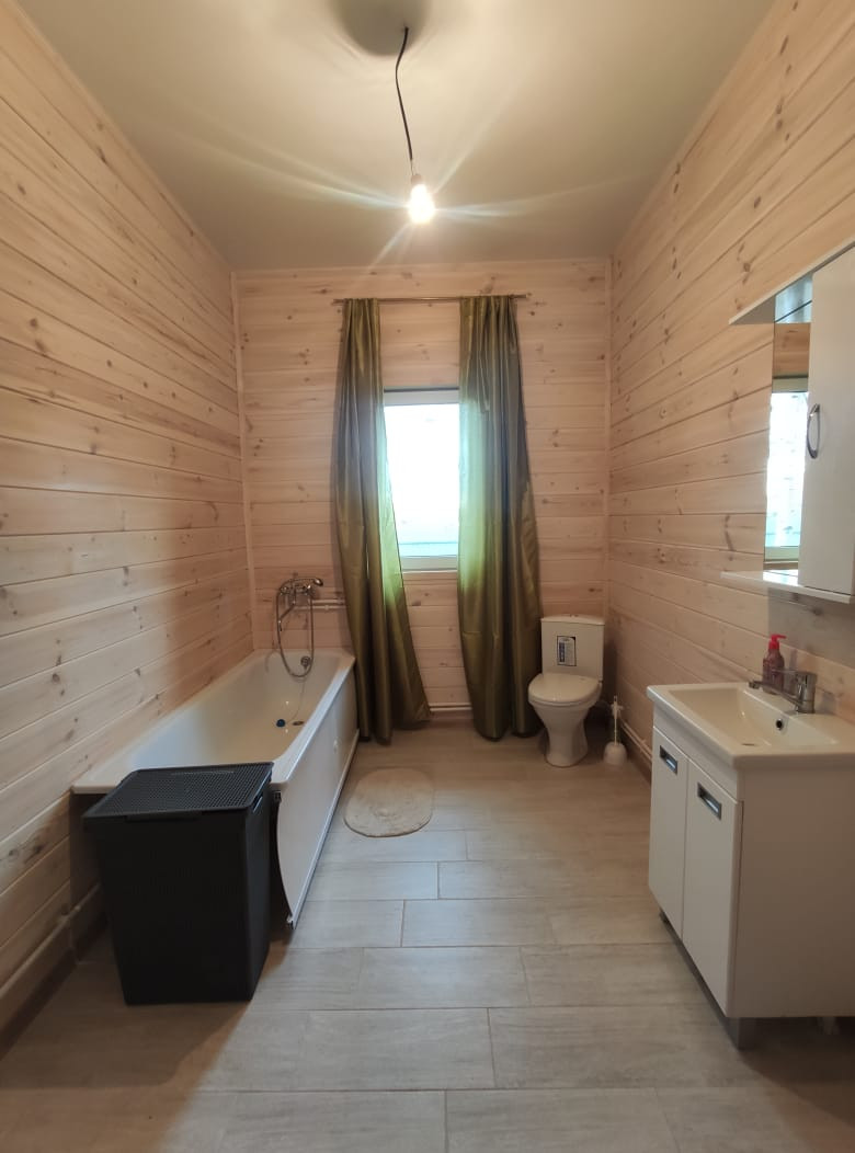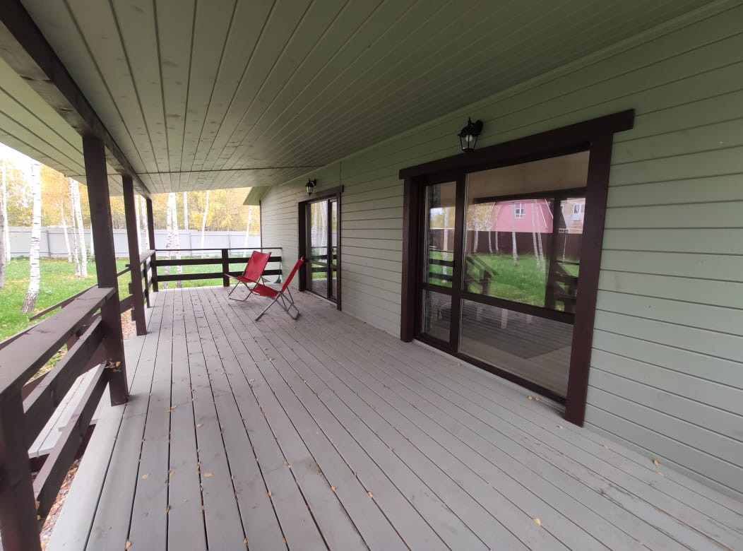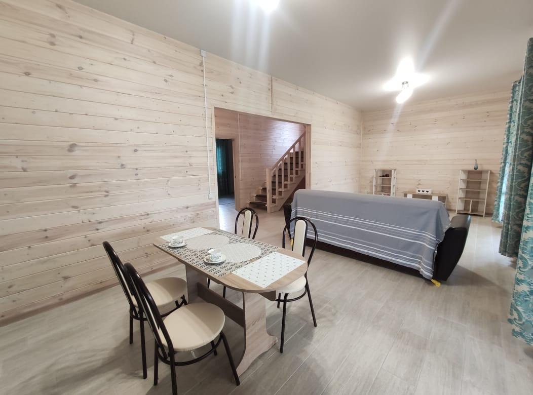 5. Жилой дом. Общая площадь 192,5 кв. м. Дом новый, 2022 г. постройки. Материал стен: брус, материал отделки внутри и снаружи: дерево. Обработано качественными лакокрасочными материалами французского производства. Полы на 1 этаже – плитка. Панорамное остекление. Монолитный фундамент (плита). Подключен высокоскоростной интернет и телевидение.