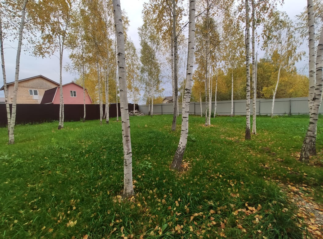 4. Земельный участок правильной прямоугольной формы, 12 соток. Ровный, сухой, огорожен забором из профлиста. Есть въездные ворота и калитка. Категория земель: земли населенных пунктов, вид разрешенного использования: ИЖС (индивидуальное жилищное строительство). Границы с соседями определены. На участке растут молодые березки, которые в летнюю жару дают прохладу и полутень, и просто радуют глаз.
