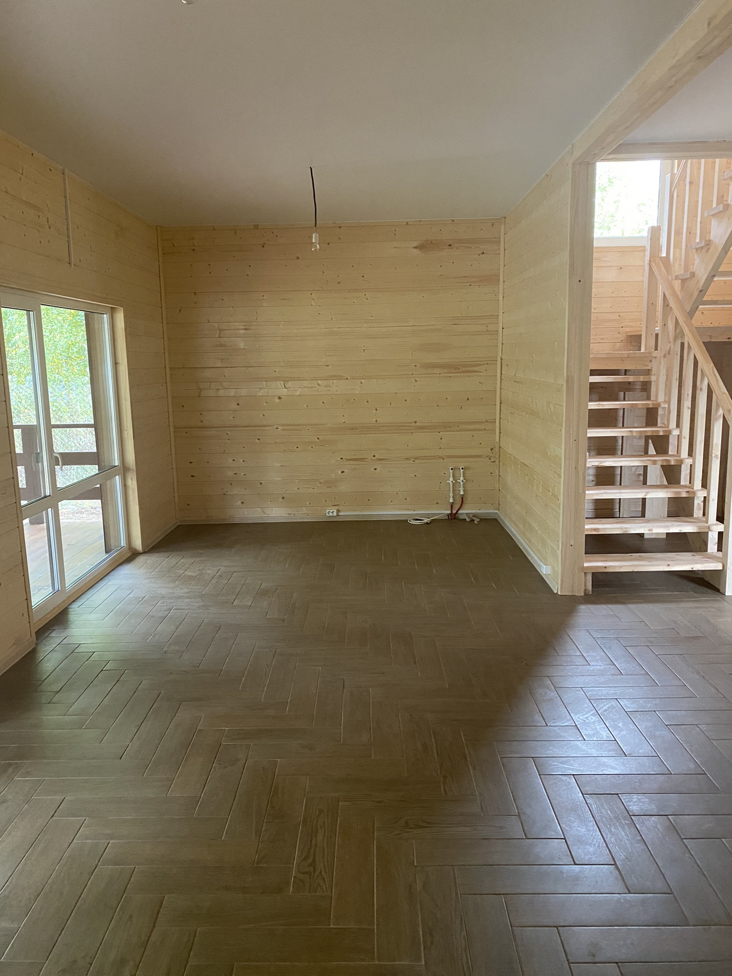 Напольное покрытие ламинат/плитка. Первый этаж:Входная группа-крыльцо (маленькая веранда),прихожая,котельная комната,просторный коридор,гардеробная комната, совмещённый санузел (ванна,гарнитур для ванной комнаты,туалет.)Одна спальная комната,большая кухня-гостиная с выходом на большую террасу и панорамными окнами.Первый этаж ВЕСЬ оснащён регулируемым теплым полом и покрытием ламинат/плитка, натяжные потолки.