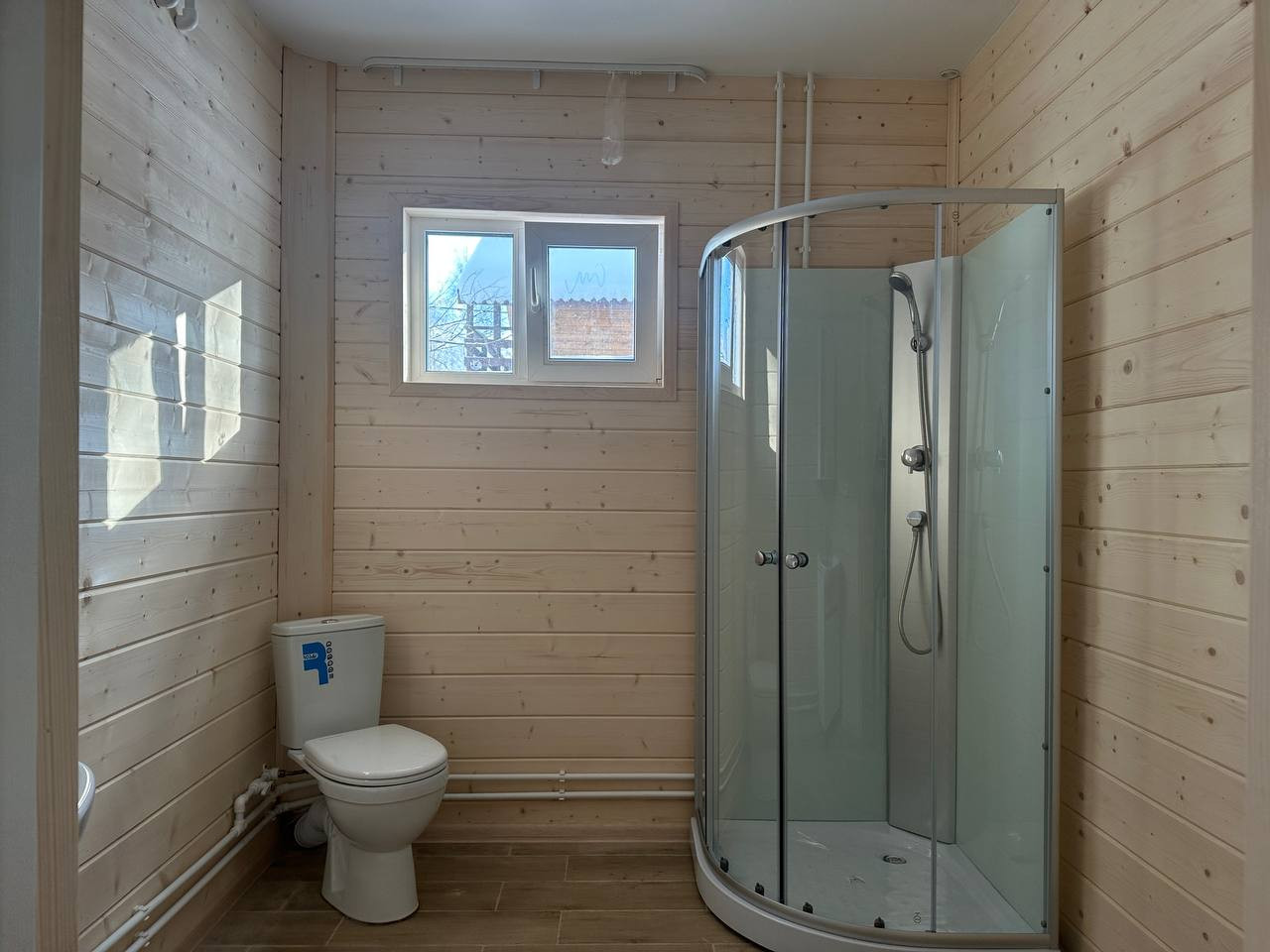 — Уложен керамогранит в санузлах, установлена сантехника на 1-м этаже;