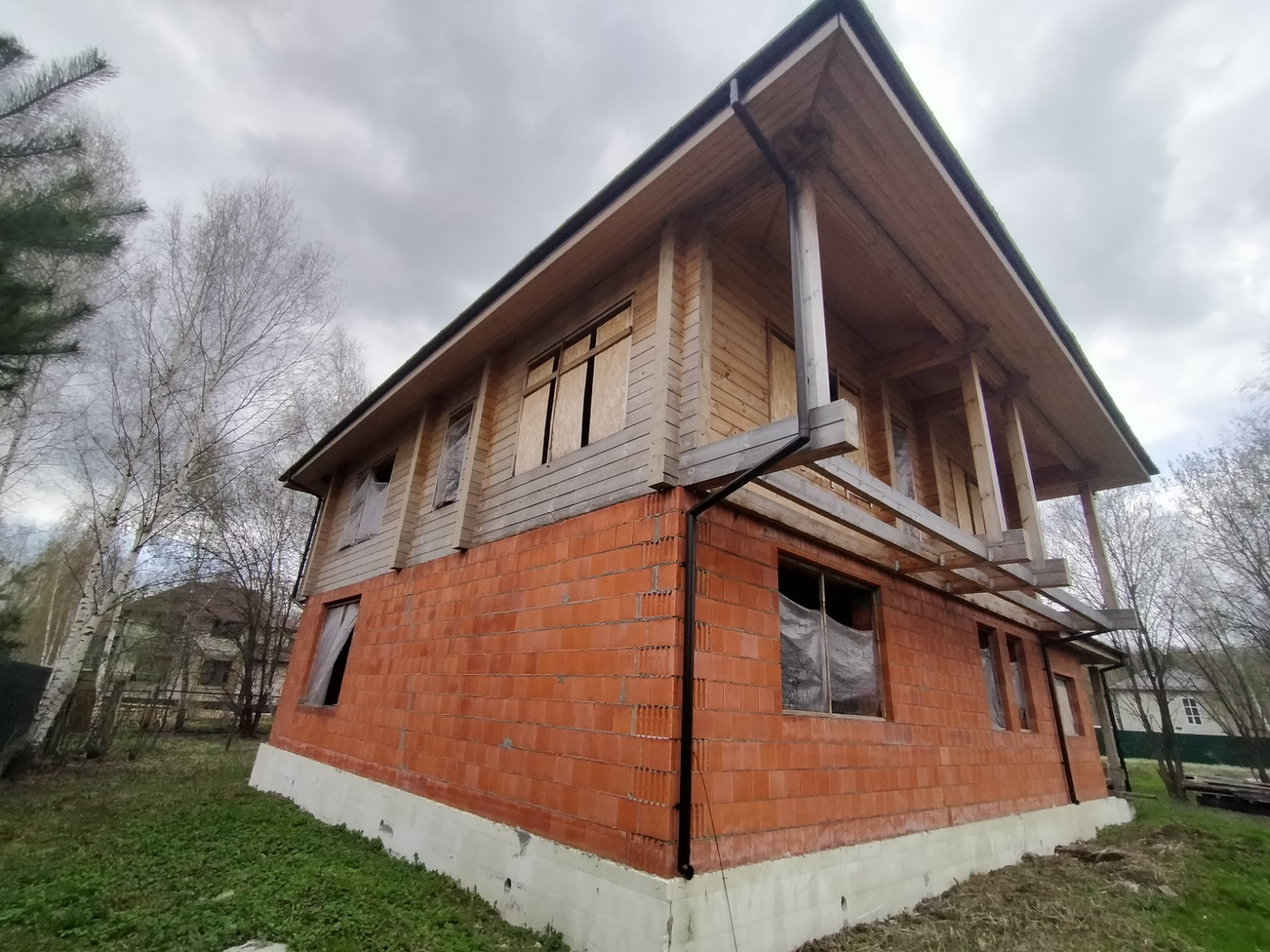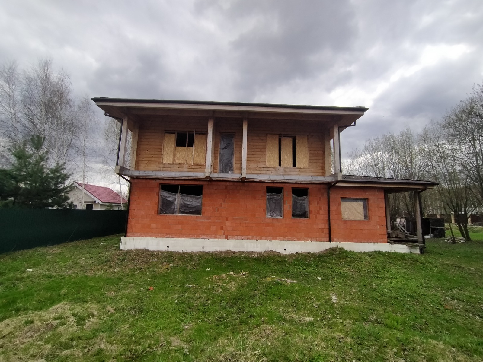 Продаю дом, капитальный фундамент ( высокий первый этаж),  стены первого этажа Поротерм Термо, второй этаж клеёный брус, мягкая кровля, зона для камина и барбекю,5 жилых комнат.Есть проект, есть смета строительства на 14 млн. рублей. Участок правильной формы, сухой, ровный,есть возможность увеличить ещё на 4 сотки, закрытая территория, порядочные соседи. Продажа от юр.лица  (подойдёт под семейную, господдержку).Помощь в оформлении в ипотеки.