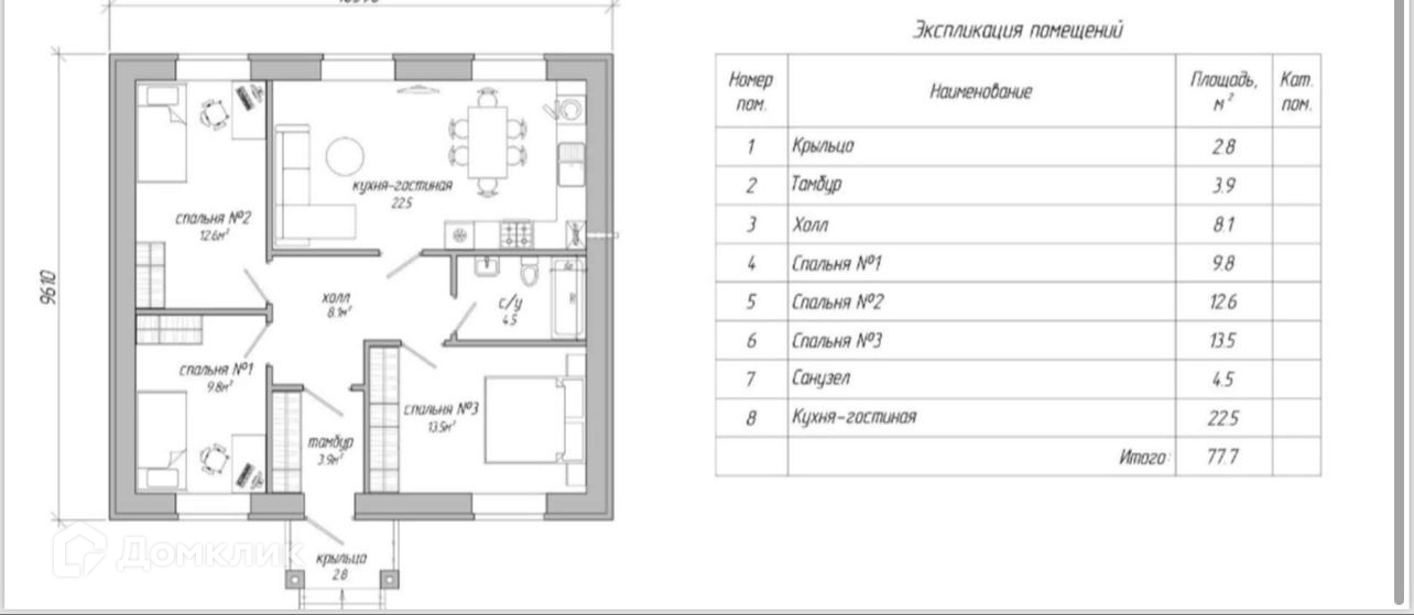 Общая площадь 77.7 м2