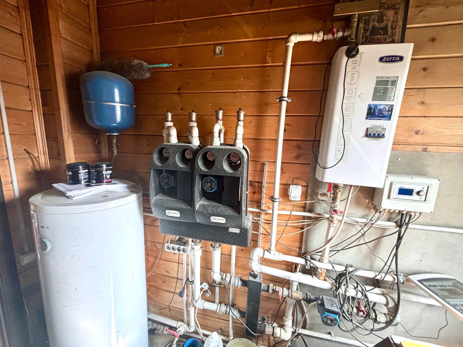Система отопления -газовой котел, твердотопливный котел ( древесный уголь), электрический котел.