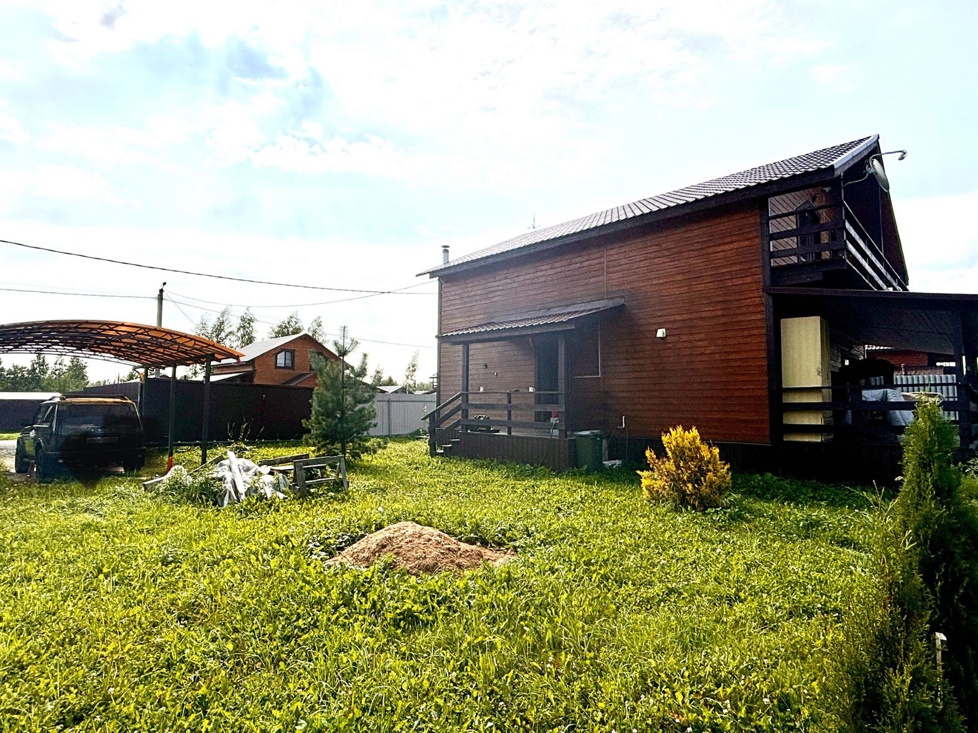 Ворота автоматические откатные, есть навес для автомобиля.