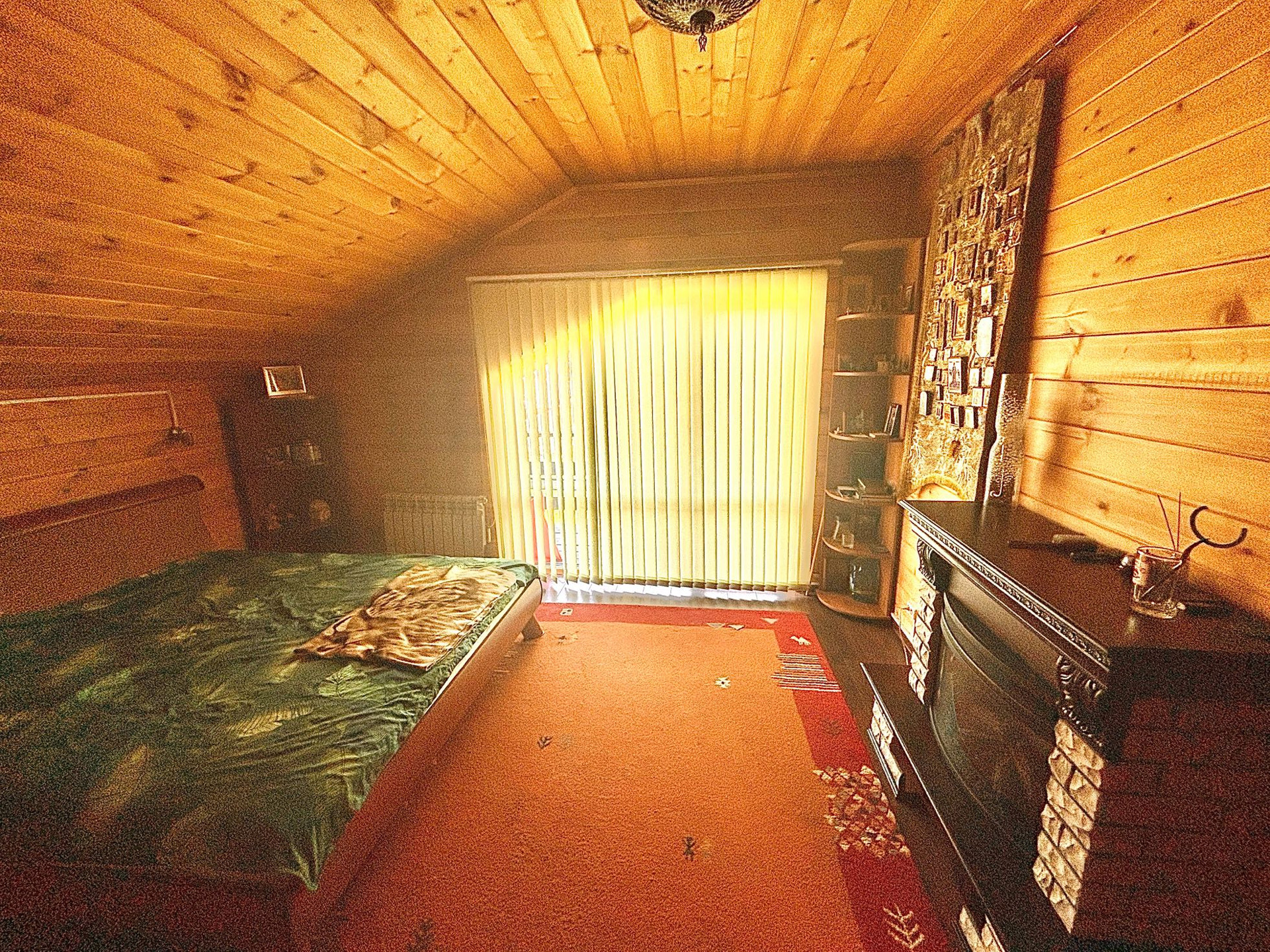 В спальне Электрокамин, балкон