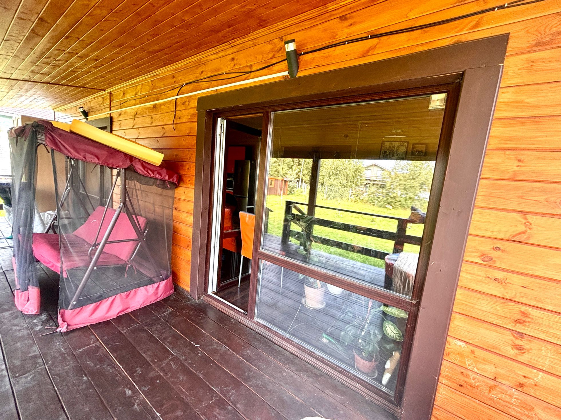 Большая терраса с качелями примыкает к дому.